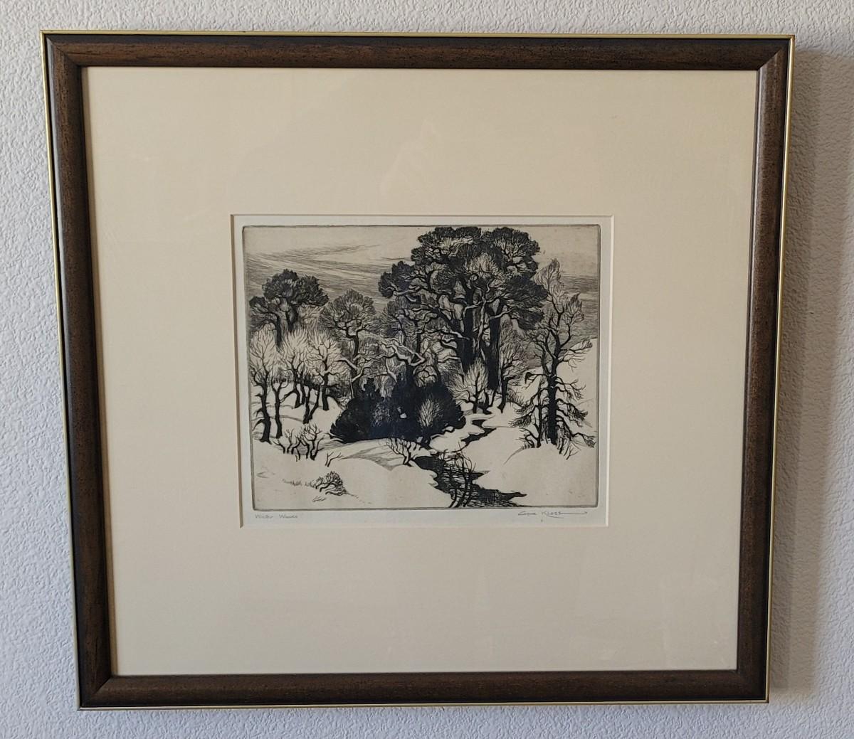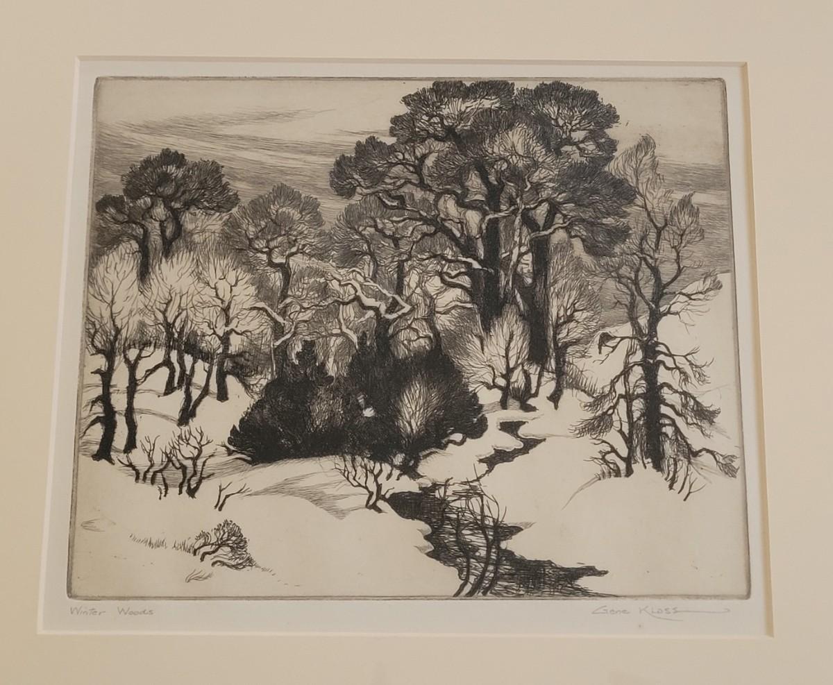 Lot 96: Original Drypoint Etching by GENE KLOSS 'Winter Woods'