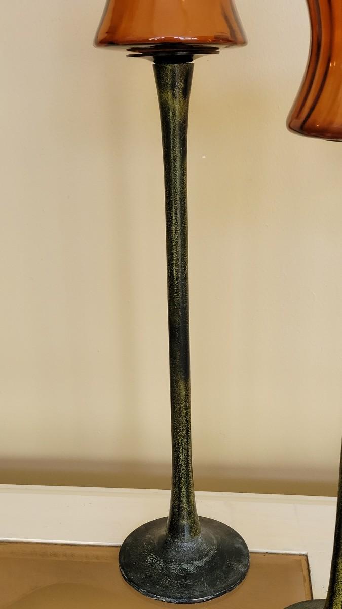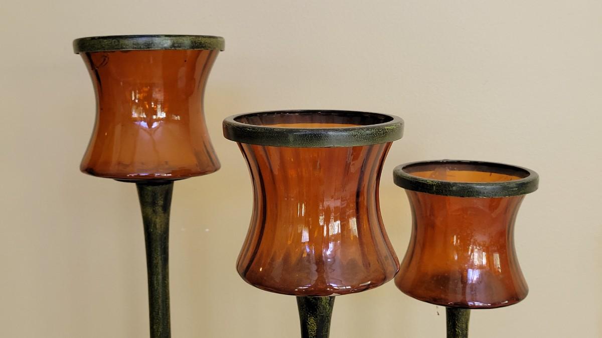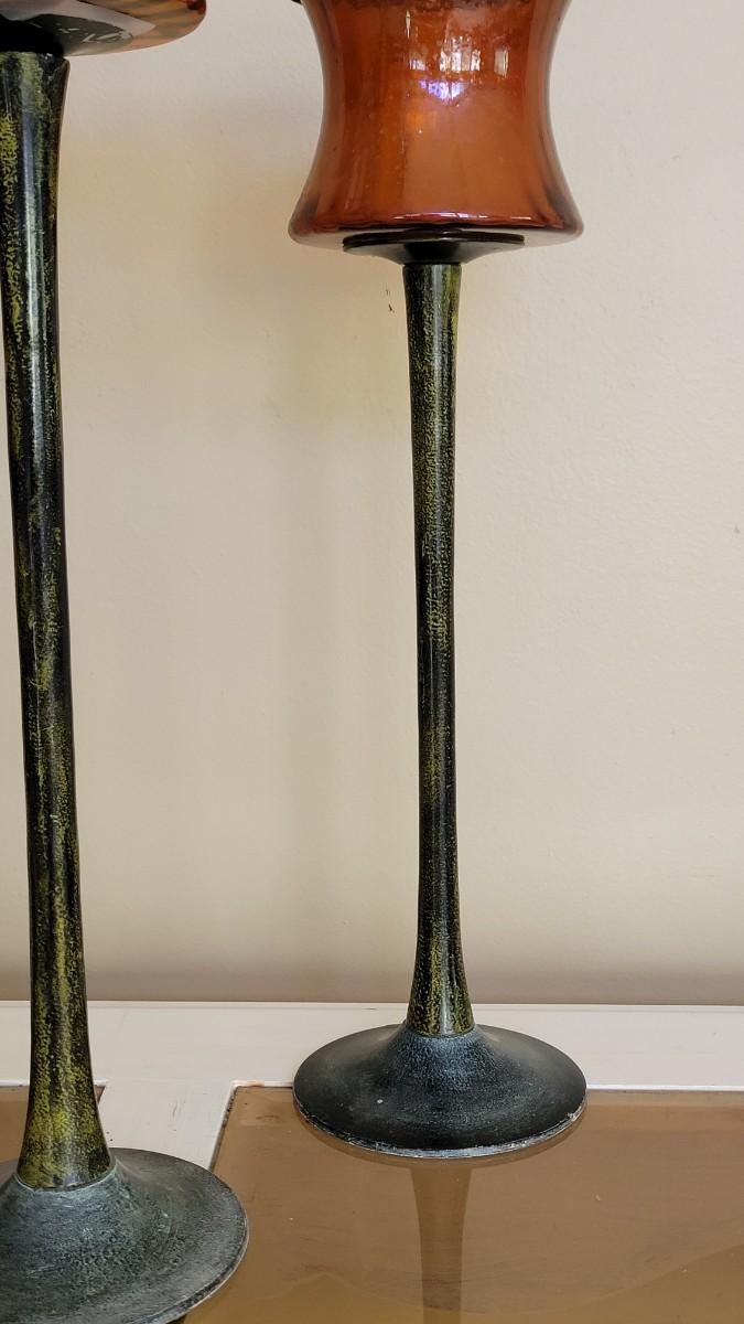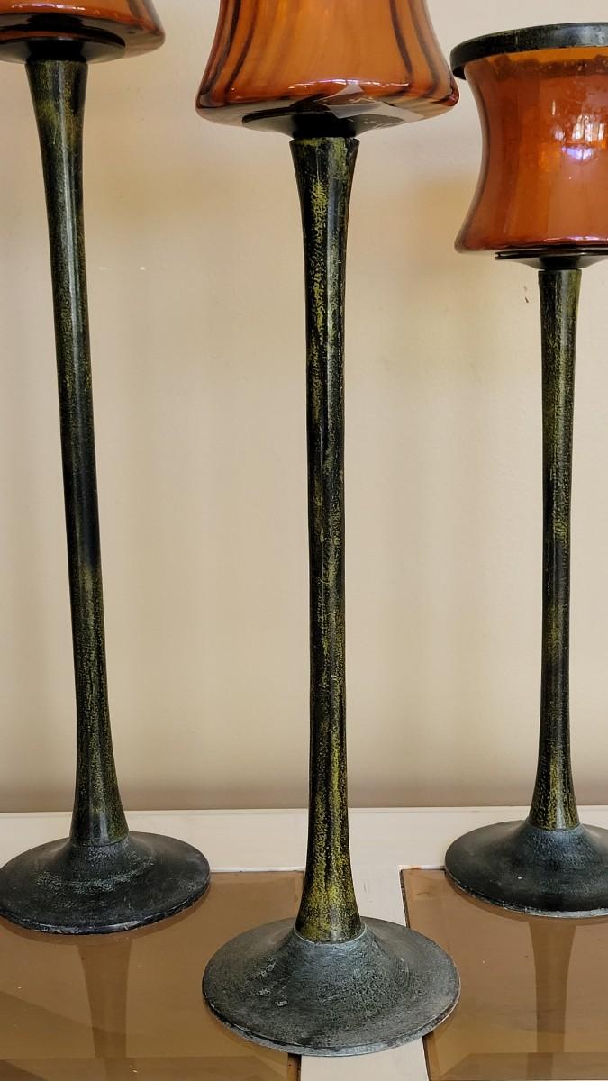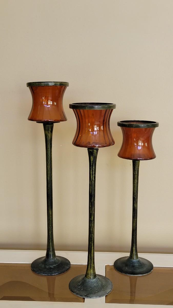 Lot 96: (3) Metal & Amber Glass Candleholders