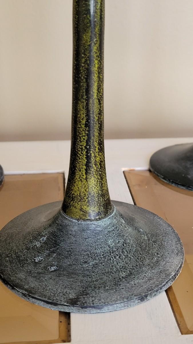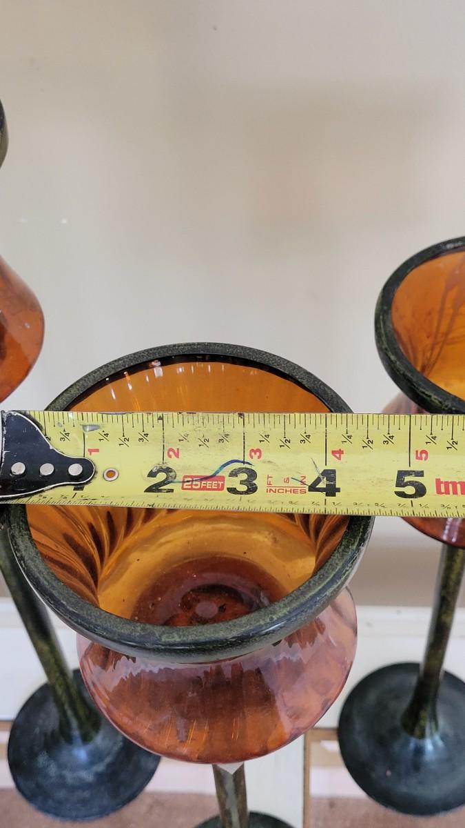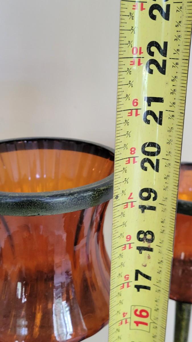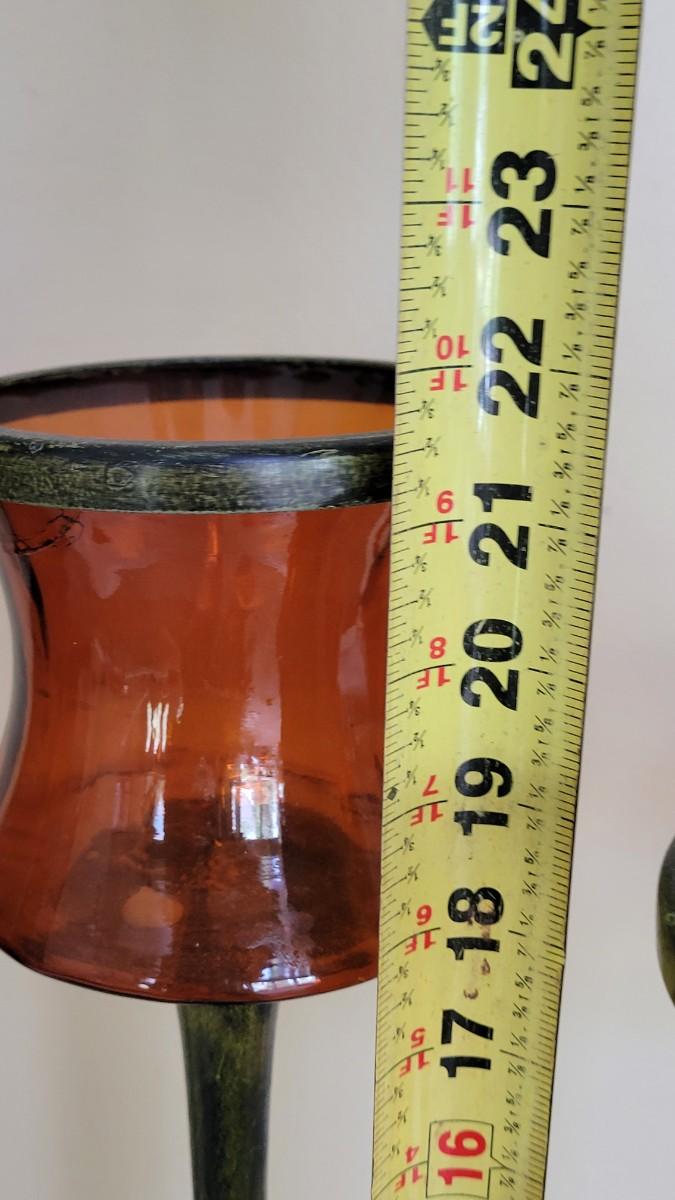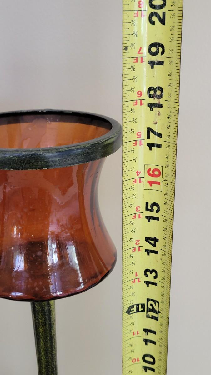 Lot 96: (3) Metal & Amber Glass Candleholders