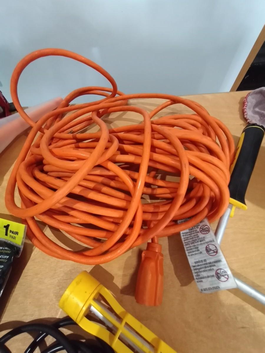 LOT 96  HAND TOOLS, EXTENSION CORD AND MORE