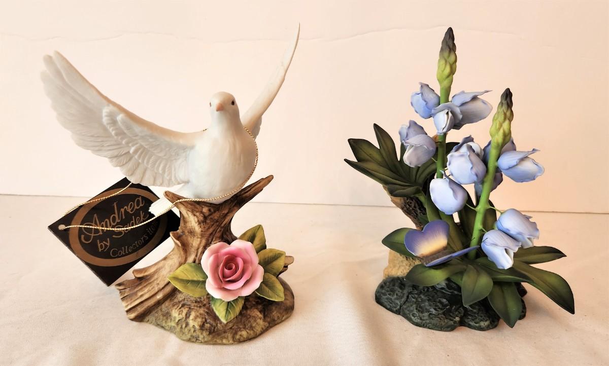 Lot of two very pretty ANDREA porcelain figures - White Dove and Hyacinth. No boxes. Dove is from 1987. Both about 6" tall. Good condition.