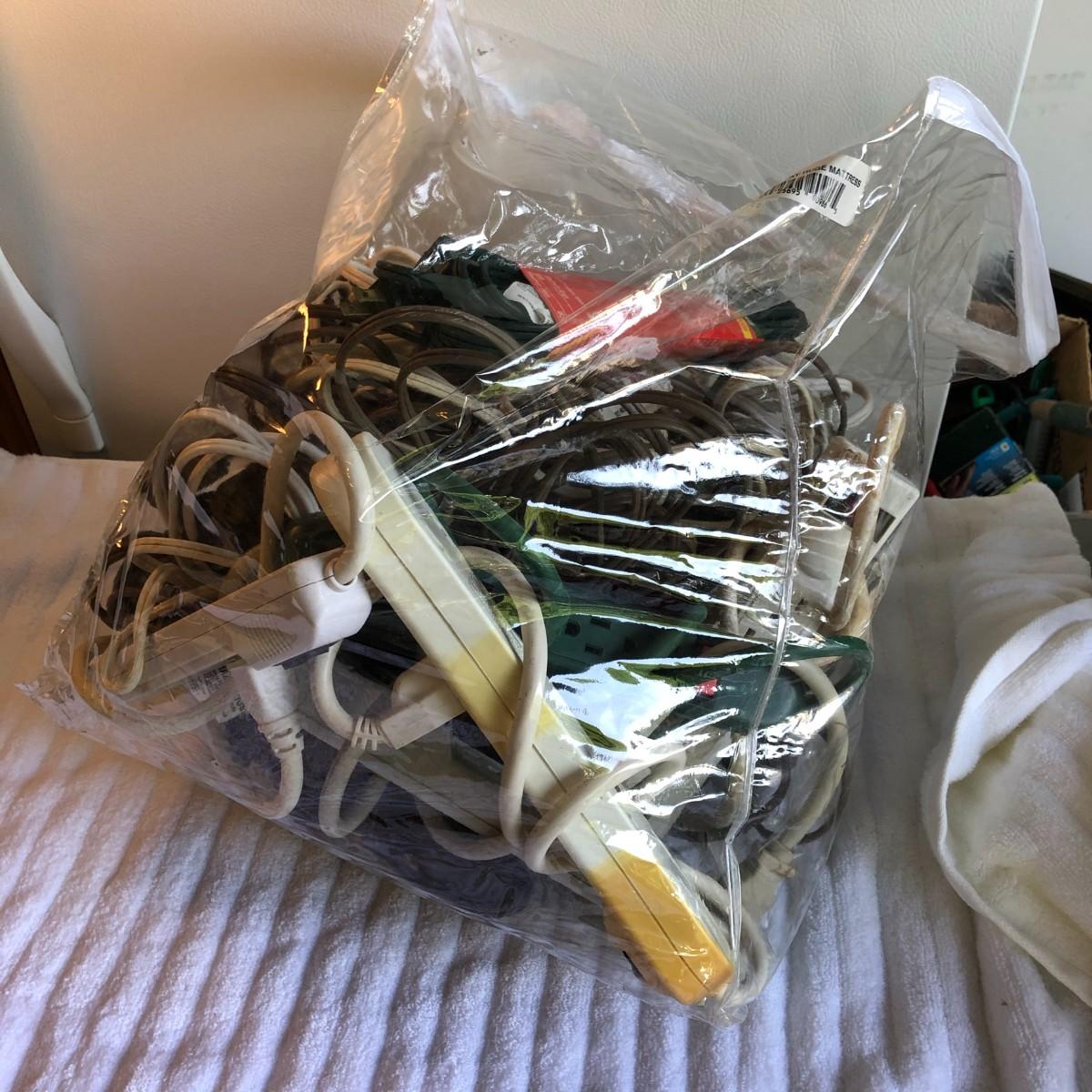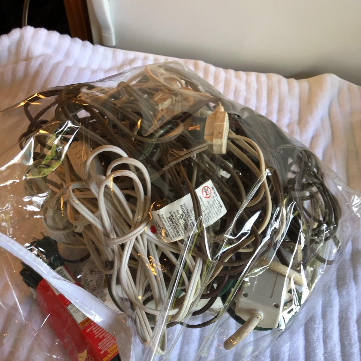 There are a variety of extension cords in here including a few surge protectors.