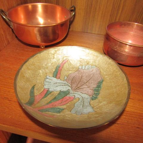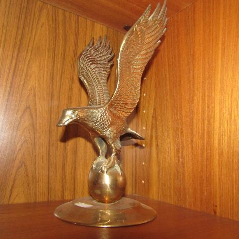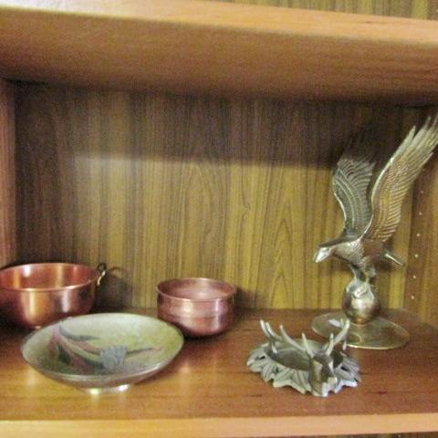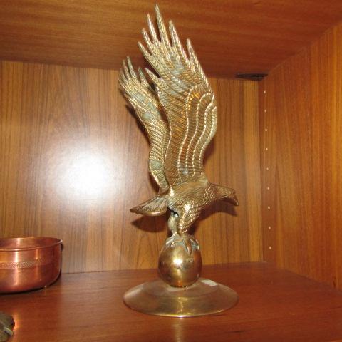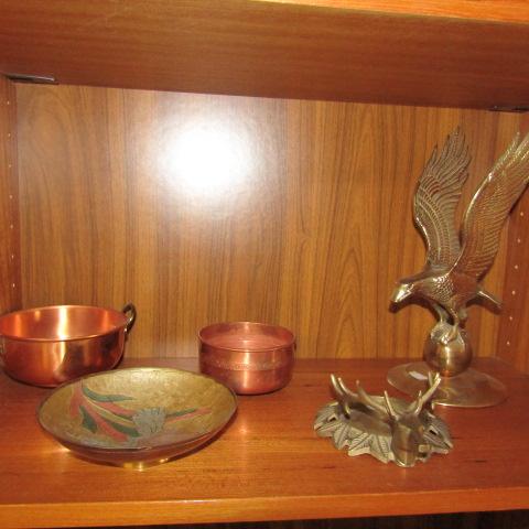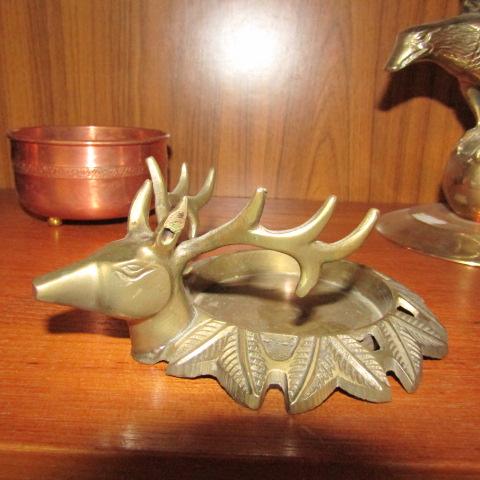 BRASS EAGLE, ELK ASHTRAY AND BOWL