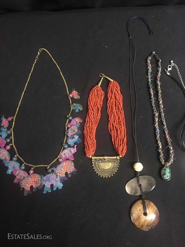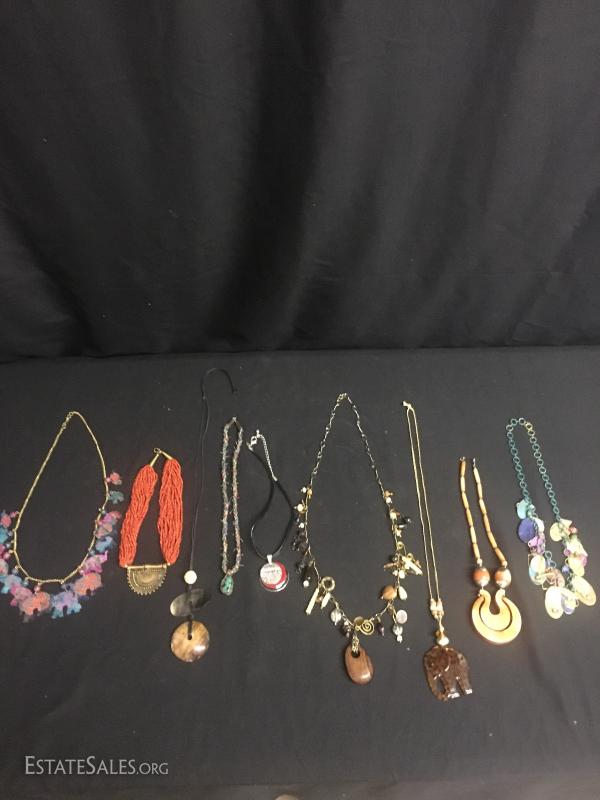 9 necklaces of varying lengths and materials. This lot is avaiable for shipping or local pick up in Waynesville, NC.