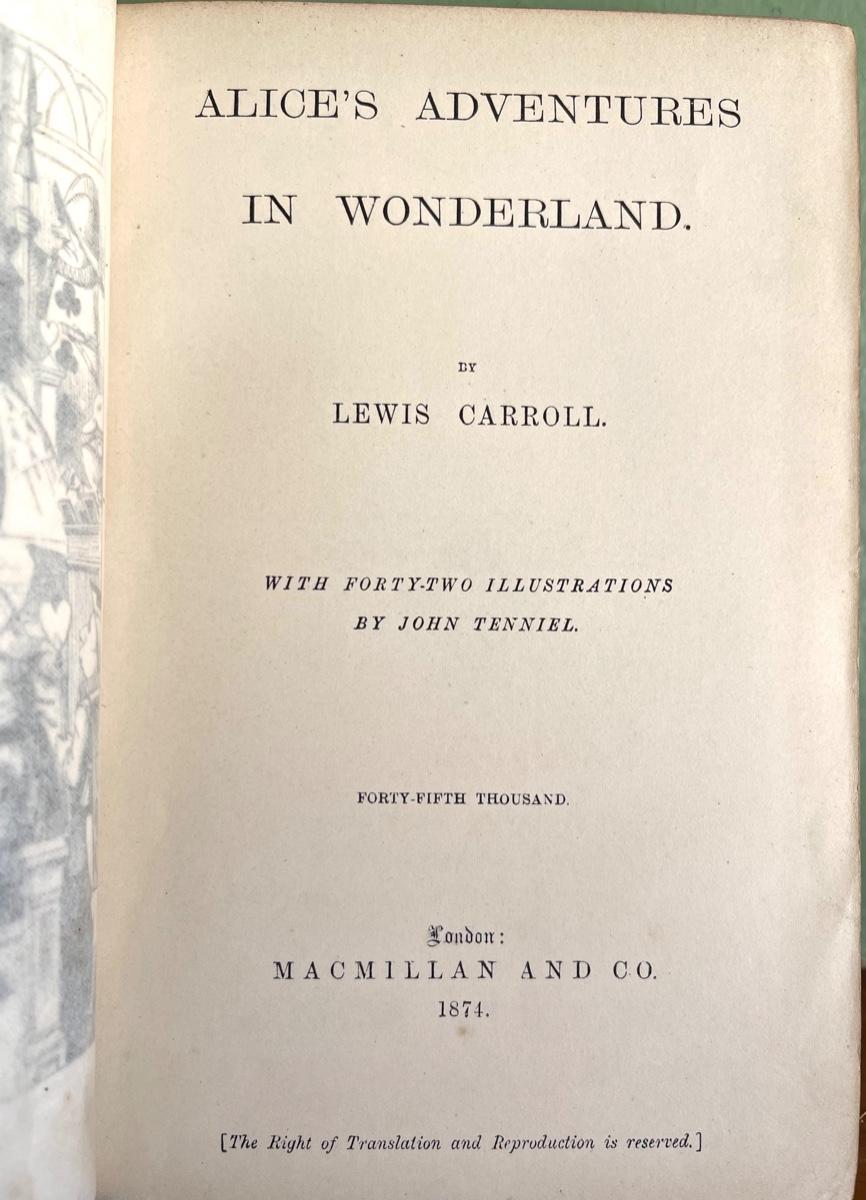 LOT 96 - Early Alice's Adventures in Wonderland - 1874 MacMillan - London