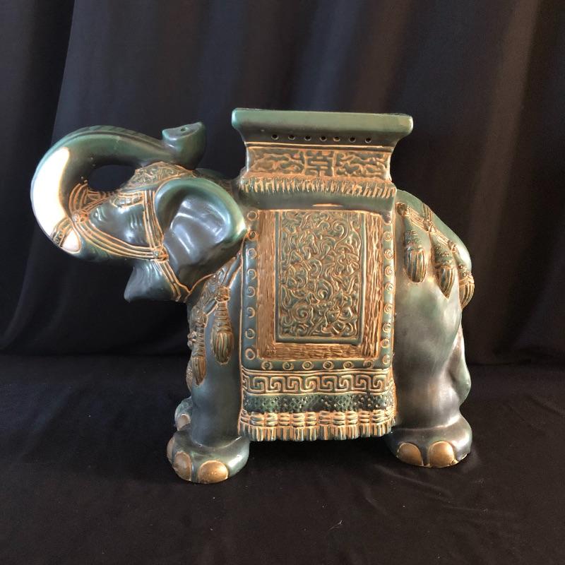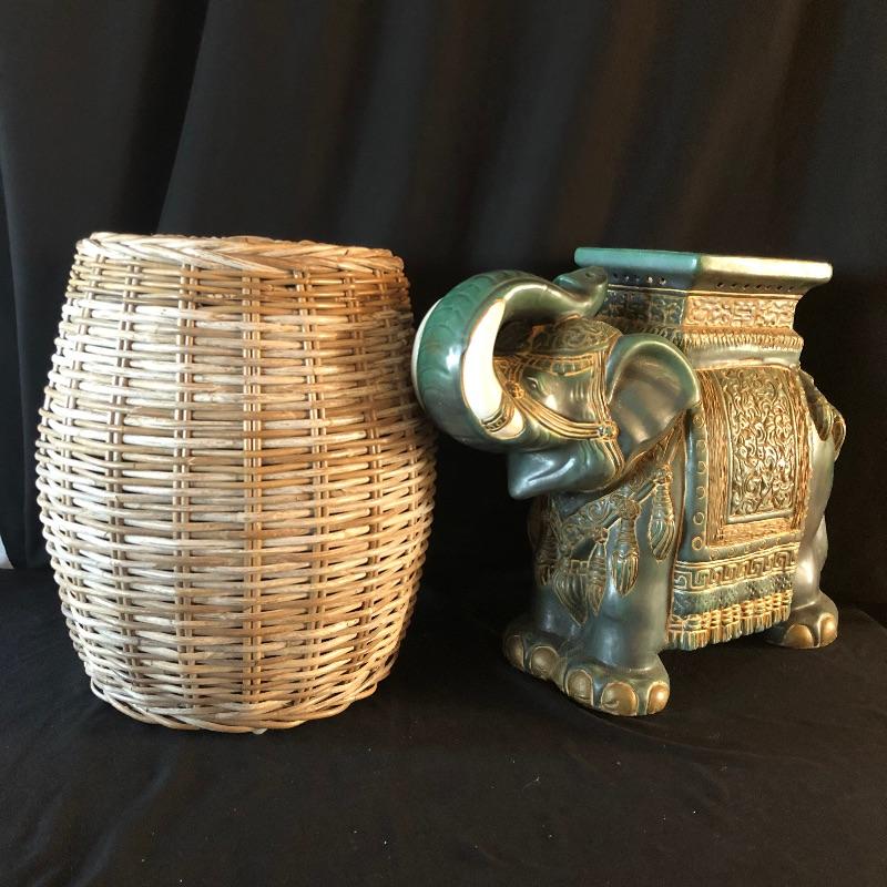 A great place to put your plants is these two plant stands. Lot includes ceramic elephant plant stand and wicket barrel shaped plant stand. Elephant measures 23” x 8.5” x 18”.