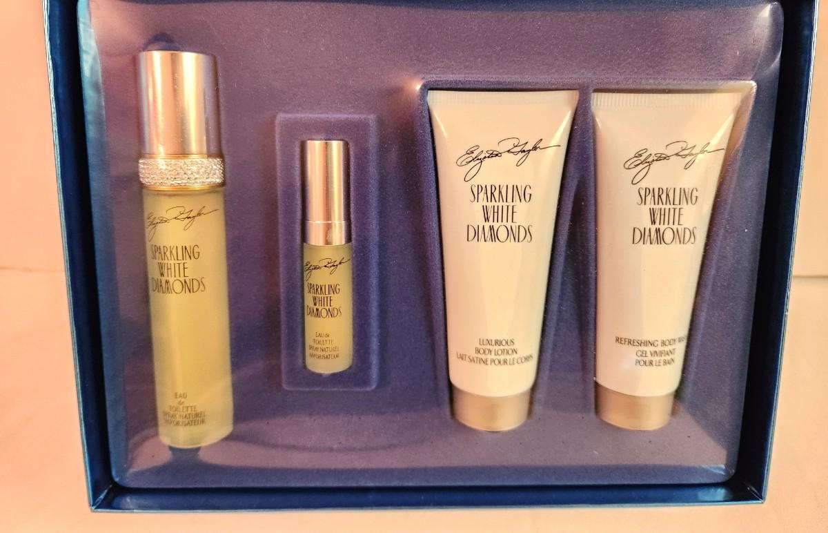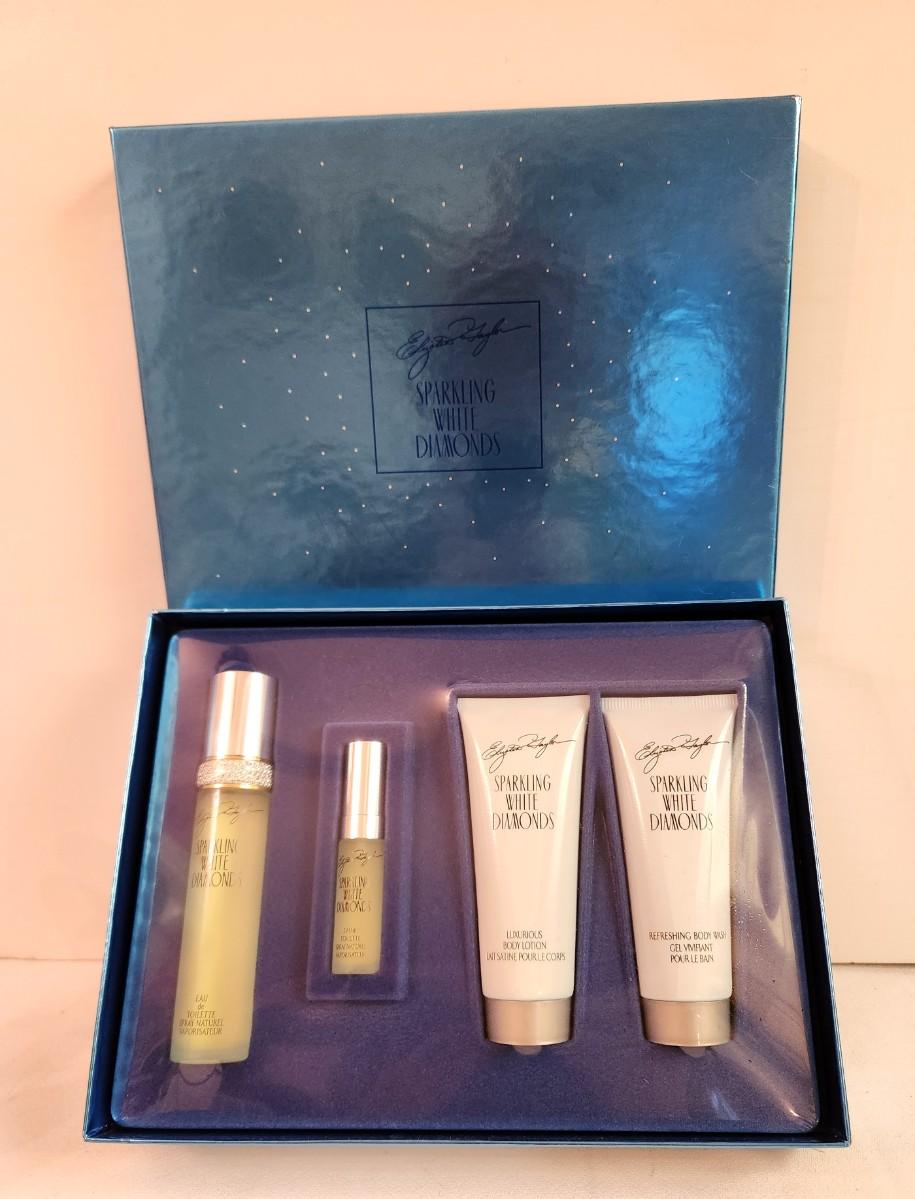 New in box - Elizabeth Taylor Sparkling White Diamonds gift box - Body Wash, Body Lotion, Spray cologne 1.7 oz, and Purse spray .33 oz.