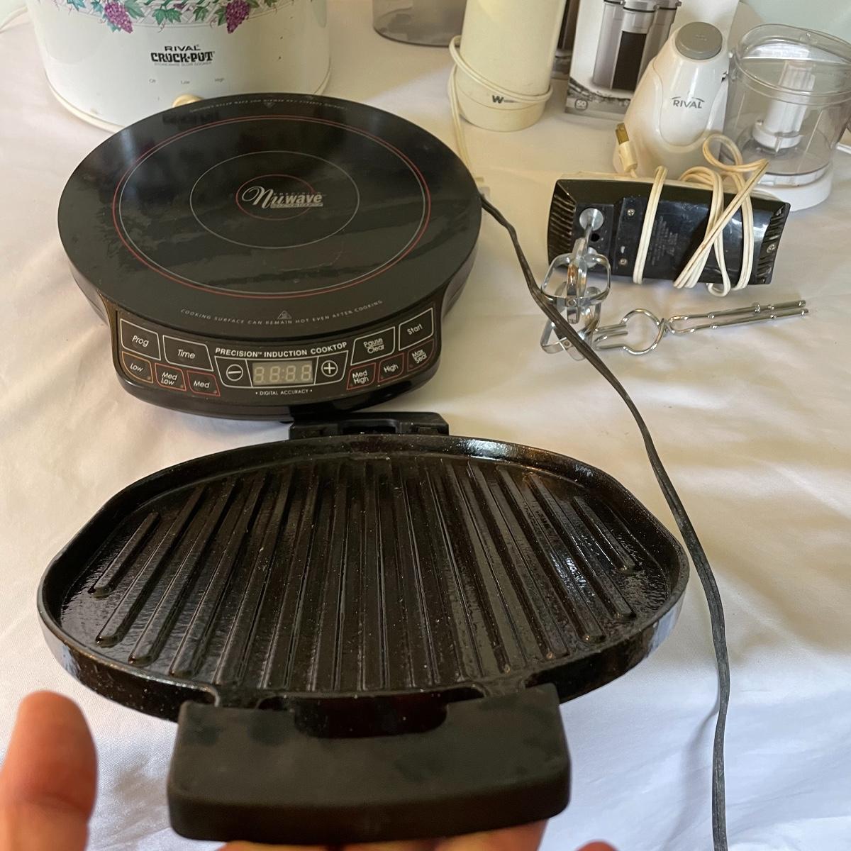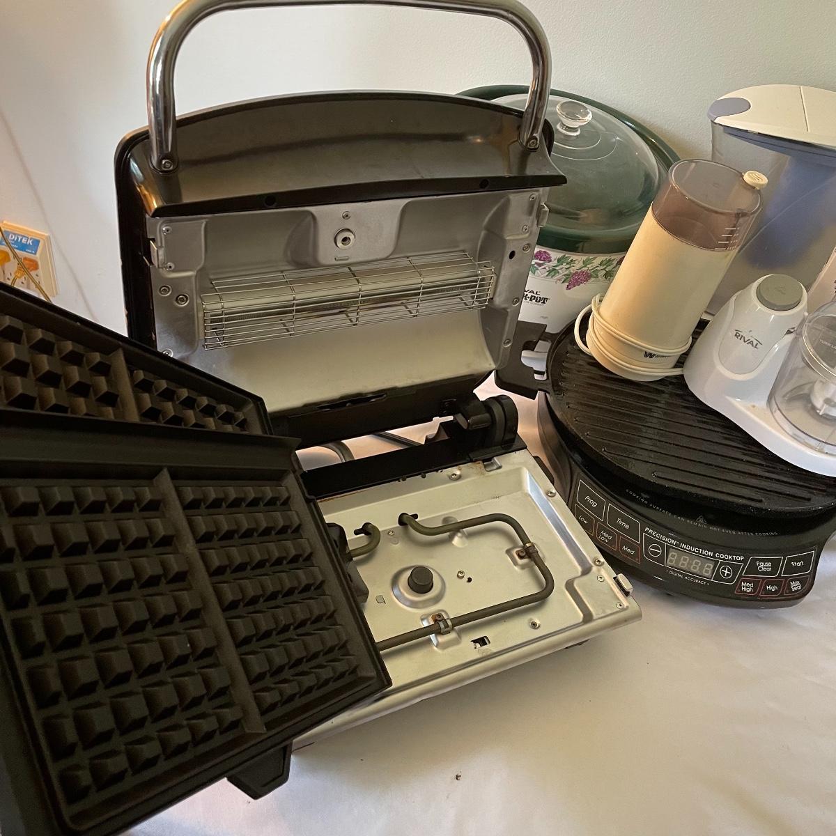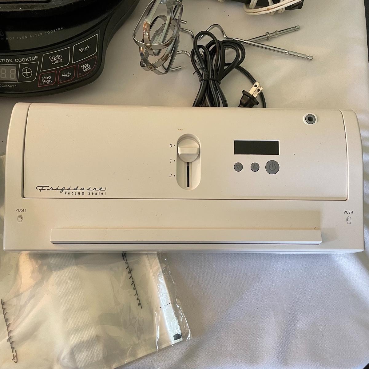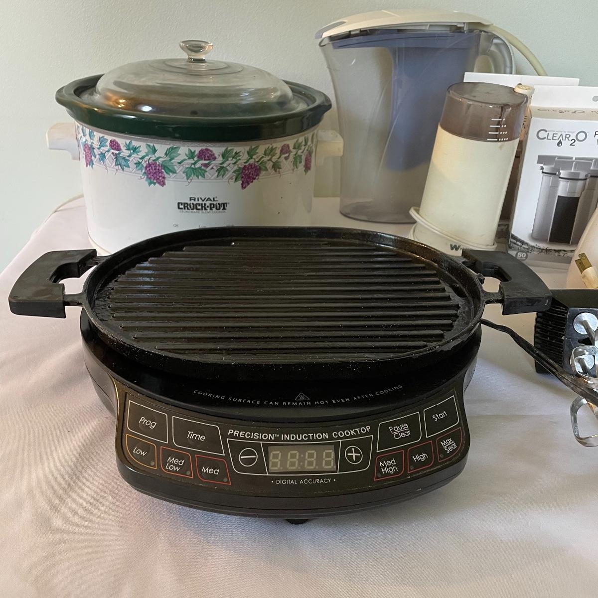 All of these items are a “must-have” in any kitchen! Lot features a Keurig single cup brewer and a Frigidaire vacuum sealer. Freshen up your water with a Clear20 pitcher with five unused filters. Lot also includes a George Foreman Grill & Broil with waffle grates, regular fat-dripping grates and a shallow basin. We’ve added a NuWave precision induction cooktop and enamel griddle. Lastly, some portion bags, Frigidaire sealer bags, Rival Crock Pot and food processor and a handheld mixer. Most items need a little cleaning and all powered on when prompted. See images for al items and model numbers. Local pick up only.