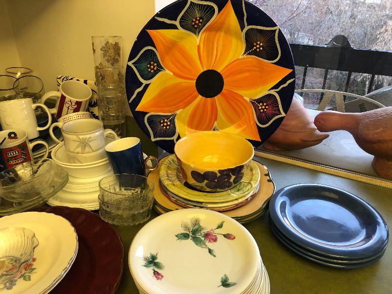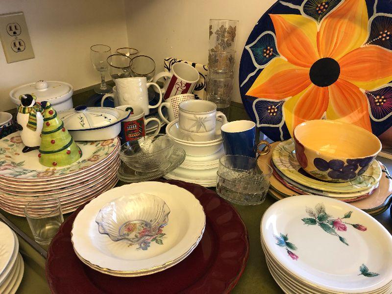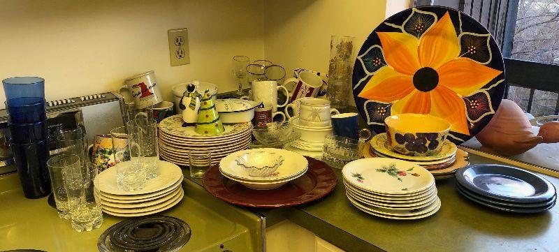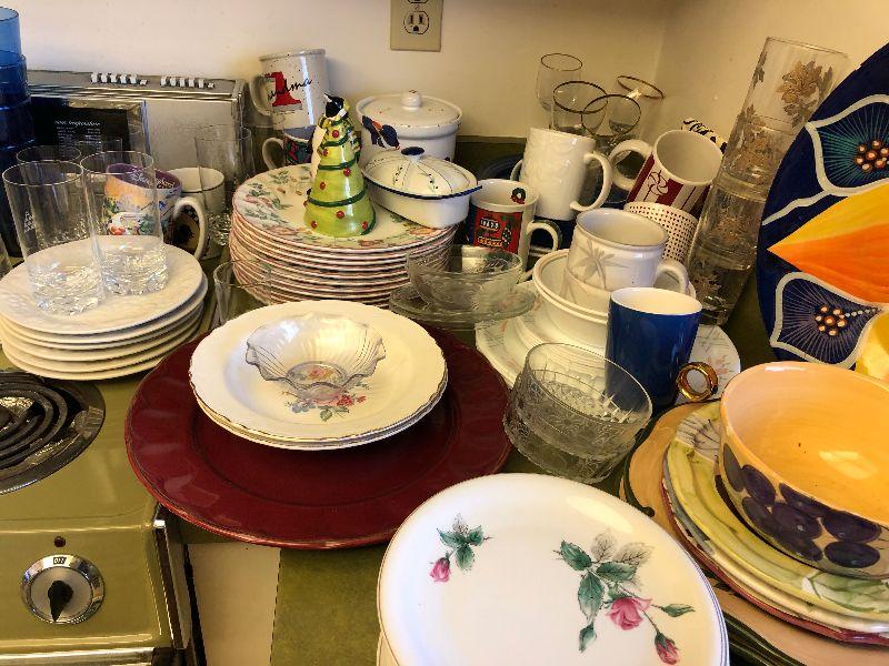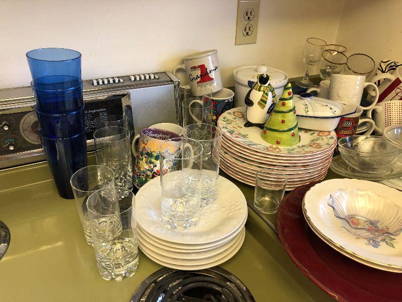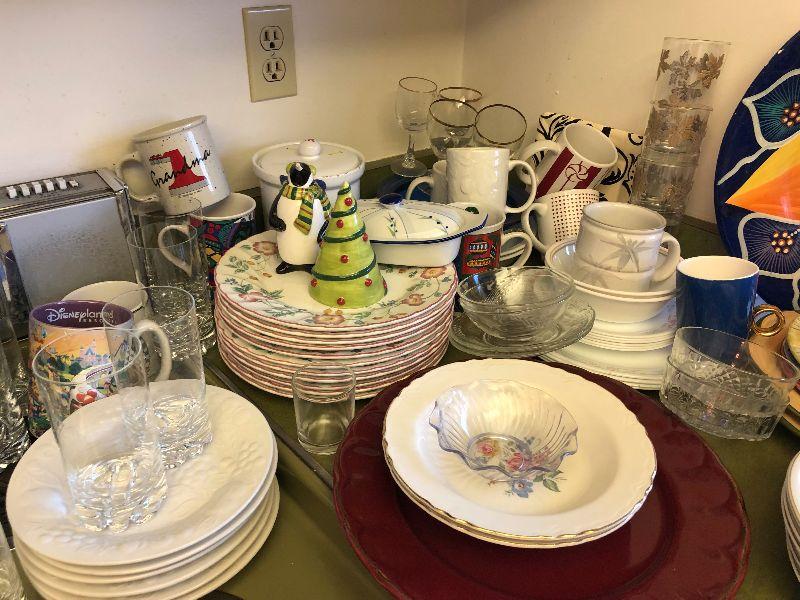 Lot #96 Giant lot of dishware, cups and glasses