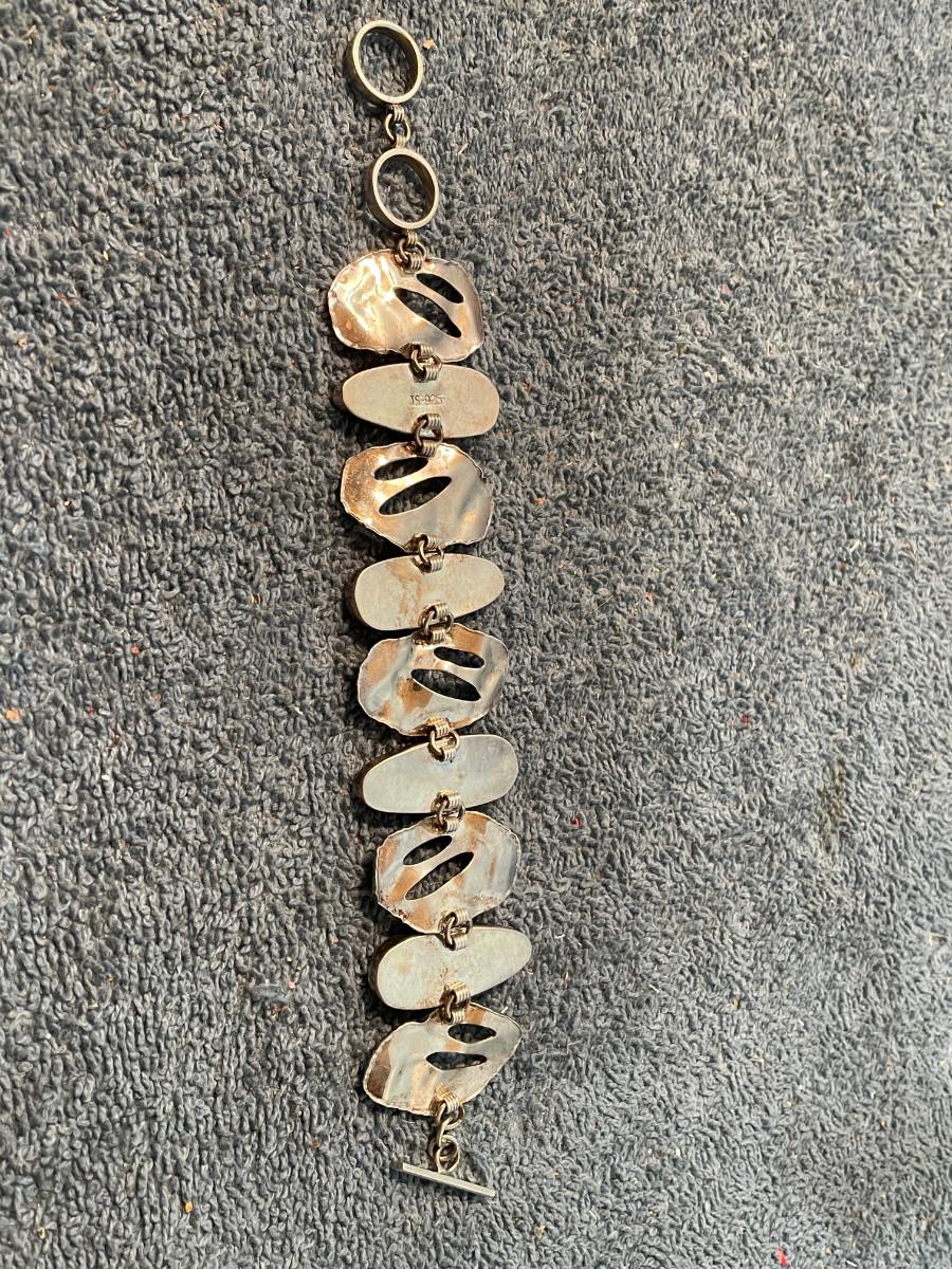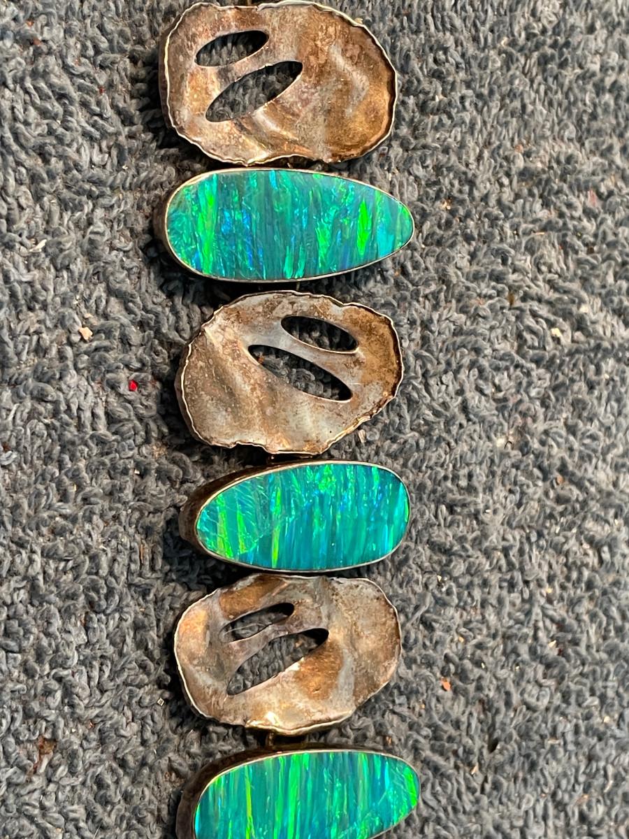 THIS IS AN INCREDIBLE STERLING OPAL BRACELET!!! OPALS ARE PROBABLY LAB CREATED.. 1 1/8'' X 8''.. 35.64 GR.. LIGHT WEAR. NEEDS POLISHING..