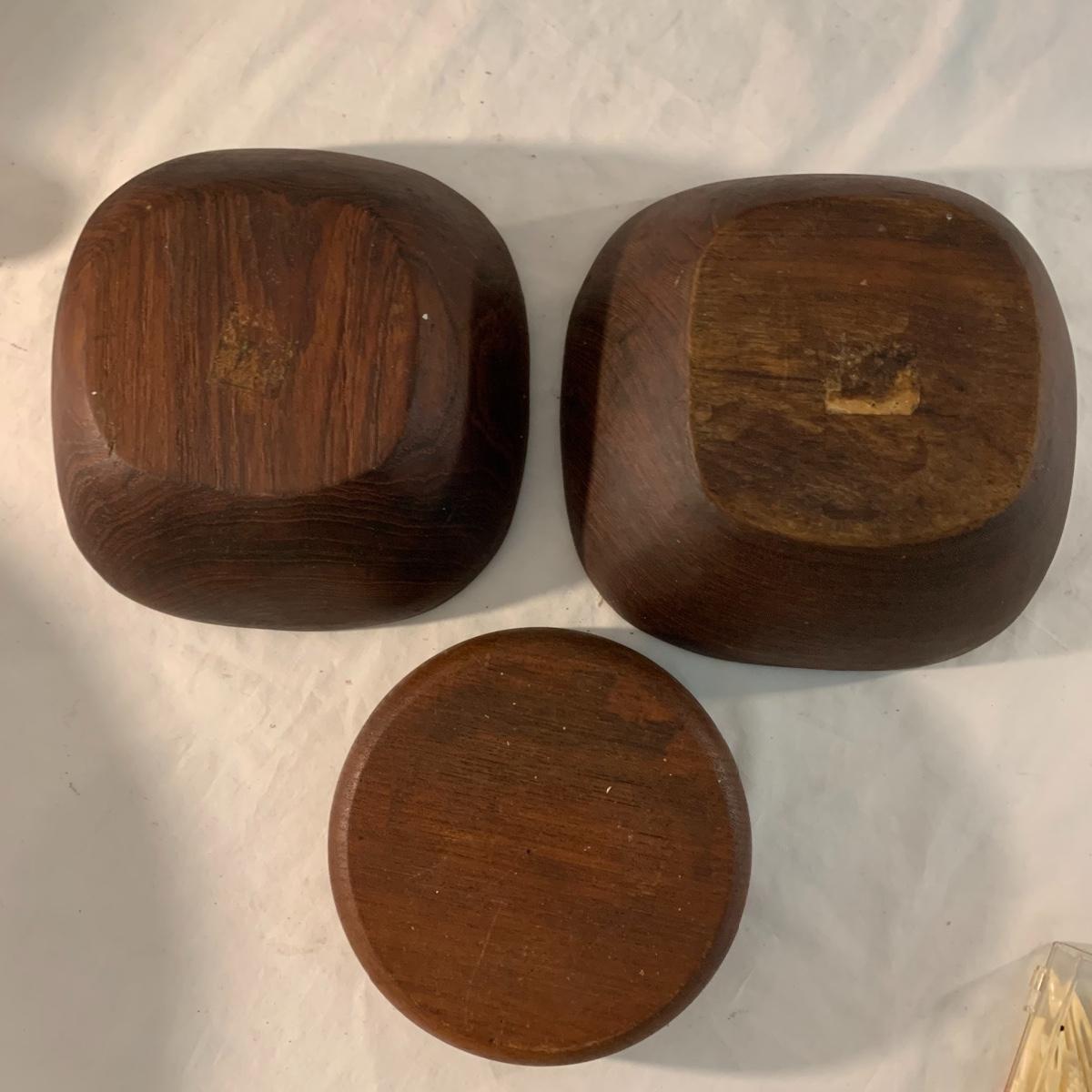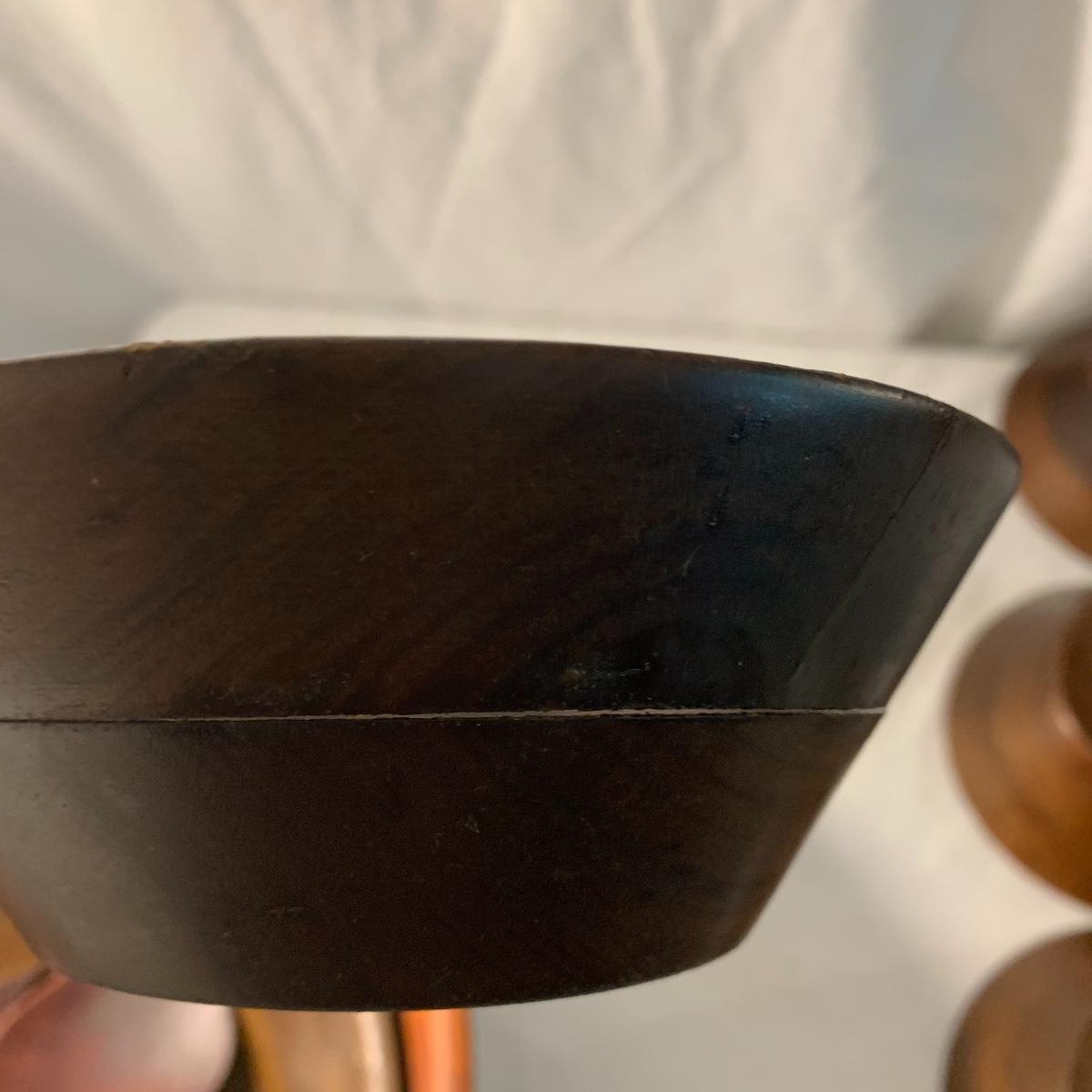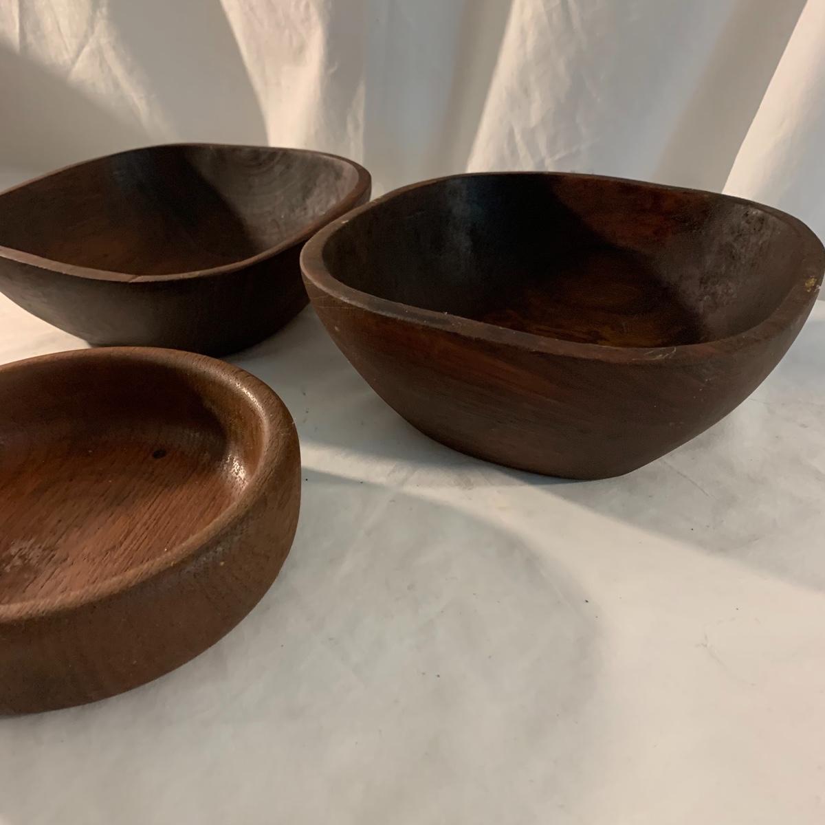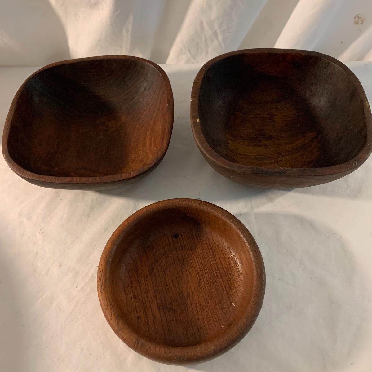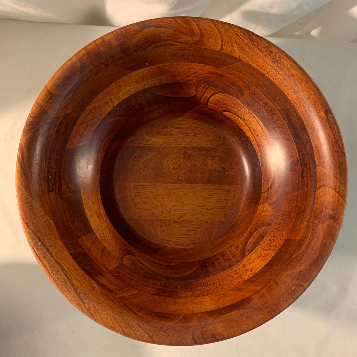 This set of wooden serving trays and bowls will be a hit at your next get together! Featured are two large salad bowls (one is cracked see pic), the largest bowl measures 14"x5", salad serving spoons (14"), a set of eight salad bowls (6"x2"), other assorted bowls, four serving trays, the largest measuring 11"x20"x1", a set of fondue forks, a set of plastic cocktail forks, and even a set of corn holders. See pics for details.