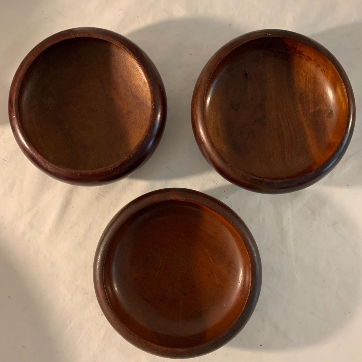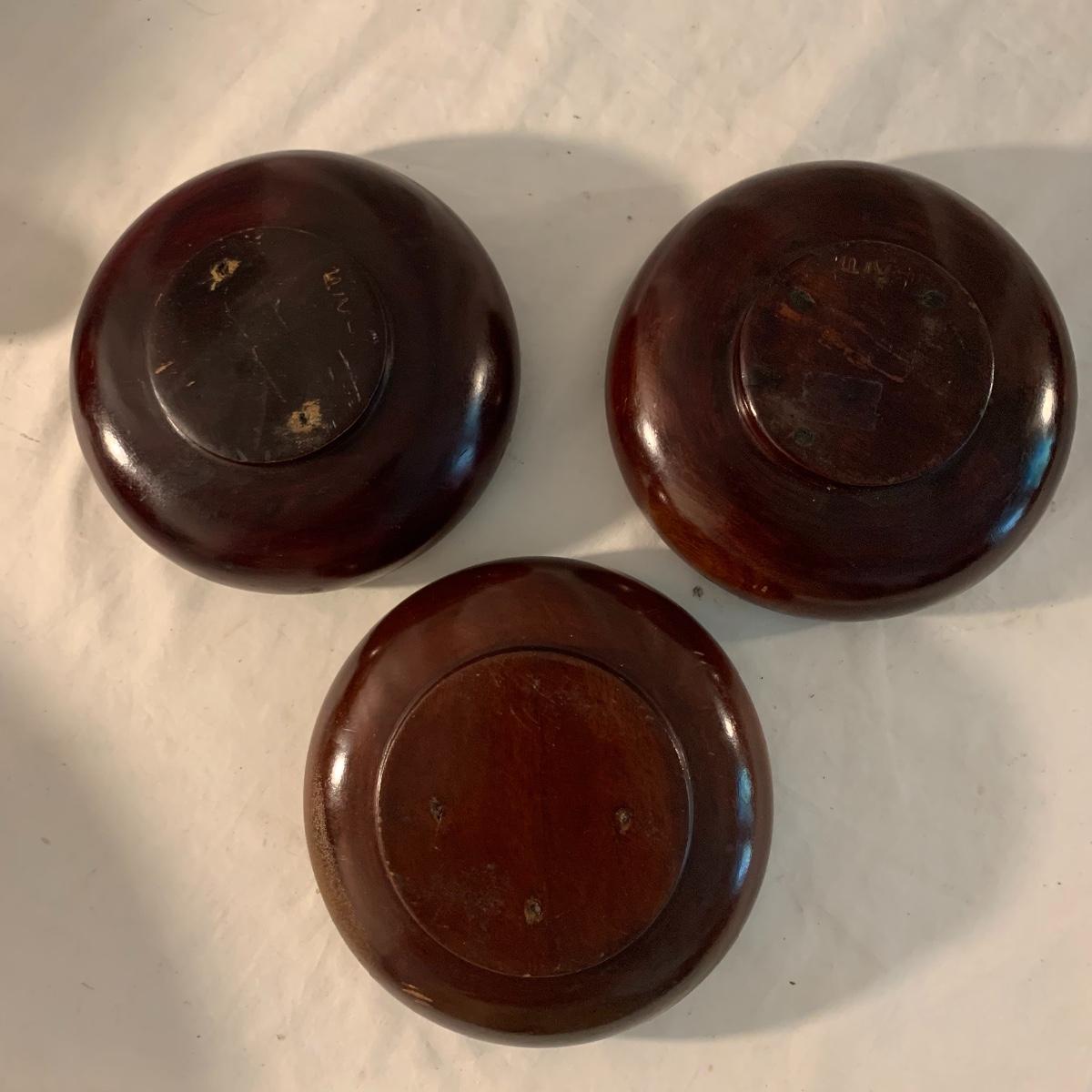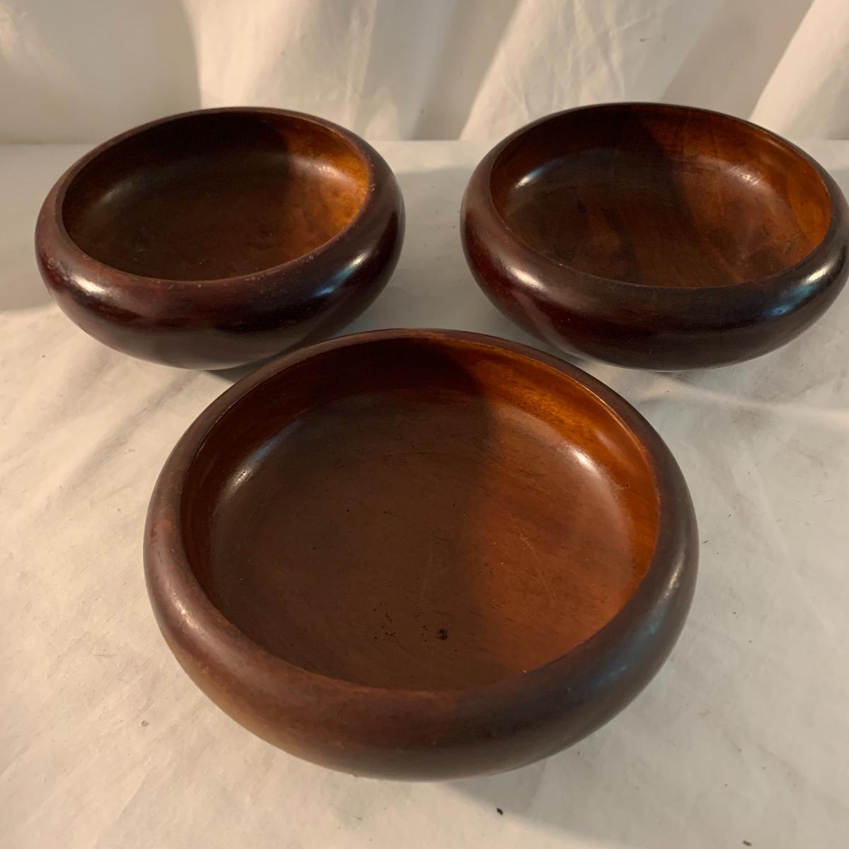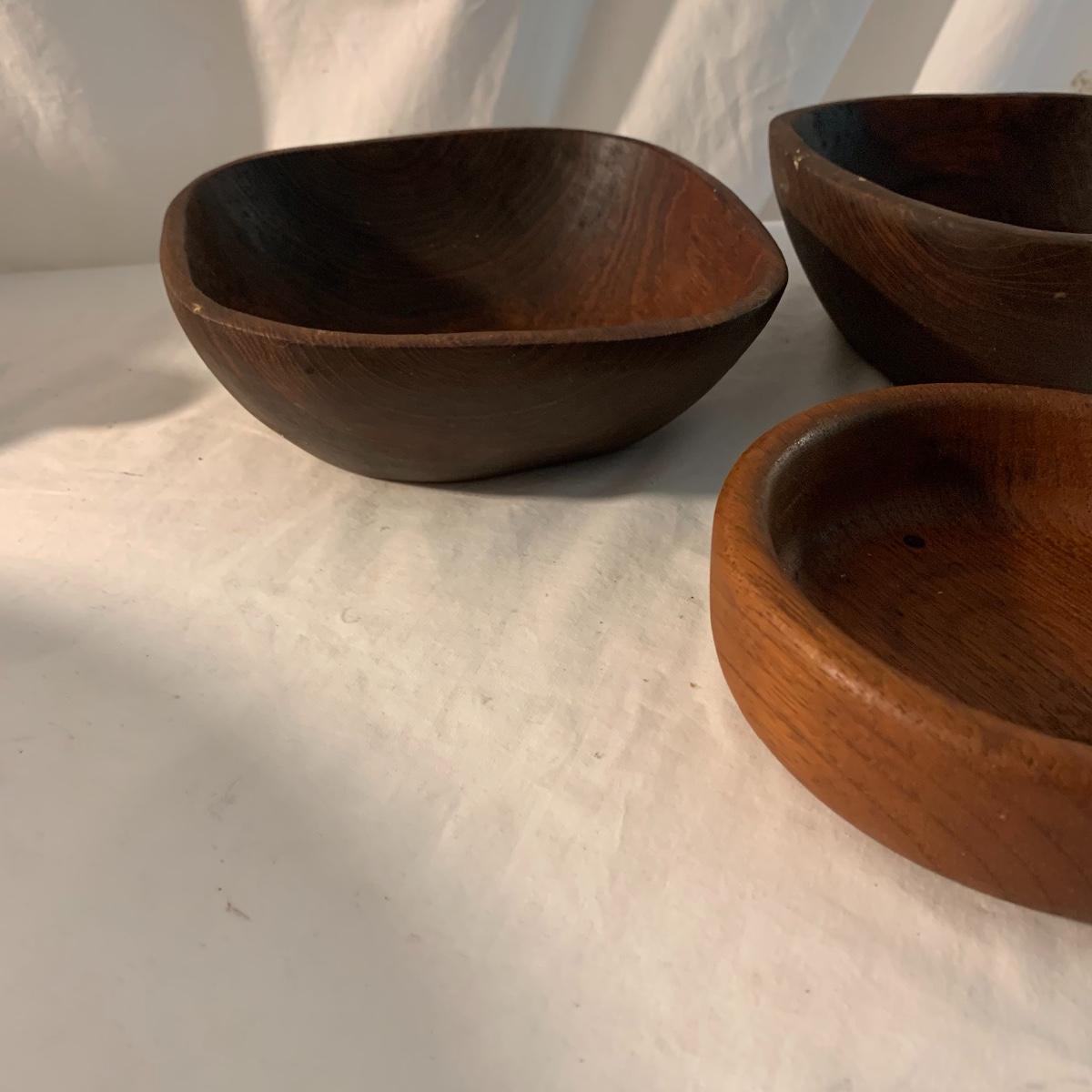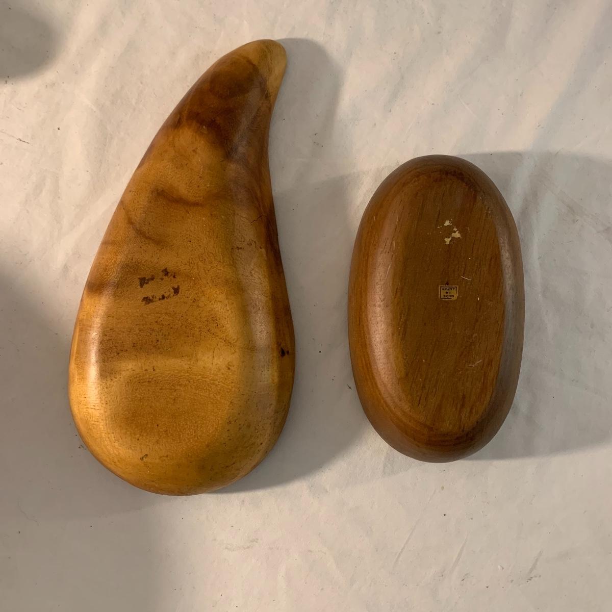 This set of wooden serving trays and bowls will be a hit at your next get together! Featured are two large salad bowls (one is cracked see pic), the largest bowl measures 14"x5", salad serving spoons (14"), a set of eight salad bowls (6"x2"), other assorted bowls, four serving trays, the largest measuring 11"x20"x1", a set of fondue forks, a set of plastic cocktail forks, and even a set of corn holders. See pics for details.