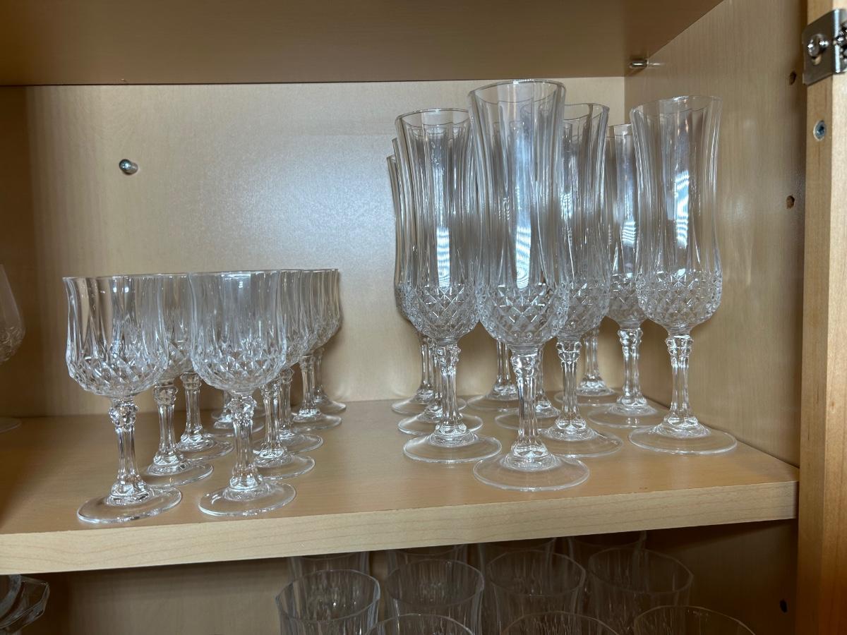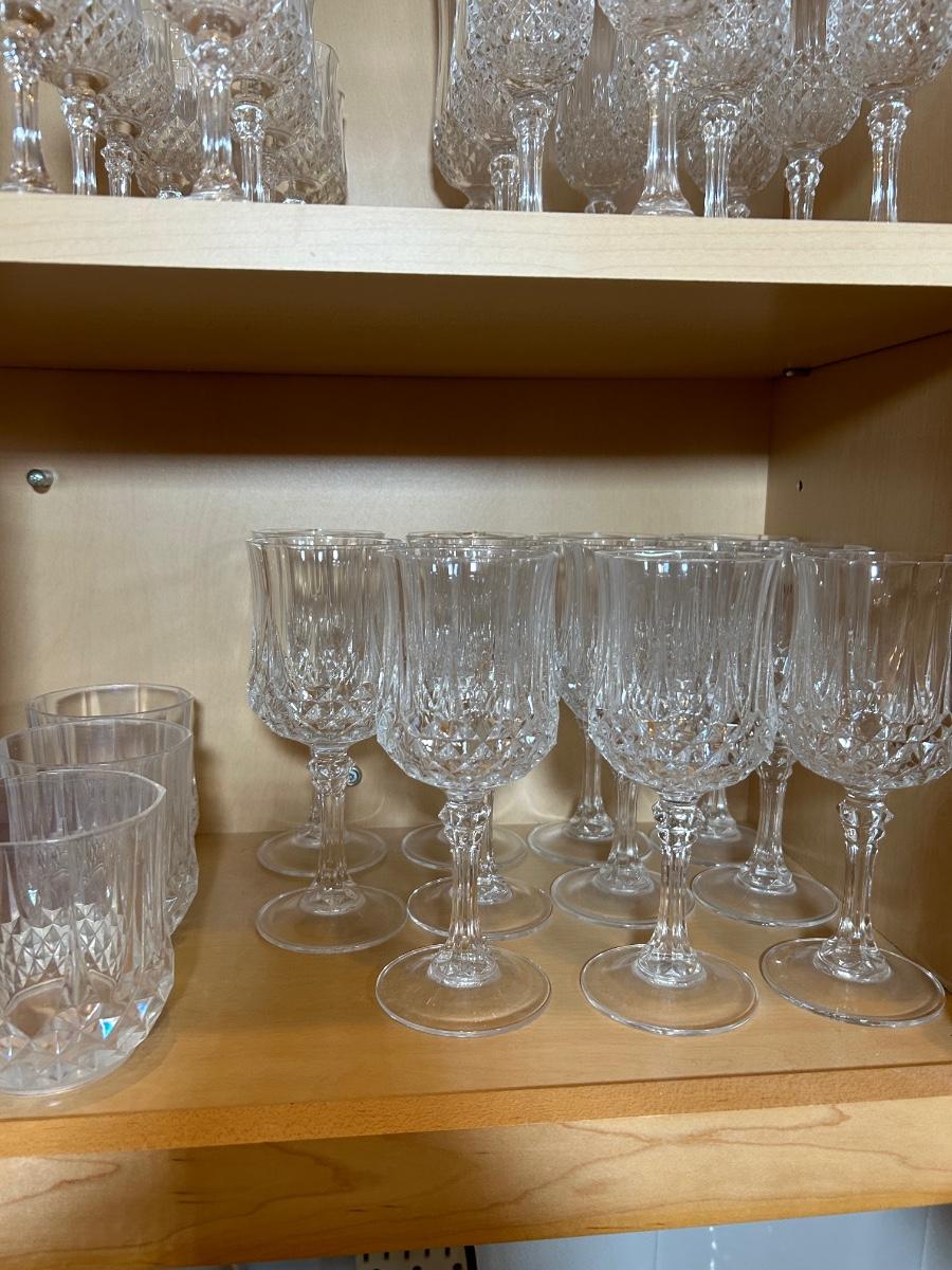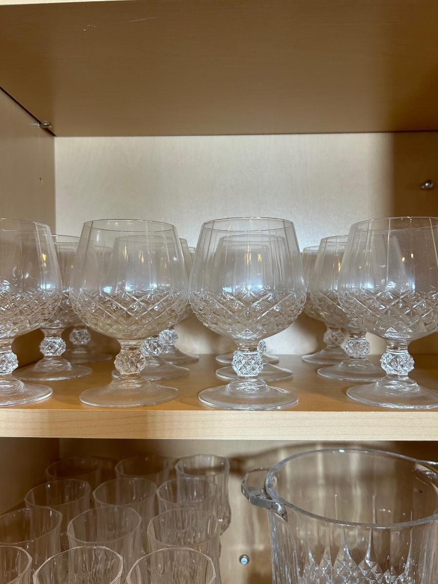 ice Bucket, 10 champagne, 9 red wine, 12 white wine, 12 brandy, 3 old fashioned, 10 cordials