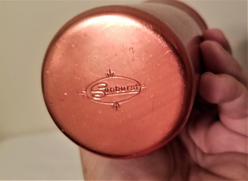 Total Mid Century here - 11 colored aluminum drinking glasses from the Sunburst Company (all marked). Each stands about 5" tall. All are gently used.