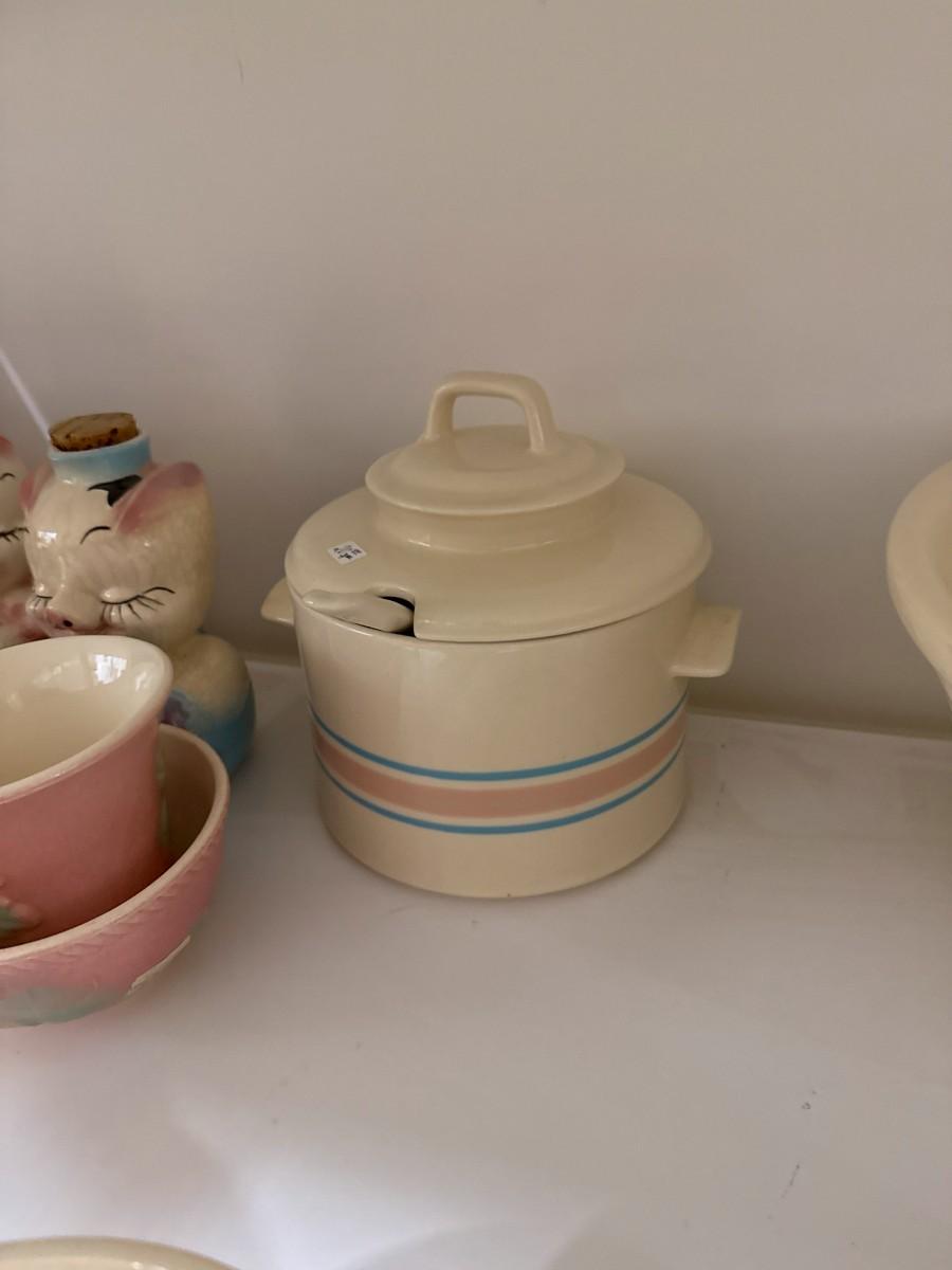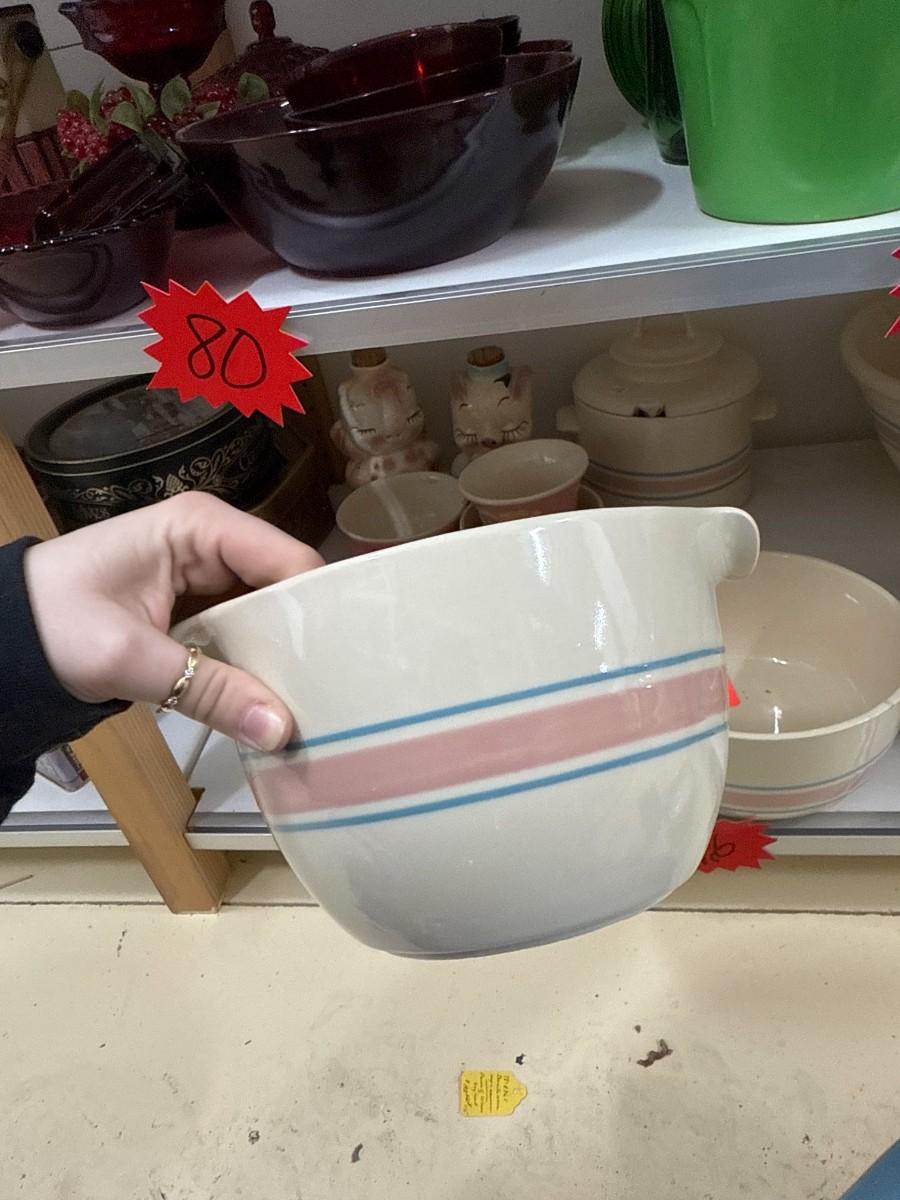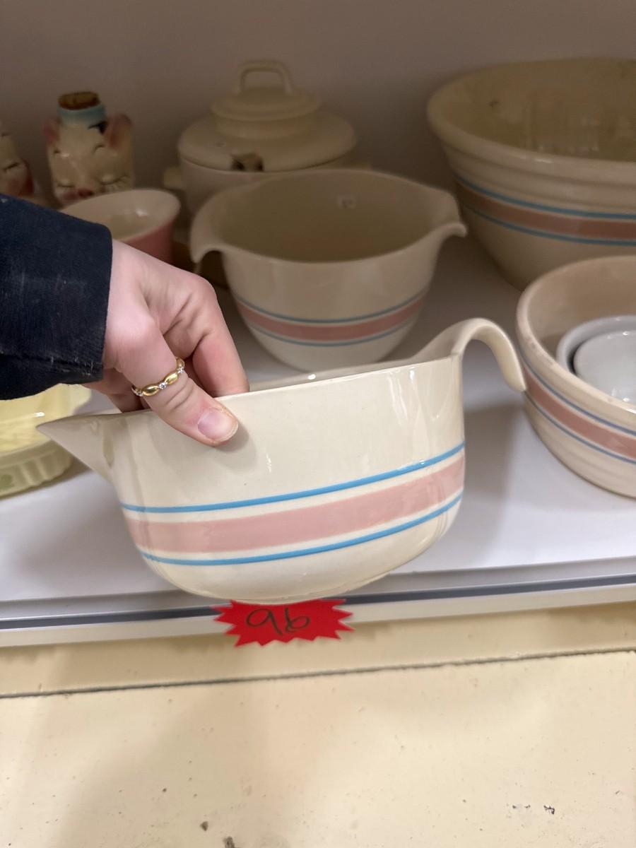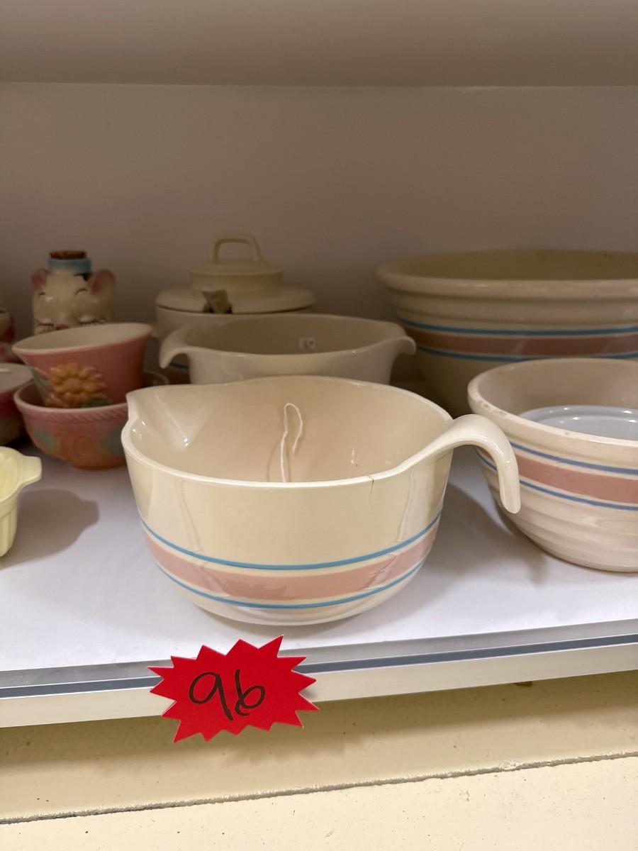 5 McCoy pink and blue bowls, plus the two bowls inside
