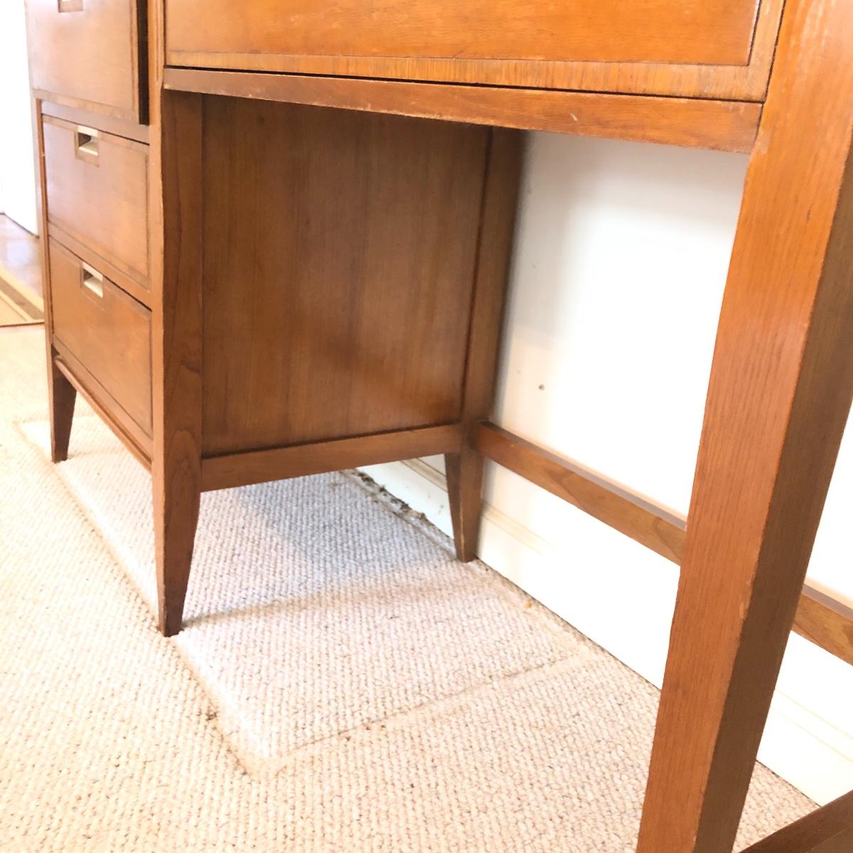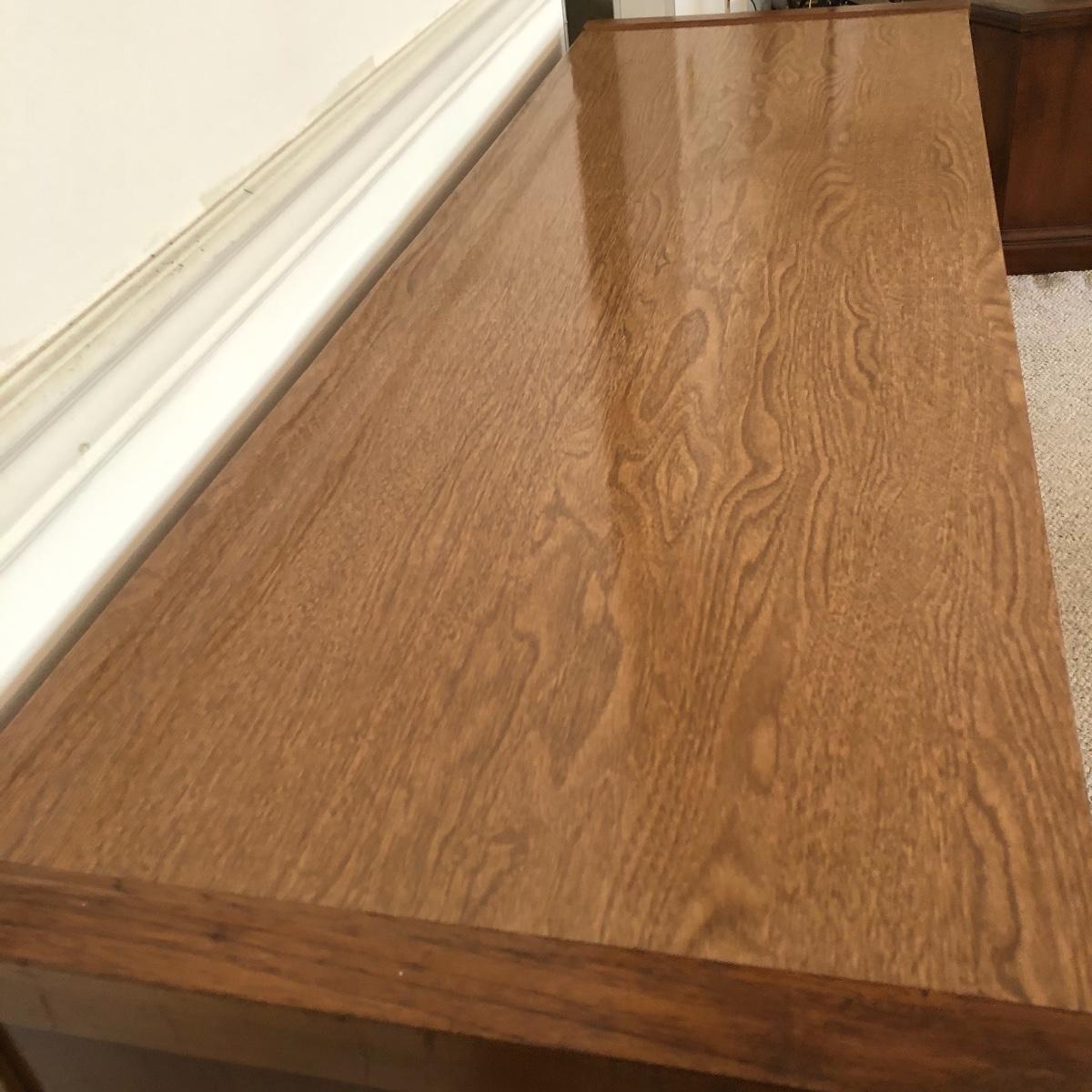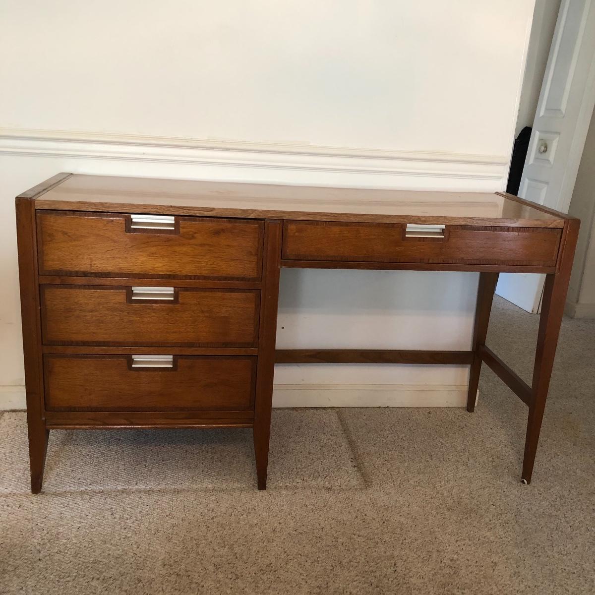 This beauty will look great in your home office or for the student in your home. Lot includes Basic Witz MCM desk with four dovetailed drawers and is solid wood with a glossy finish and a wood grain laminate top. Desk is in good shape with a few scratches on legs, see pictures. Desk measures 18” x 54” x 30”.
