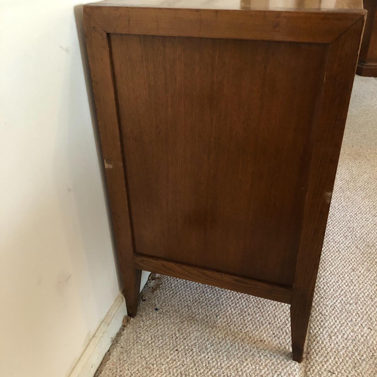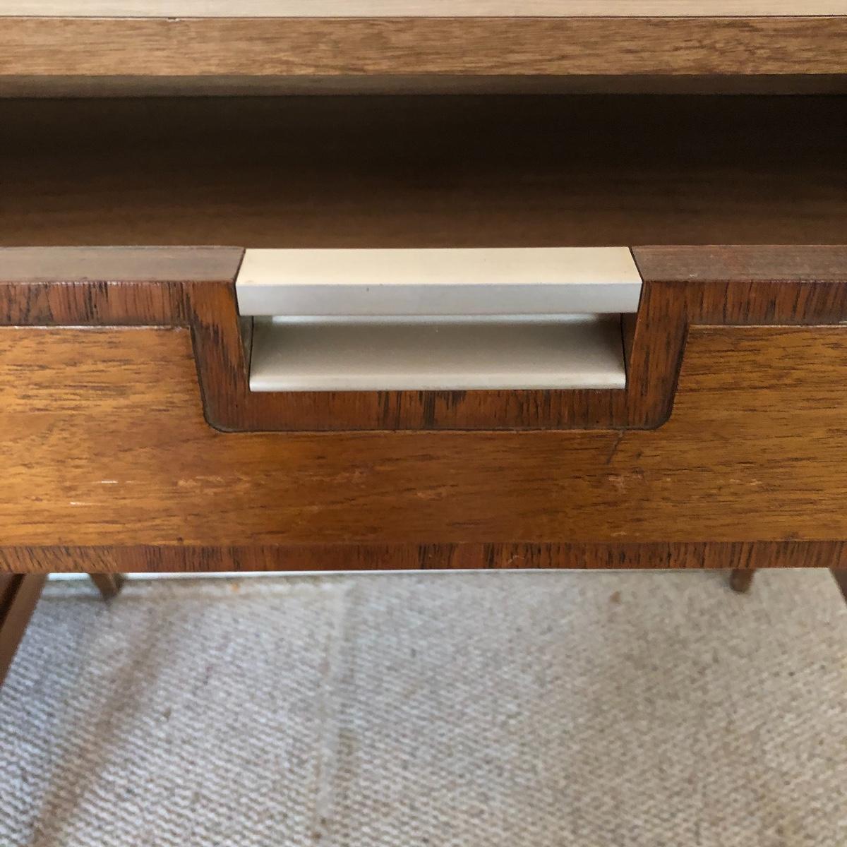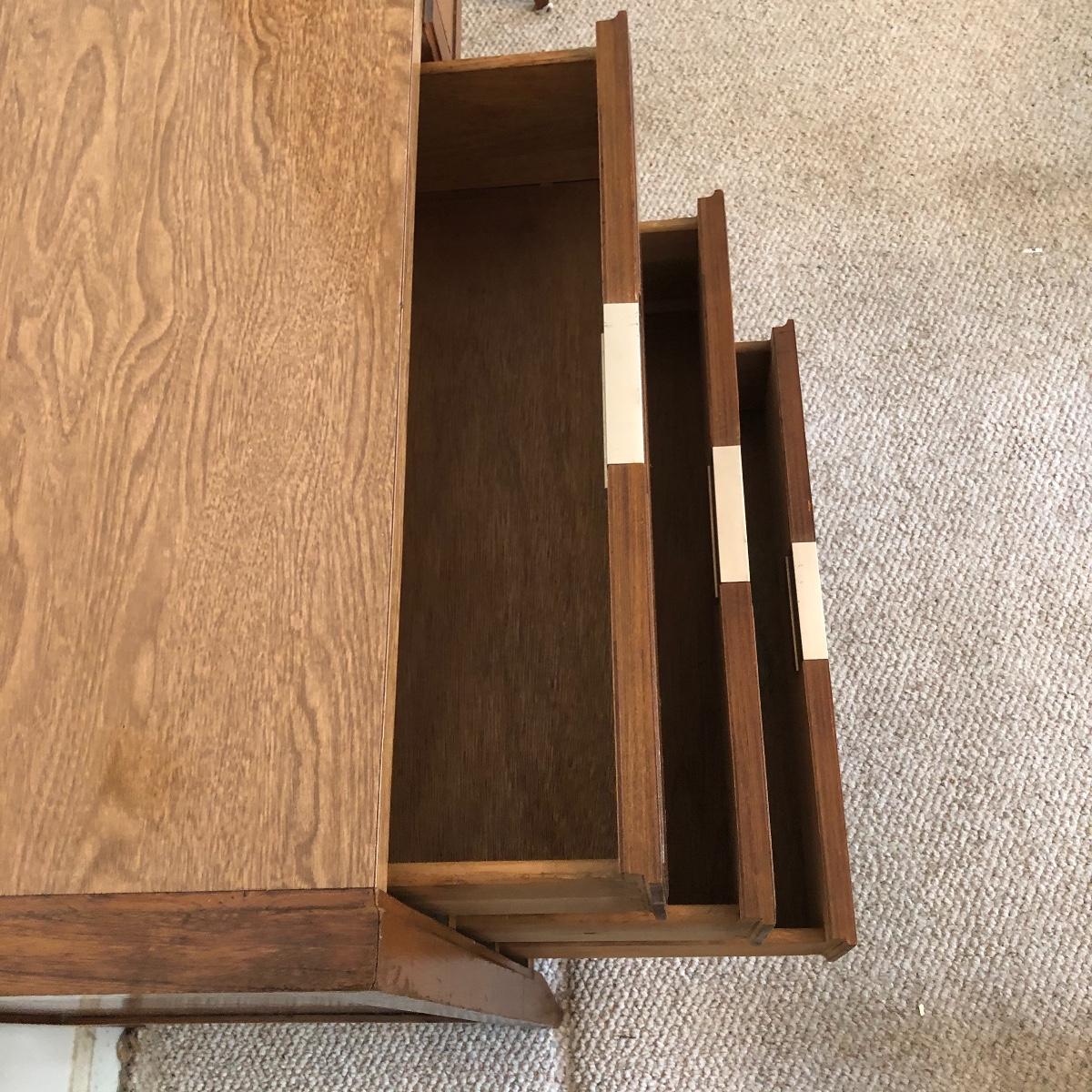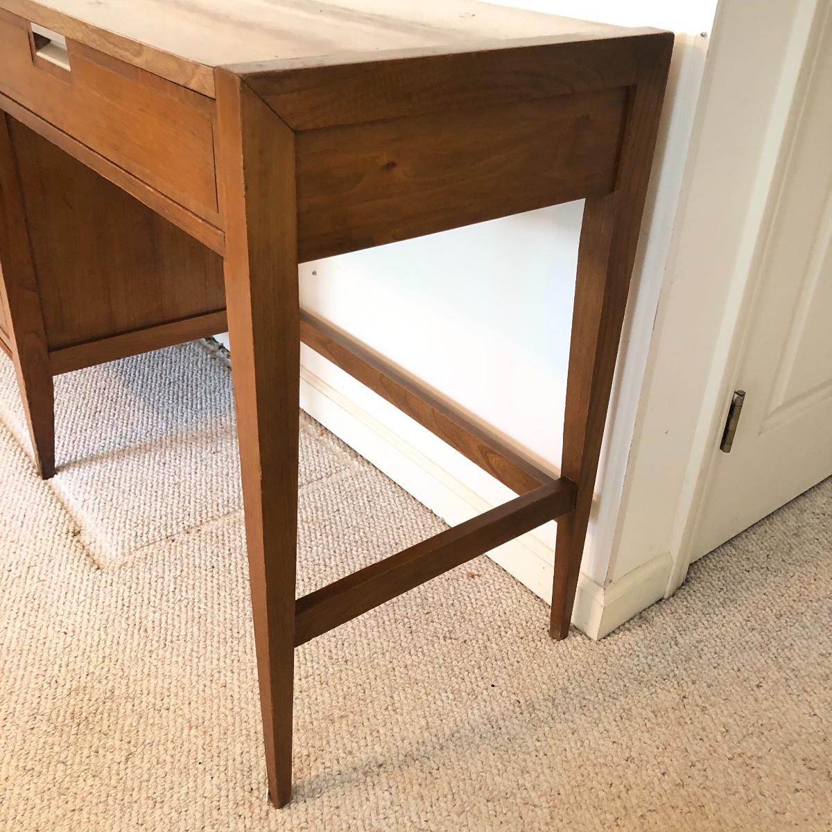This beauty will look great in your home office or for the student in your home. Lot includes Basic Witz MCM desk with four dovetailed drawers and is solid wood with a glossy finish and a wood grain laminate top. Desk is in good shape with a few scratches on legs, see pictures. Desk measures 18” x 54” x 30”.