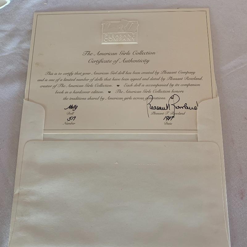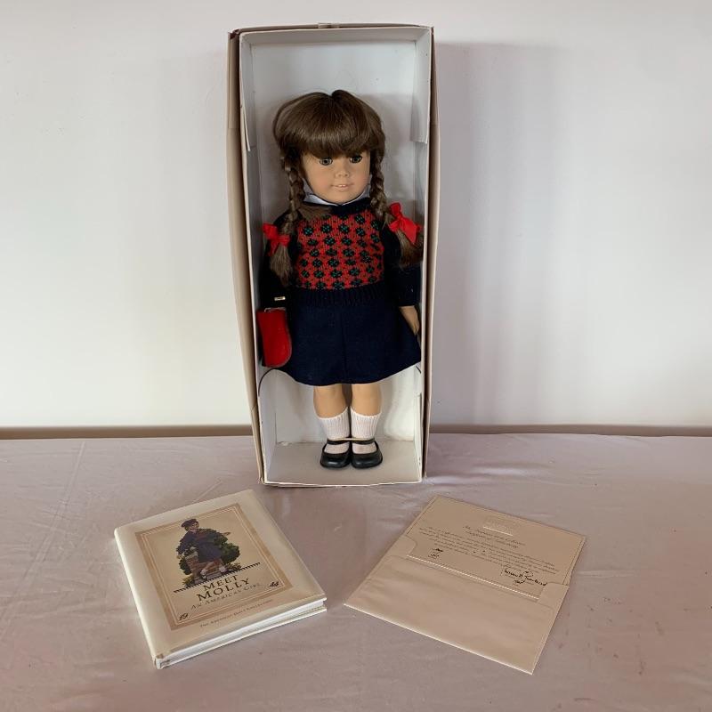 This 1987 number 517 of the Molly Doll with COA, Book original box and doll still attached inside. What a wonderful gift this holiday season! Shipping available.