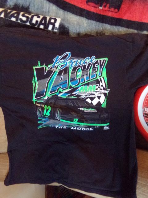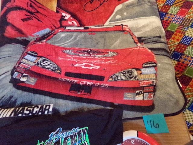 NASCAR THROW BLANKET DALE EARNHARDT JR, NASCAR CLOCK, THE T-SHIRT X-LARGE, IS OF COLORADO NATIVE BRUCE YACKEY.