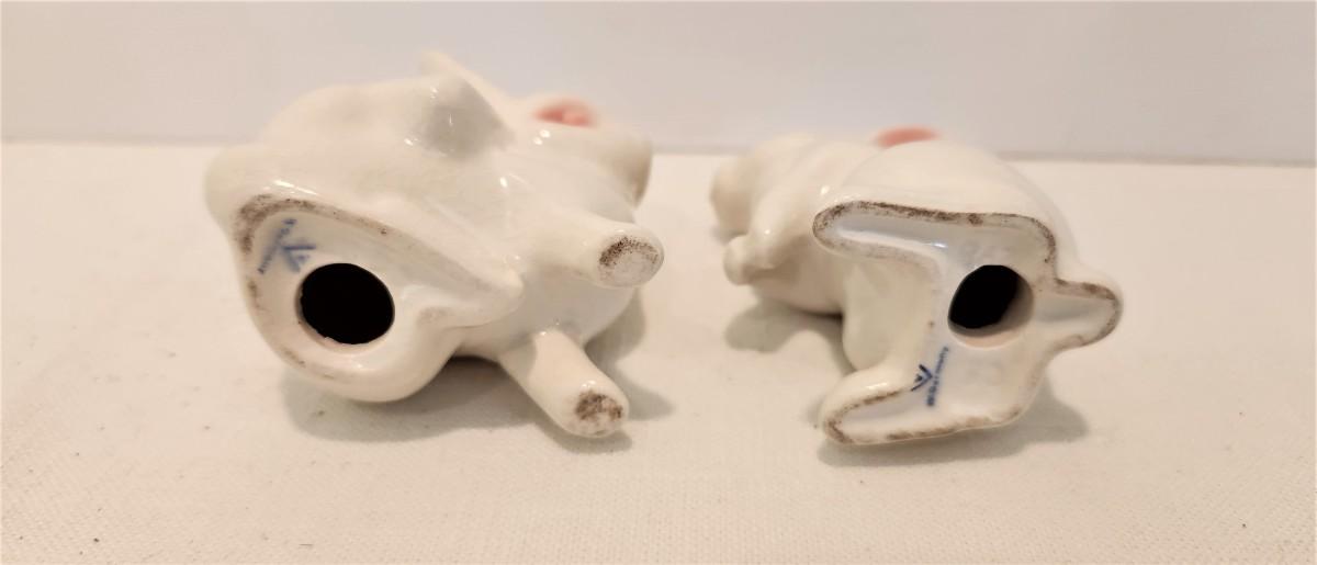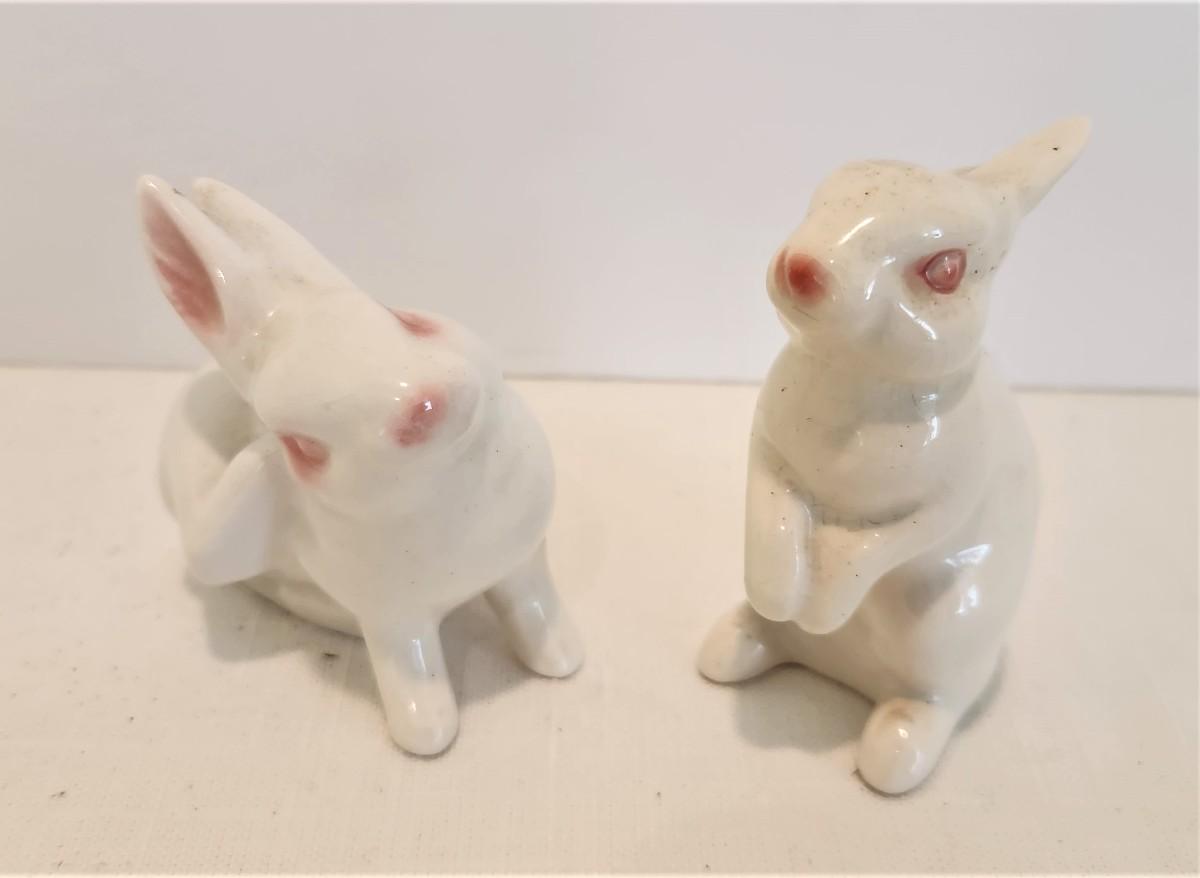 Just in time for Easter - 2 porcelain bunny figurines sporting the Goebel Mark. Good condition, larger is 3" tall.