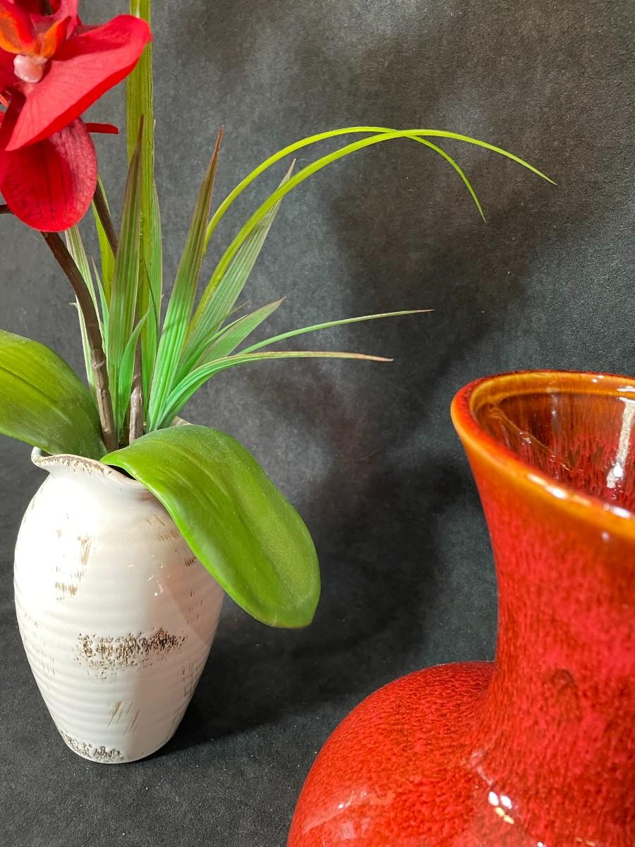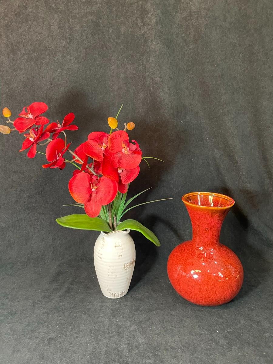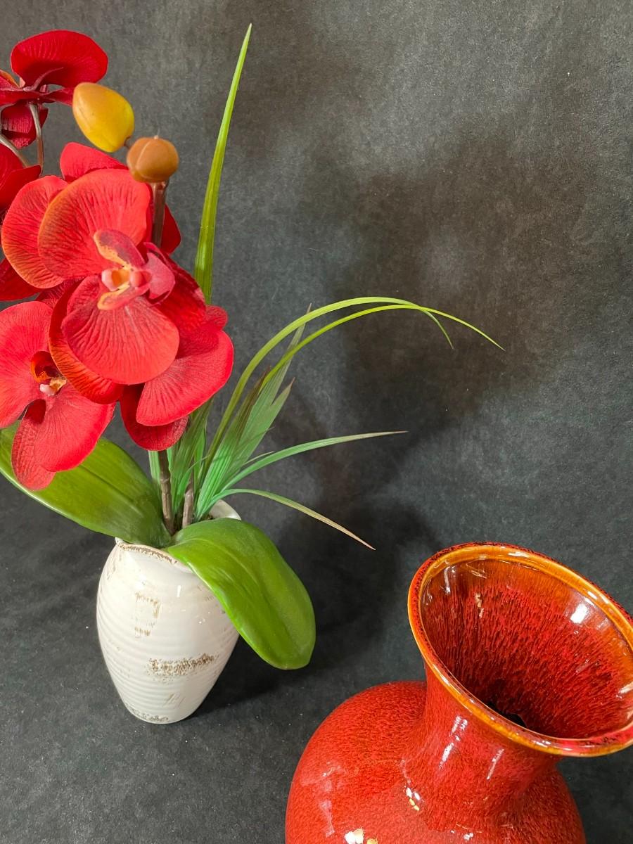 Lot 96 Red Vase & Silk Orchid in White Vase