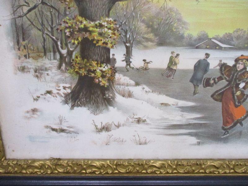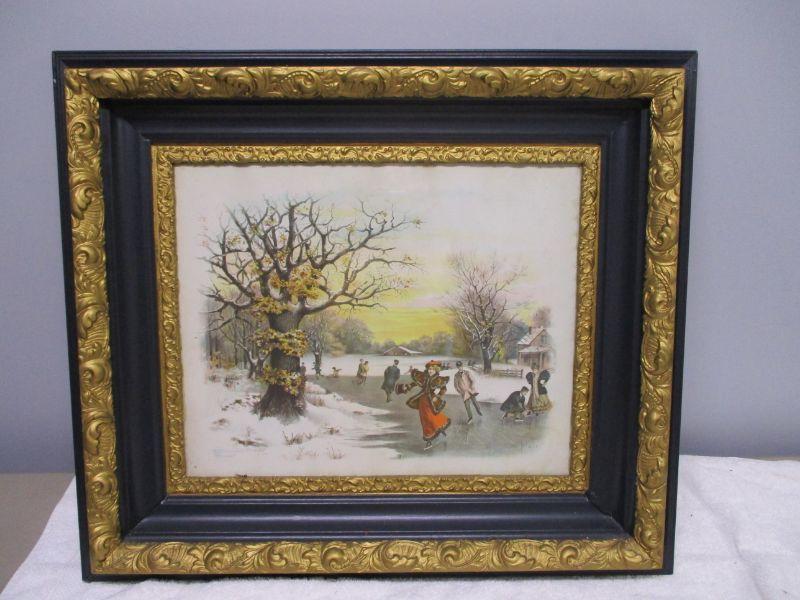 Lot 96 - Victorian Framed Print - Ice Skaters - Geo Blair