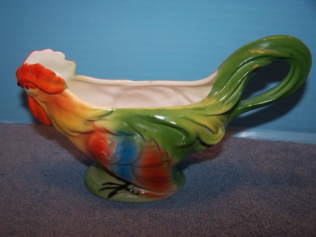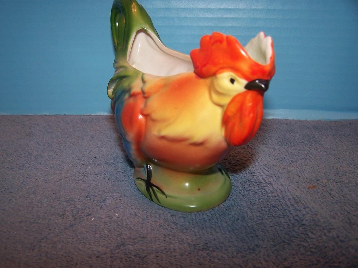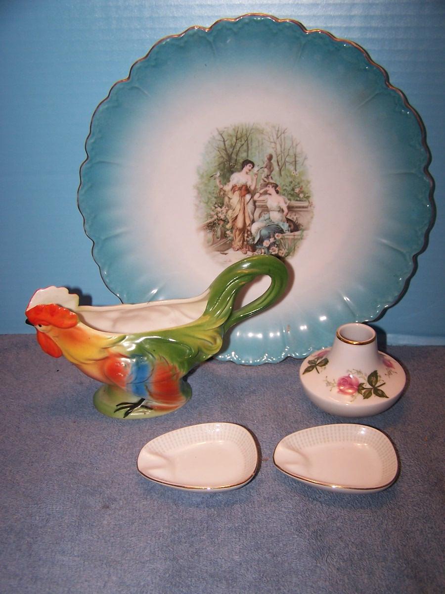 LOVELY VINTAGE GERMAN CHINA WARE....PLATE IS UNMARKED AND IS 11 1/4''.... LIGHT WEAR, THE ROOSTER CREAMER HAS A TINY/SHALLOW FLAKE ON THE THE TOP INSIDE RIM...