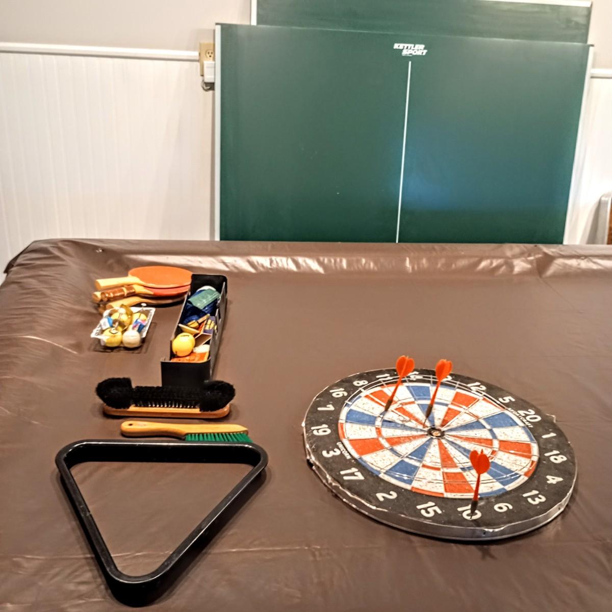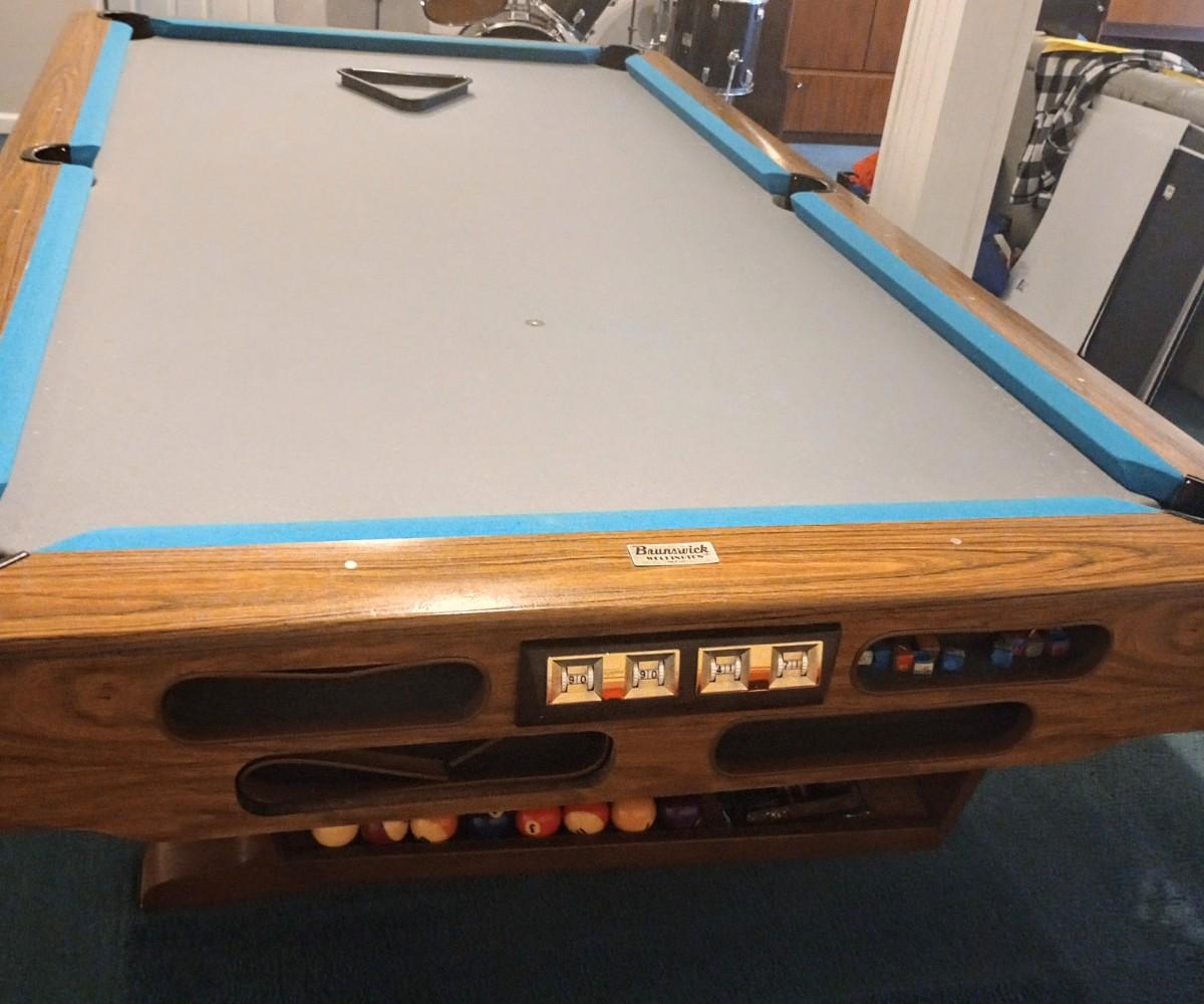 LOT 2B: Brunswick Wellington Pool Table w/ Accessories, Ping Pong Table Attachment. And Dart Board