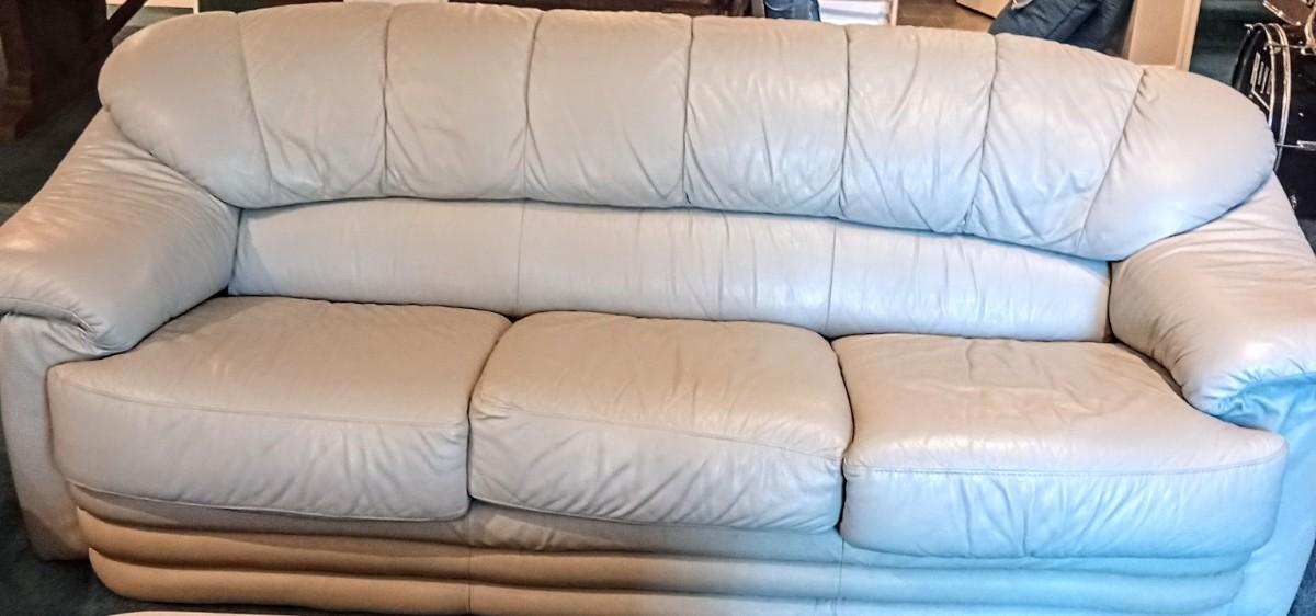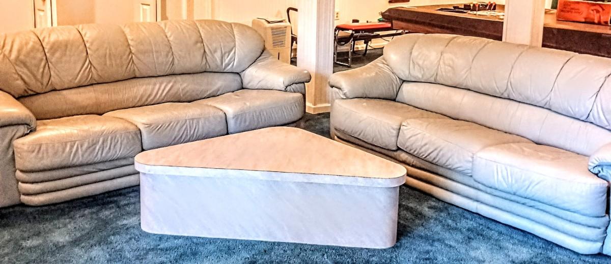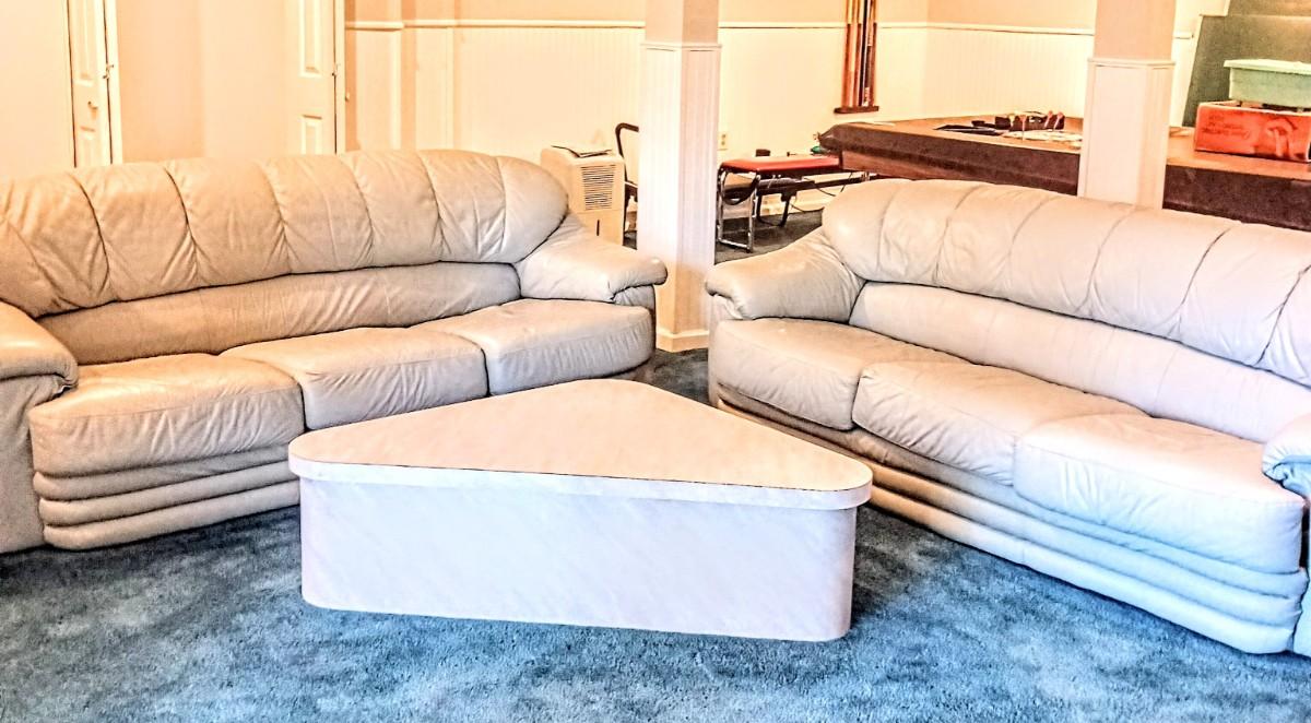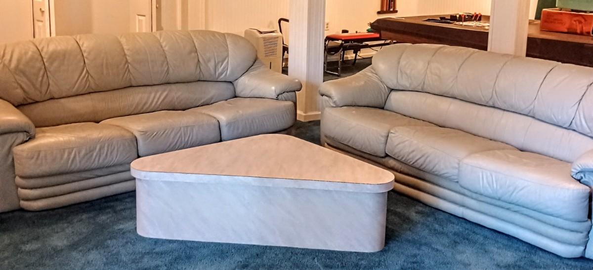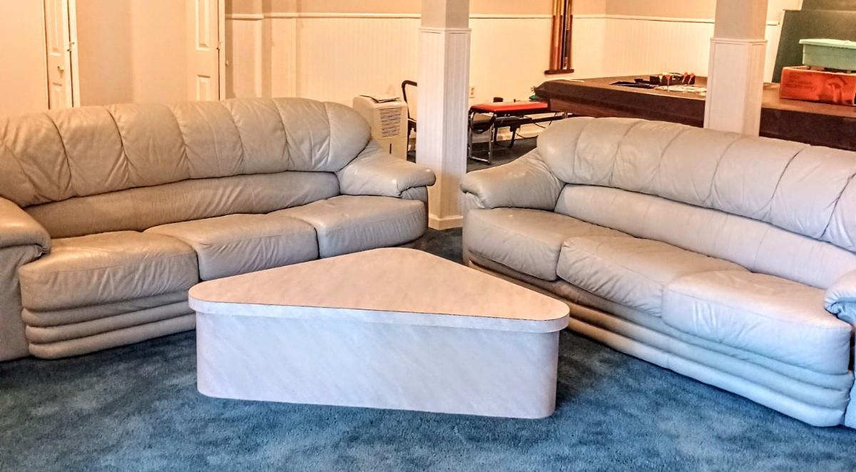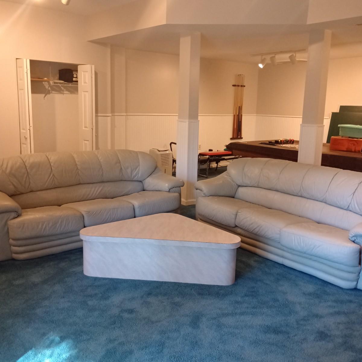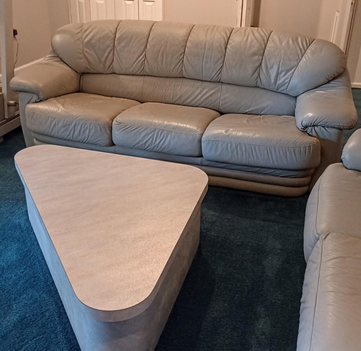 LOT 4B: Two Faux Leather Couches and Laminate Coffee Table