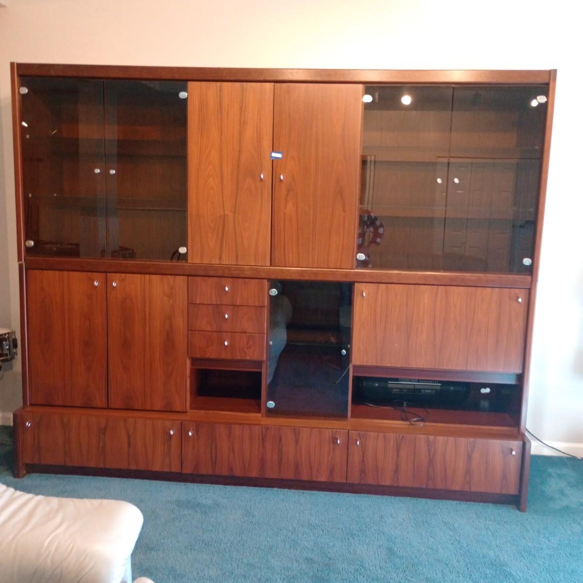 LOT 8B: Large Wooden Entertainment Center w/ Glass Doors