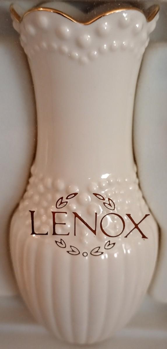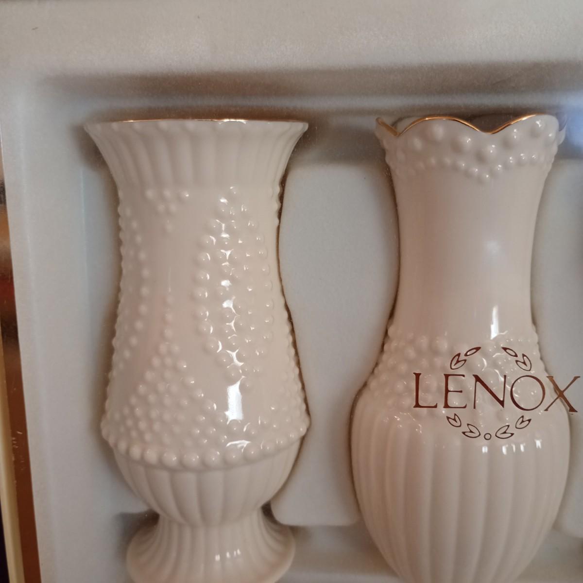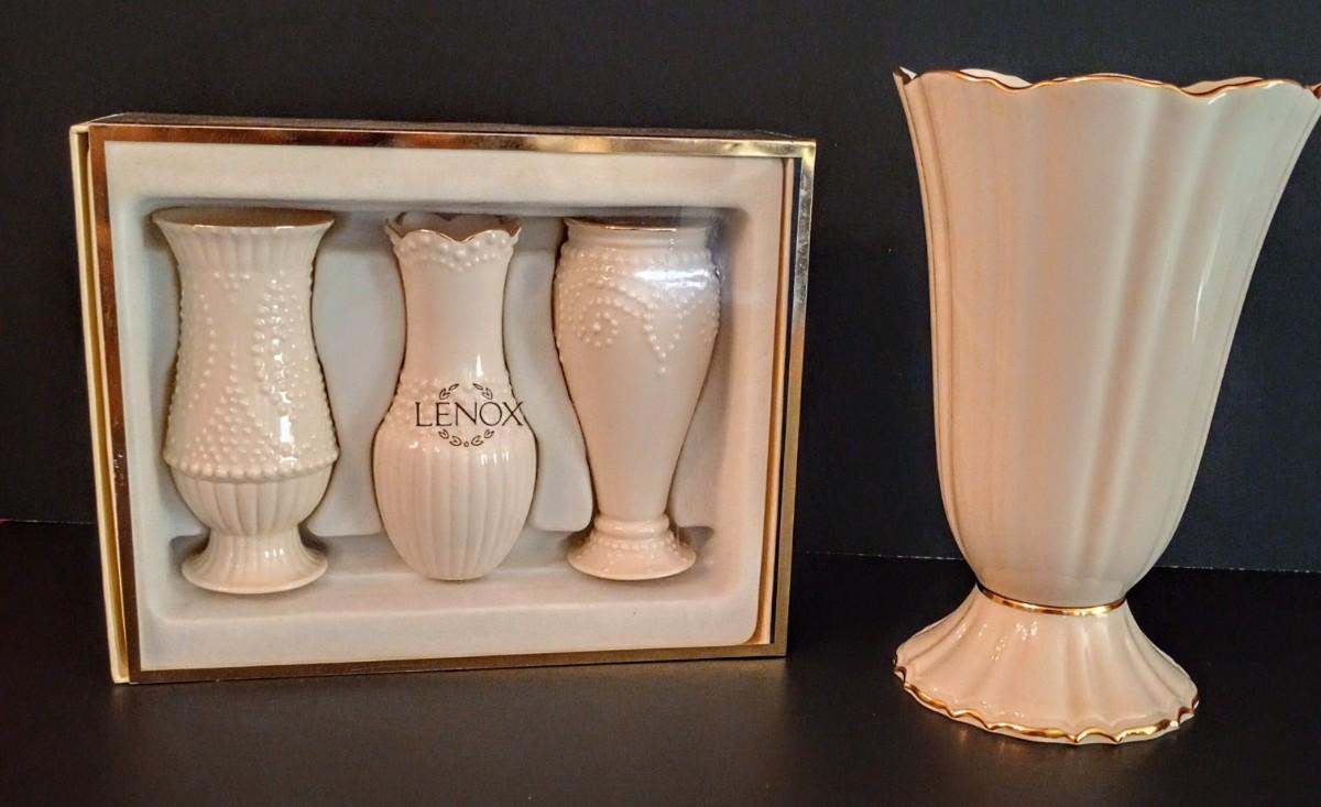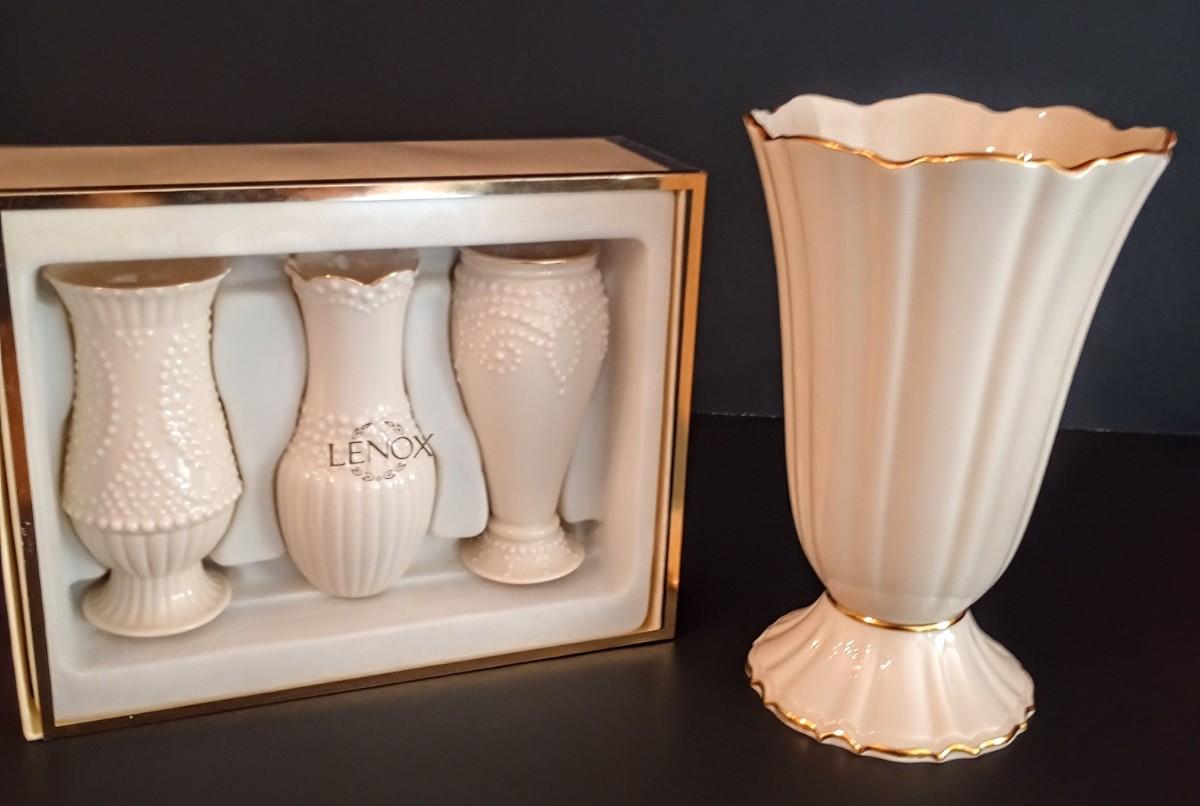 LOT 9D: Four Lenox Vases. Three are a Beaded Set and One is Larger with Gold Trim