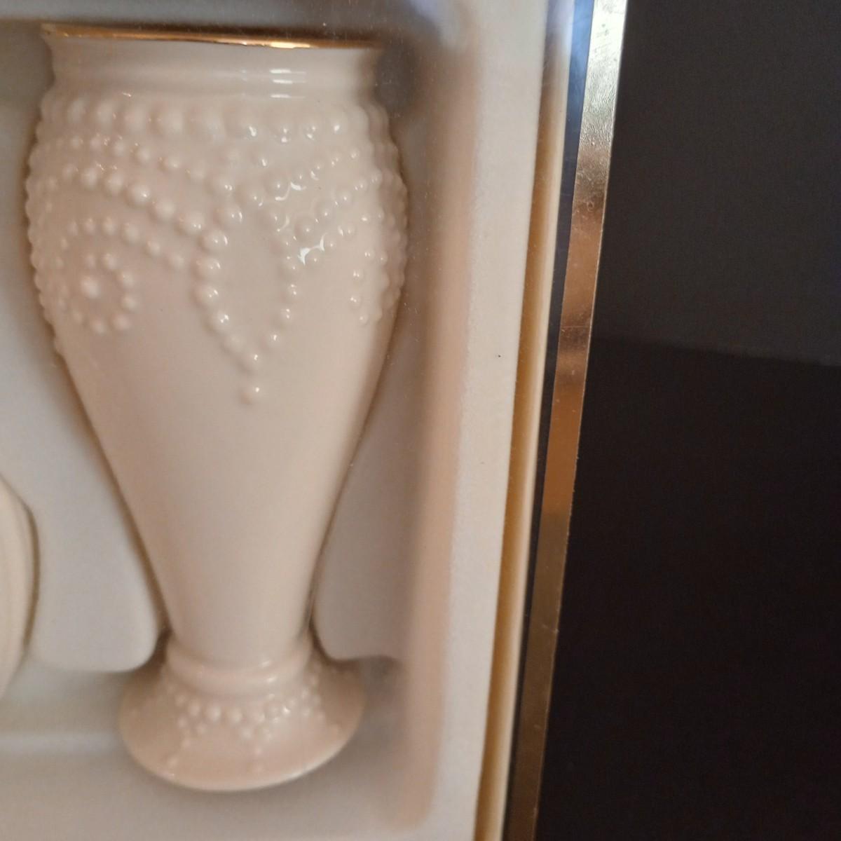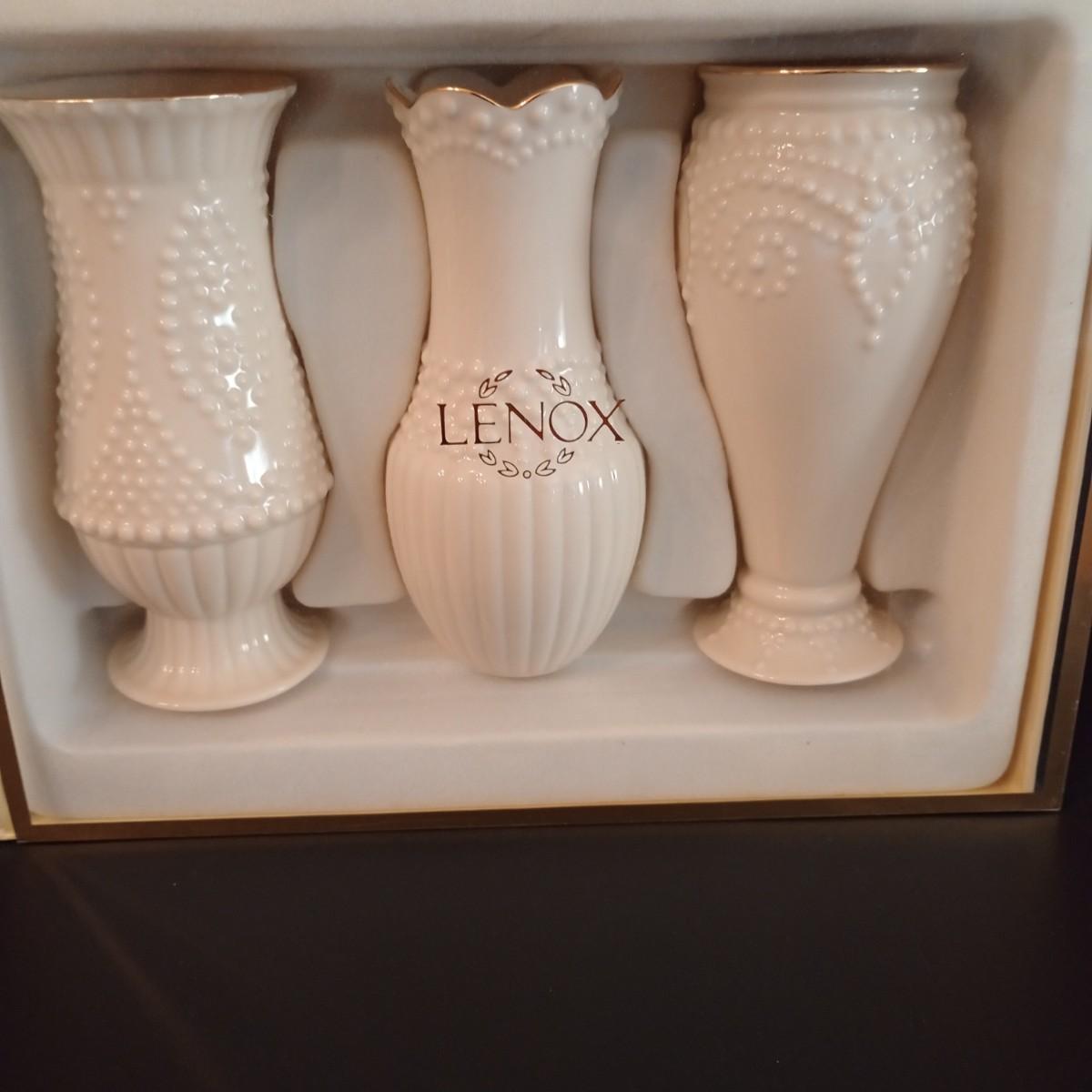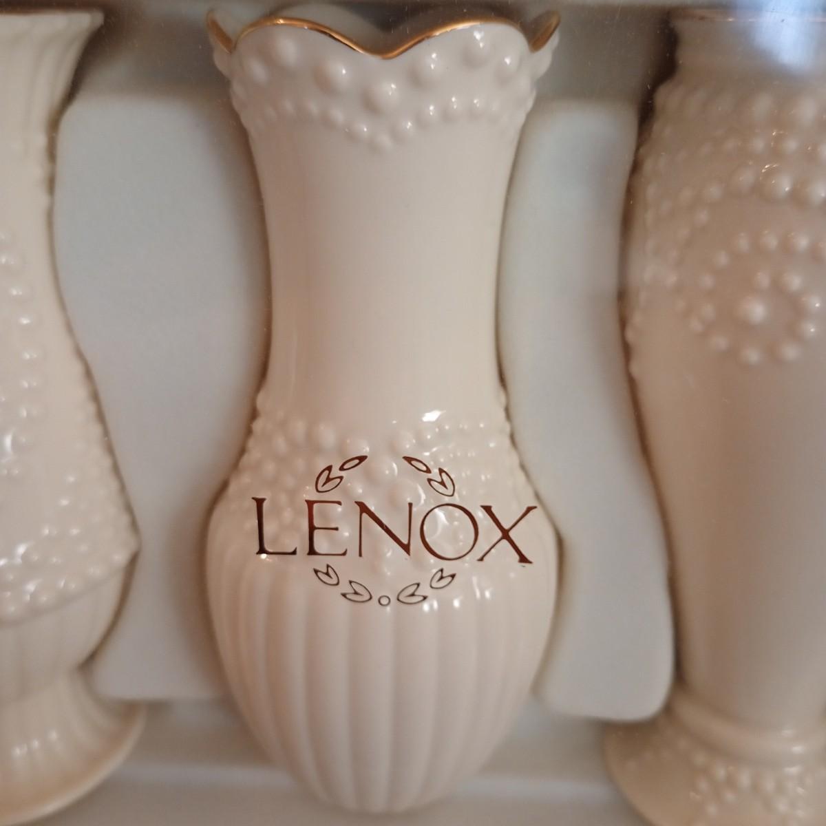 LOT 9D: Four Lenox Vases. Three are a Beaded Set and One is Larger with Gold Trim