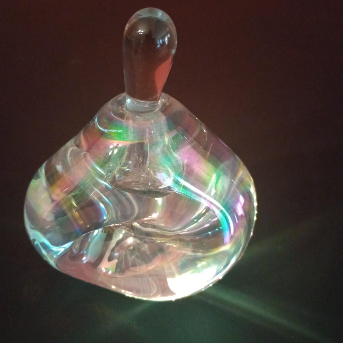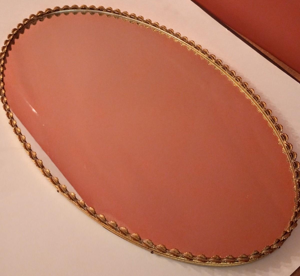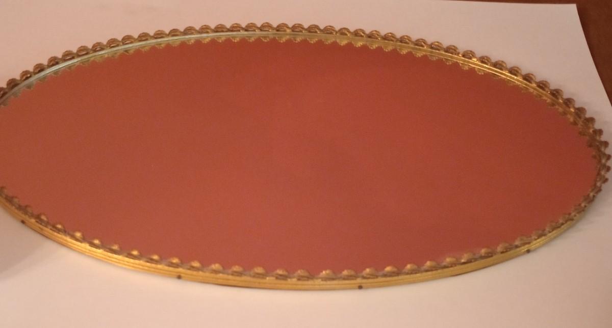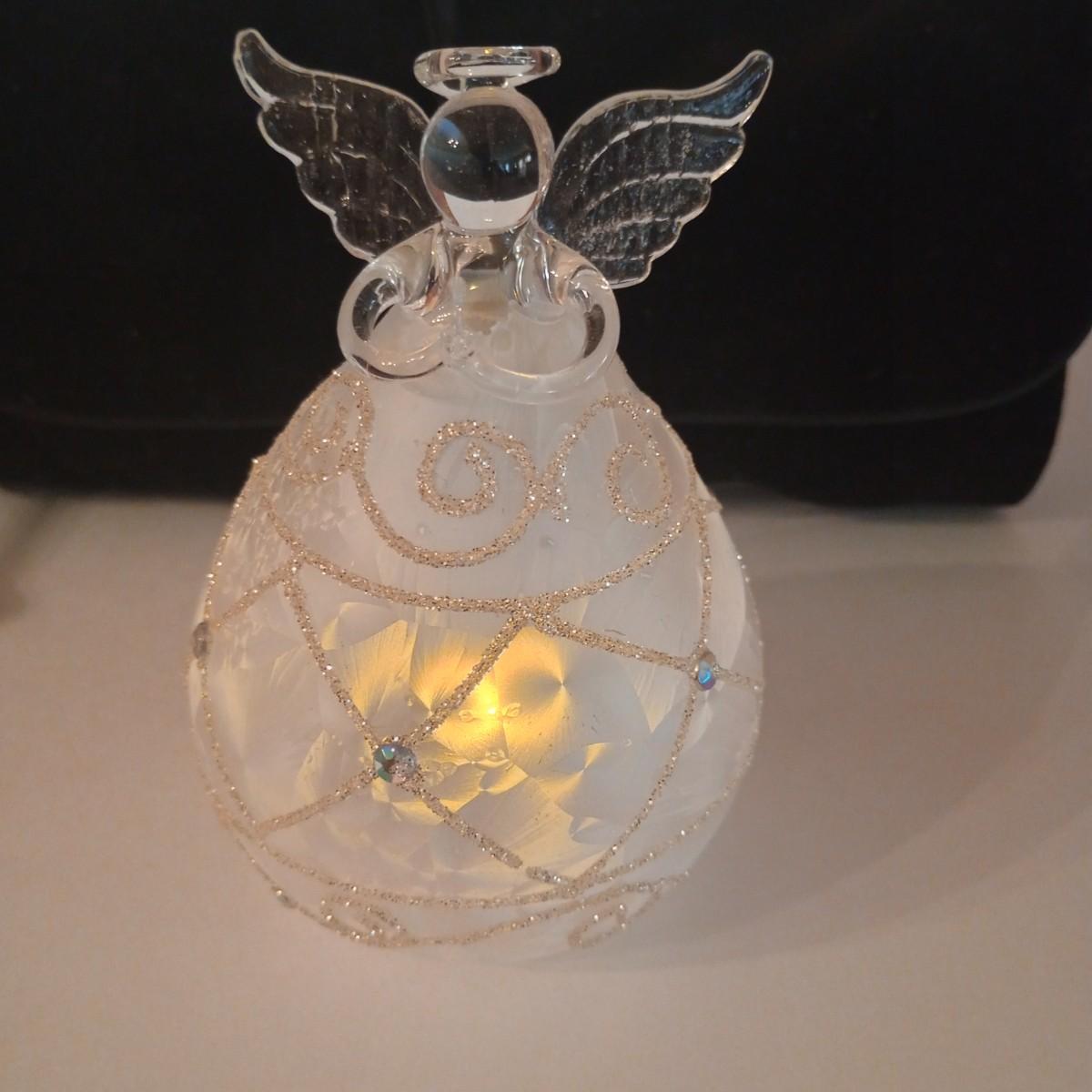 LOT 13D: Vanity Mirror Tray, Glass Perfume Bottle,  Gold Trinket Box, Glass Angel w/ Light and Jewelry Pouch