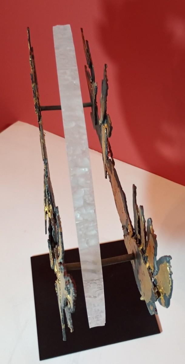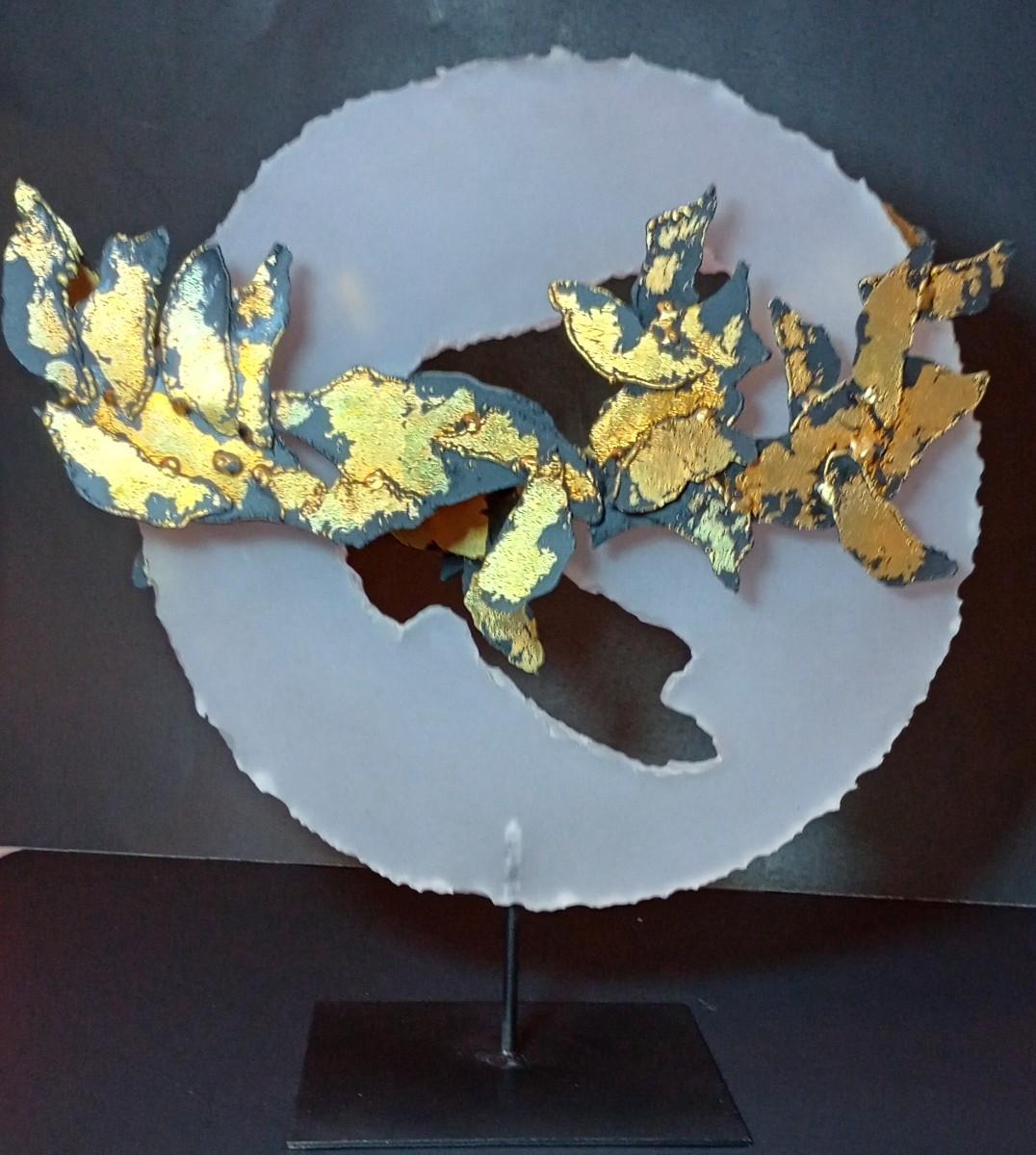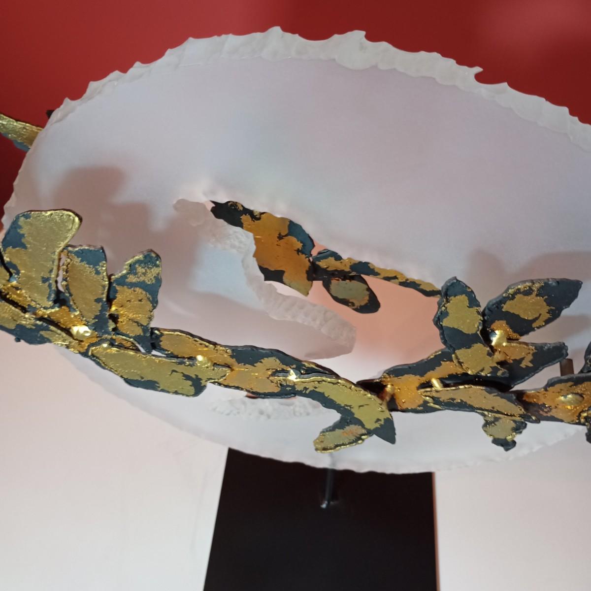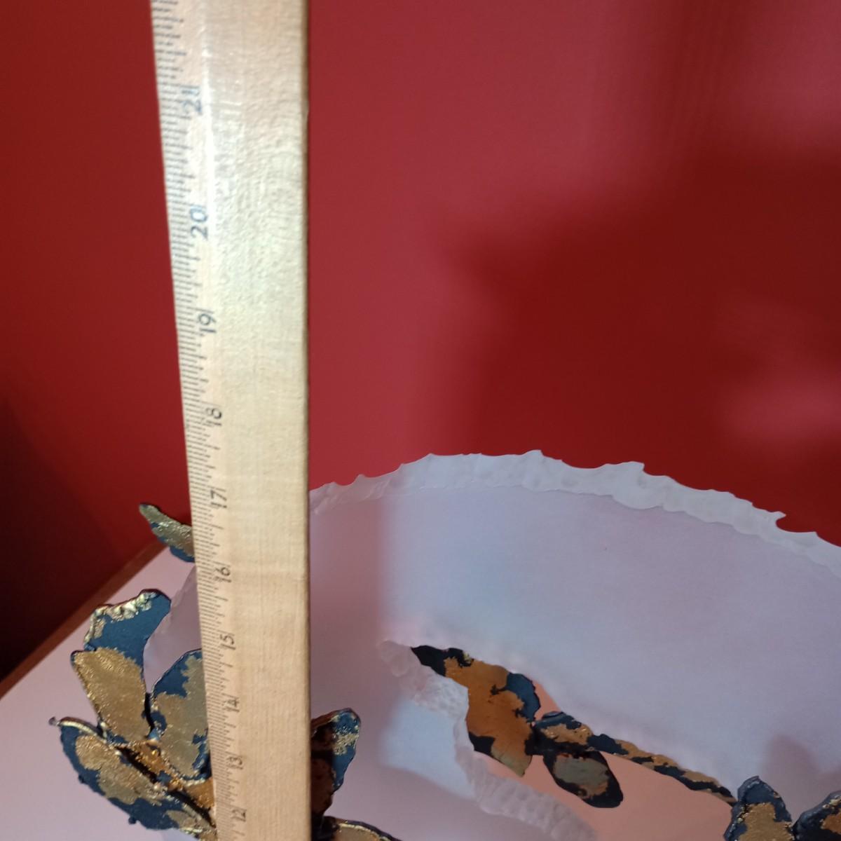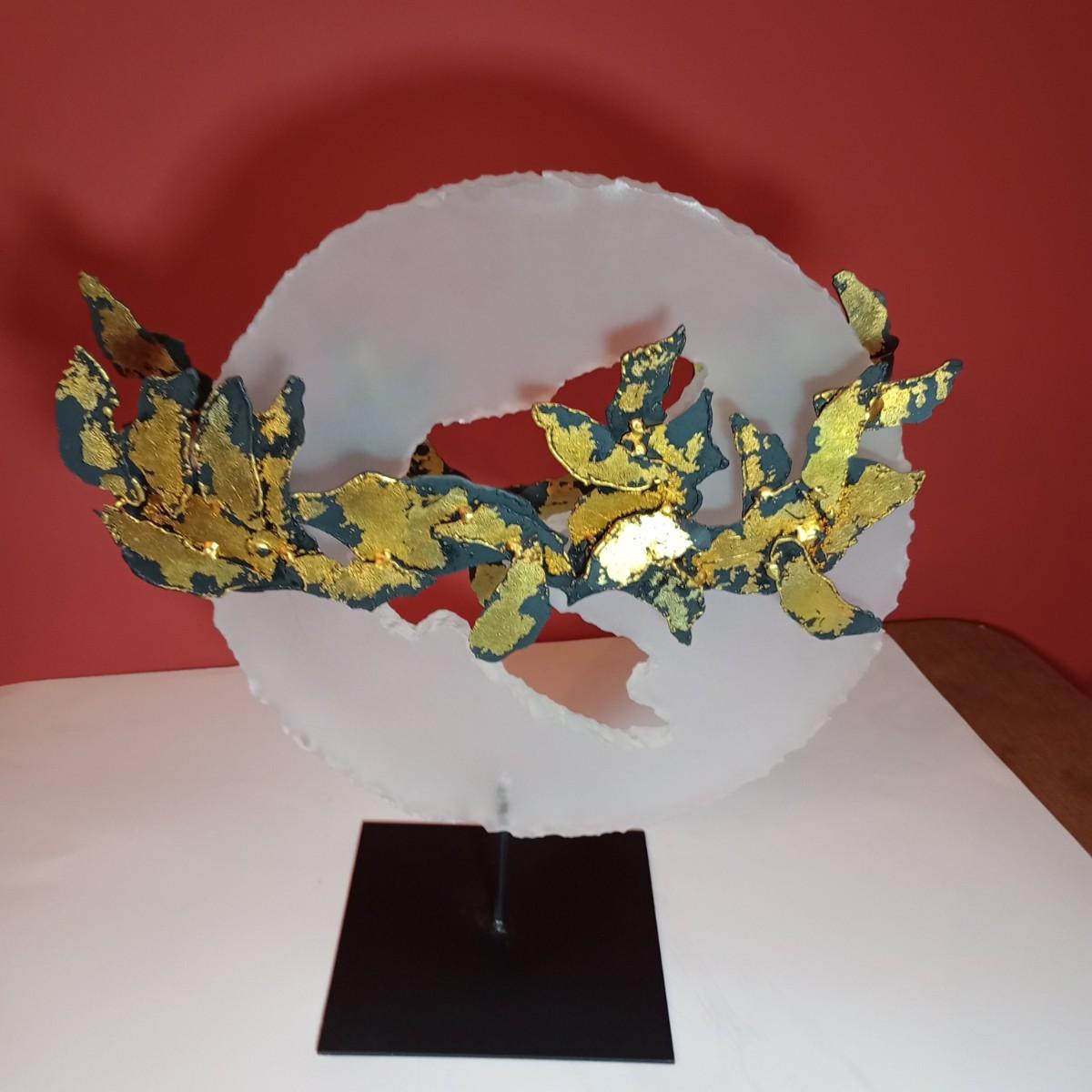 LOT 20D: Decorative Round Frosted Glass with Gold Accents on Stand