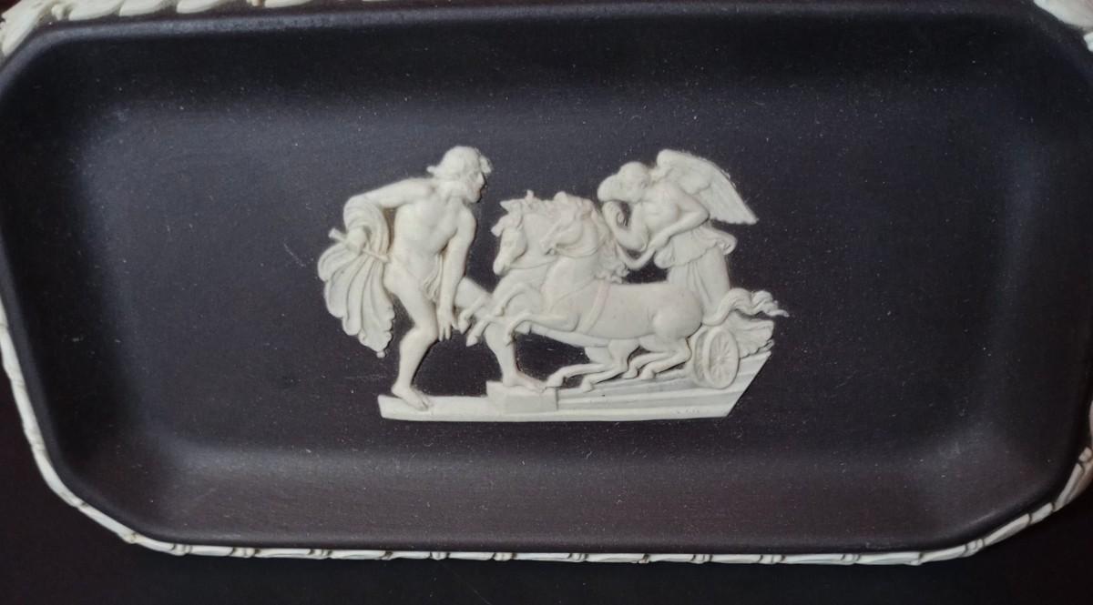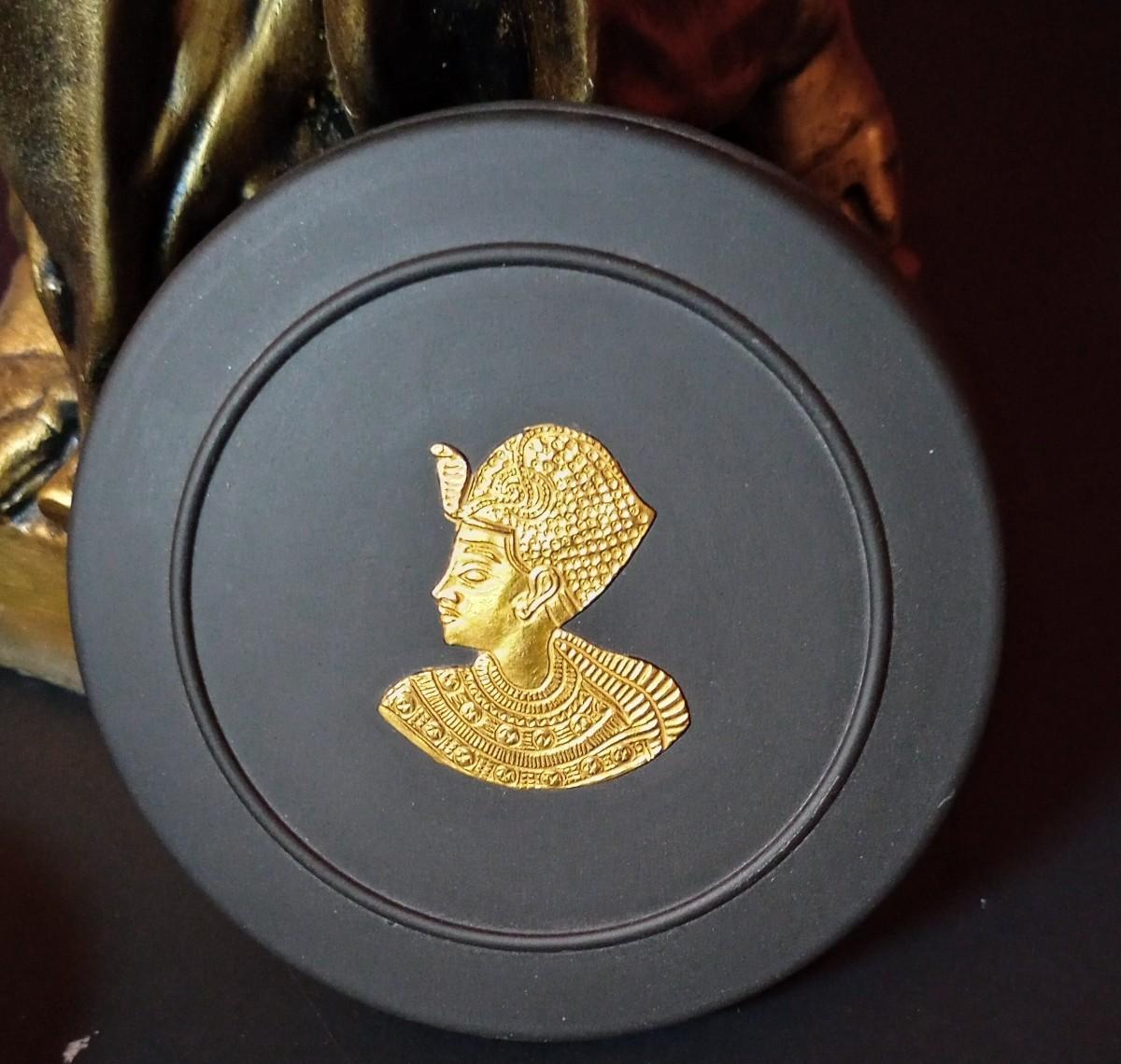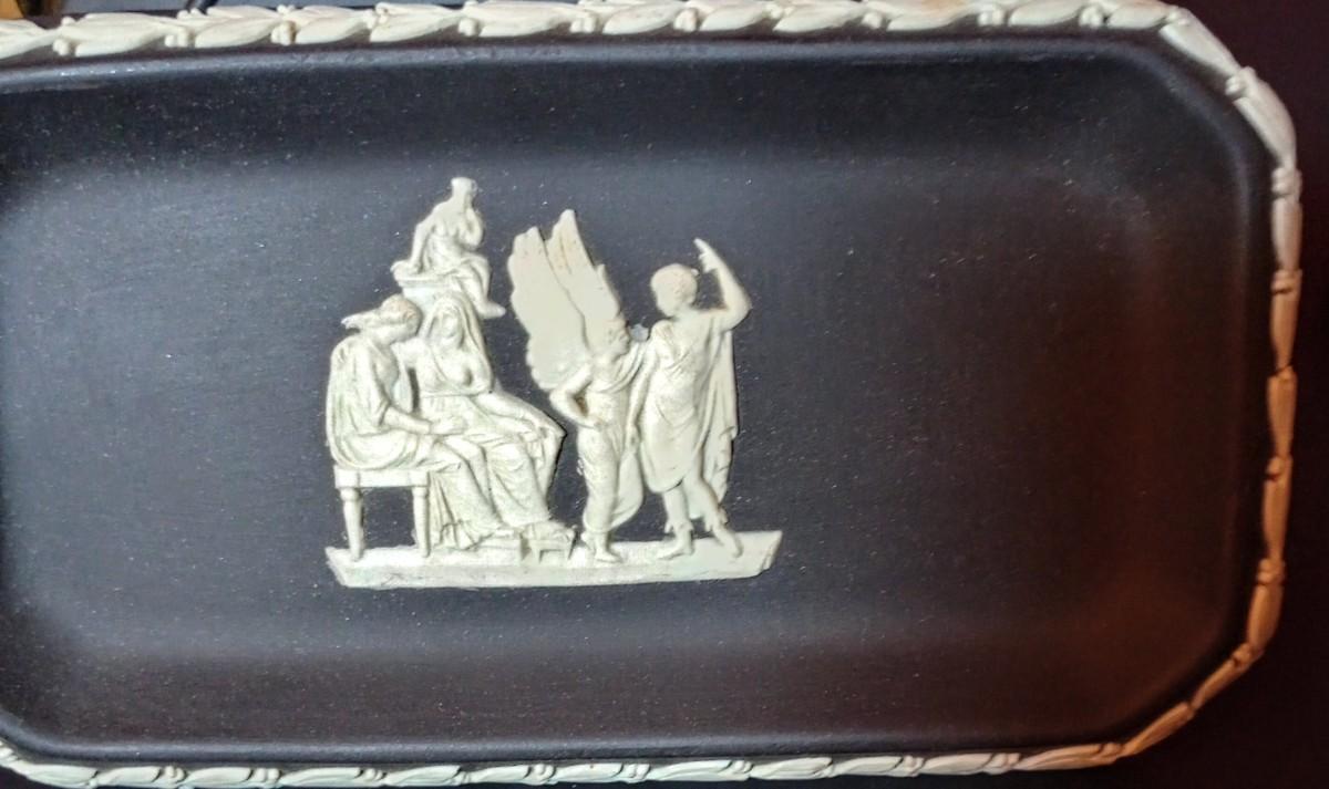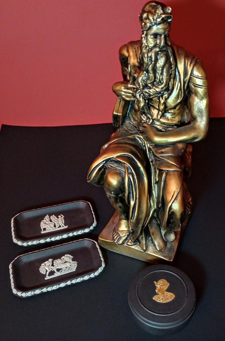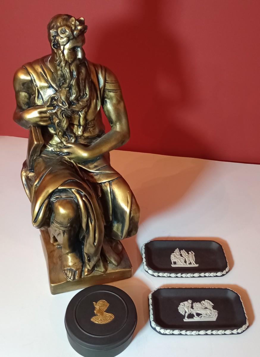 LOT 21D: Gold Ceramic "Moses" Statue and Three Wedgwood Trinket Holders
