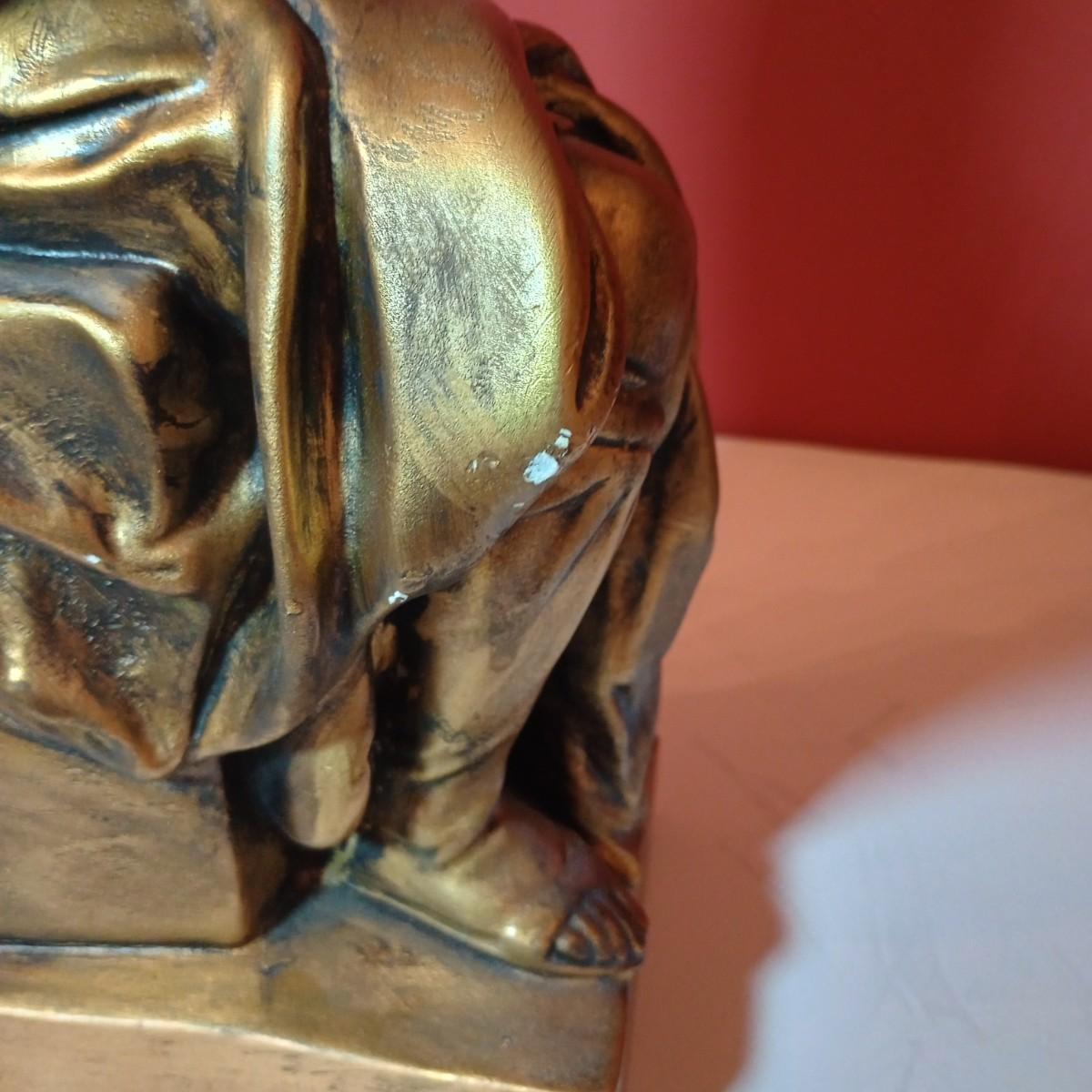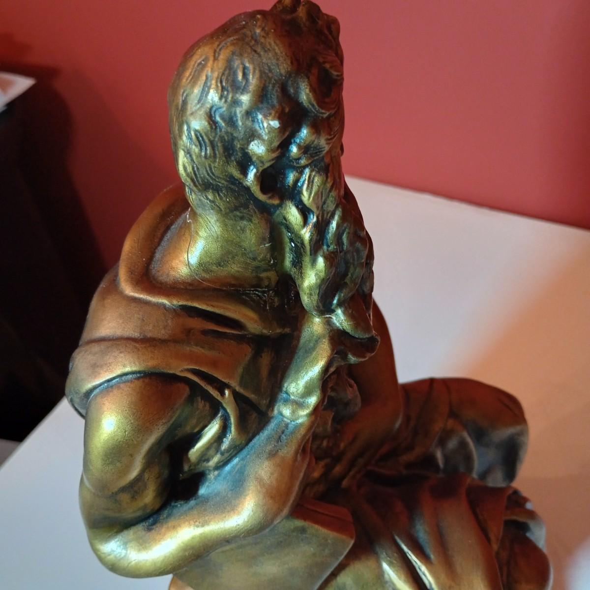 Moses statue does have a previous repair. Please see all pictures as they are the best representation of the items. The pictures show condition, measurements if taken, and what is included in the lot. Due to the large amount that we photograph and the time frame, we are not always able to take measurements. All items unless noted, are pre-owned and have been used. If you purchased furniture, you must bring help. We do not allow one person to carry large furniture out on their own. Bring help, tools and a truck for the safety of our client’s homes, and your personal safety. Any damages that result to the property including walls, and floors due to moving of the furniture will be charged to the buyer. Company policy. Thank you.