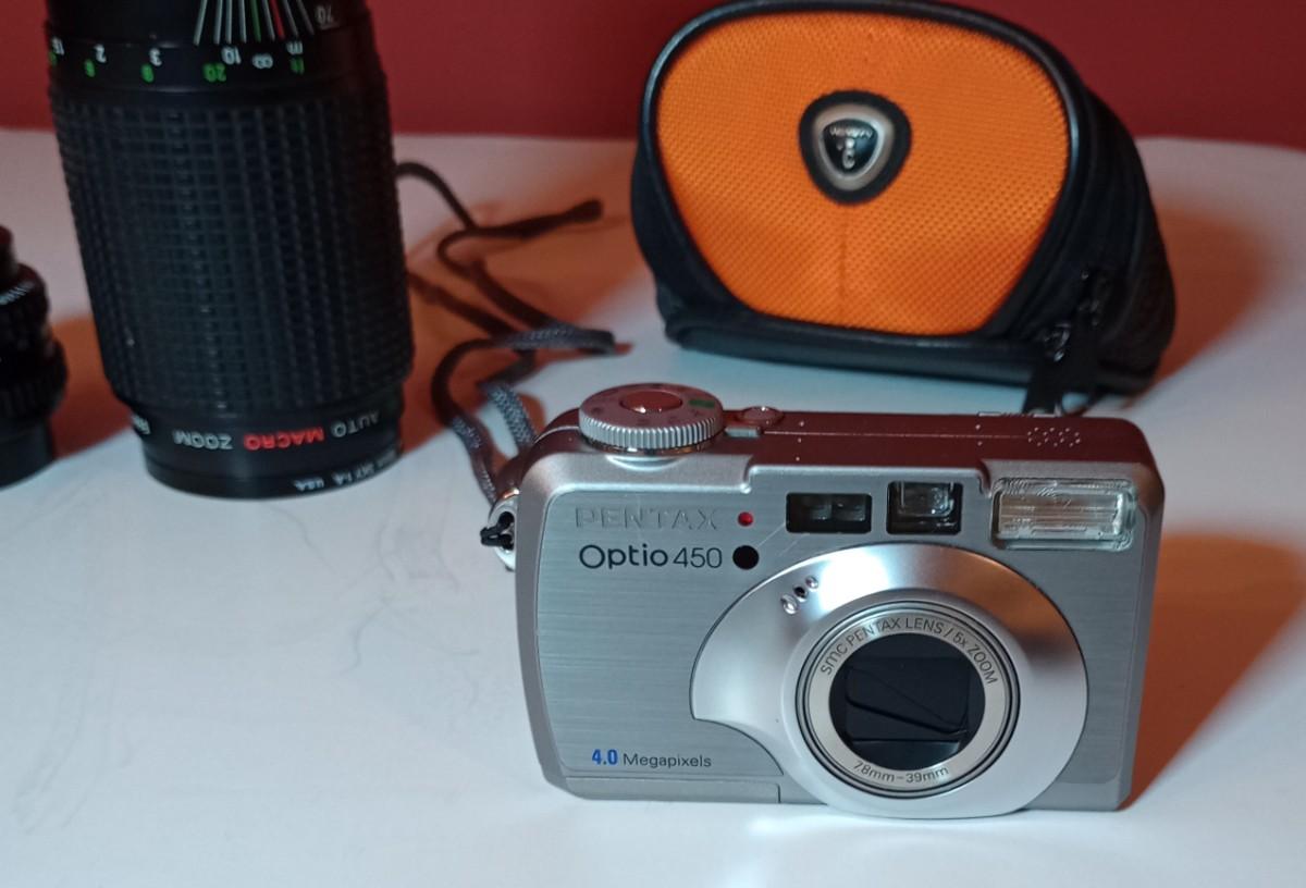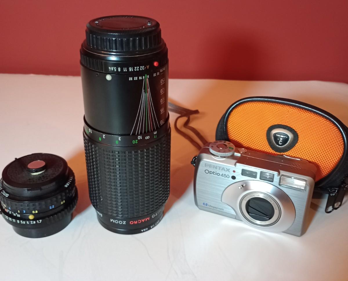 LOT D22: Pentax Optio 450 w/ Case, Cannon Sky 58 mm Lens, Pentax 4 Lens and Digital Photo Card
