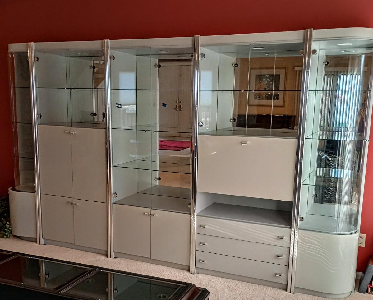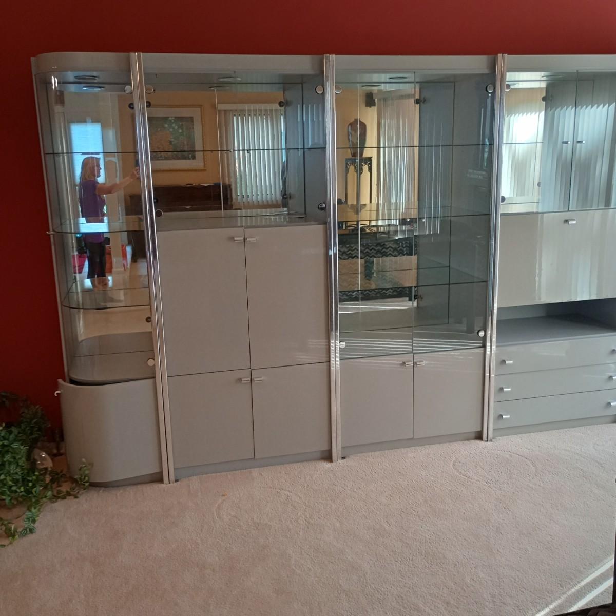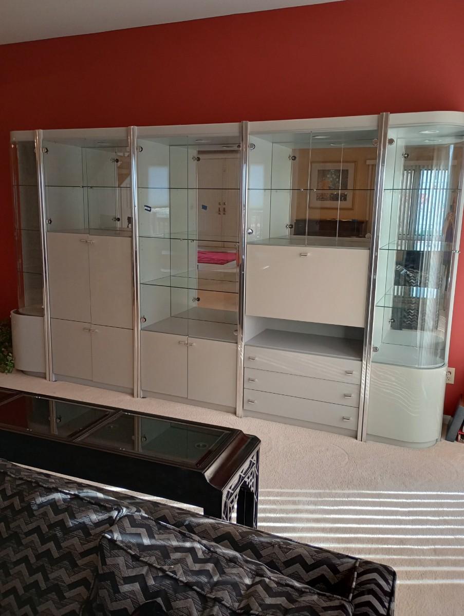 Dimensions are 11'-5'' W x 6'-7'' H . One of the bottom cabinets does not stay closed. Please see all pictures as they are the best representation of the items. The pictures show condition, measurements if taken, and what is included in the lot. Due to the large amount that we photograph and the time frame, we are not always able to take measurements. All items unless noted, are pre-owned and have been used. If you purchased furniture, you must bring help. We do not allow one person to carry large furniture out on their own. Bring help, tools and a truck for the safety of our client’s homes, and your personal safety. Any damages that result to the property including walls, and floors due to moving of the furniture will be charged to the buyer. Company policy. Thank you.