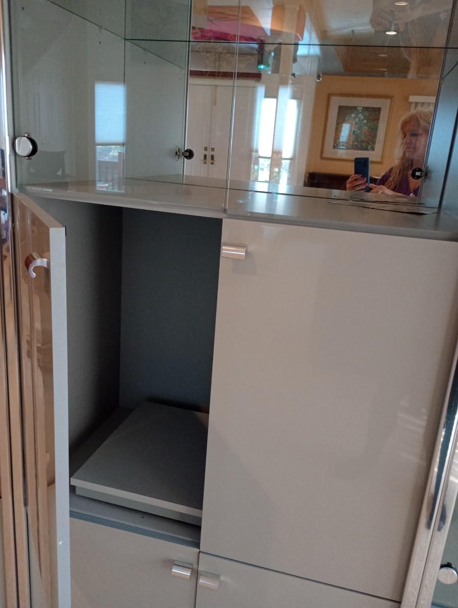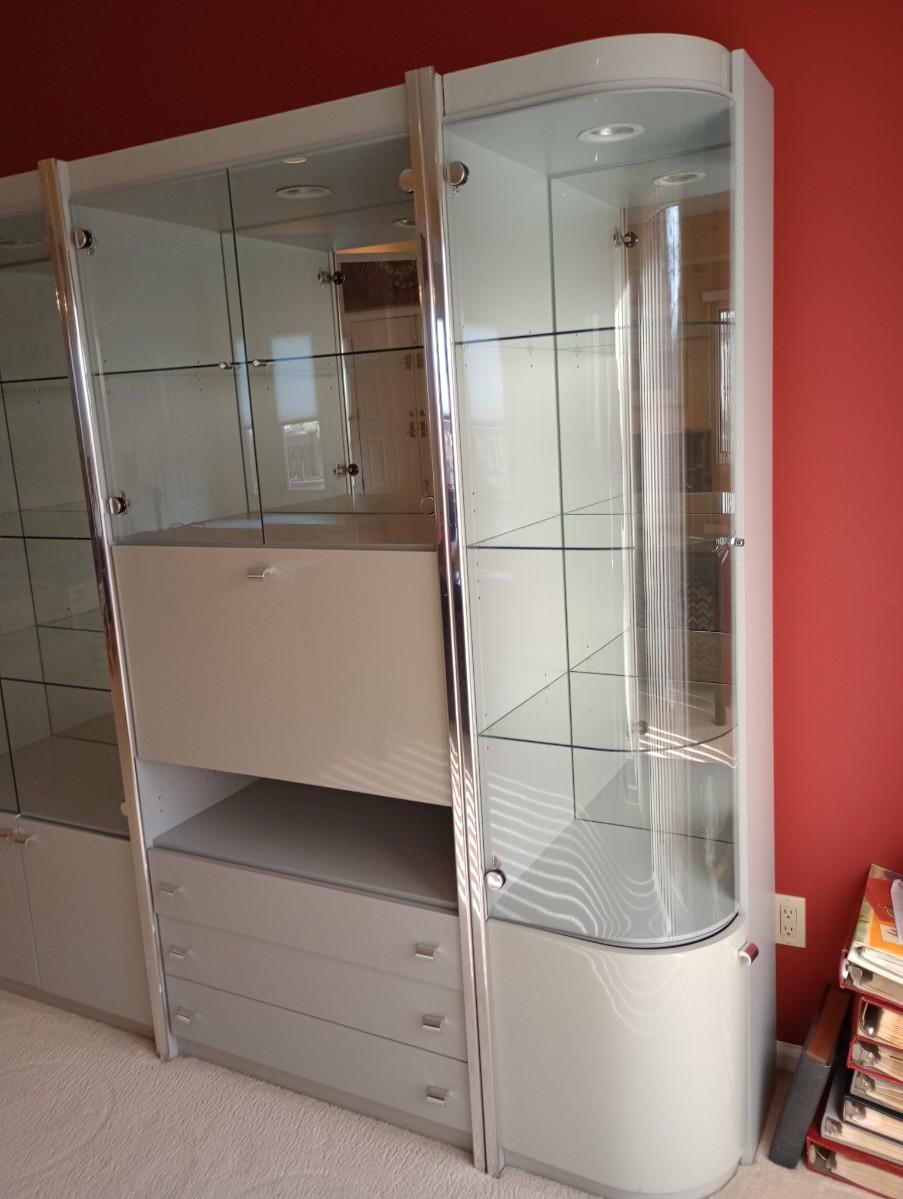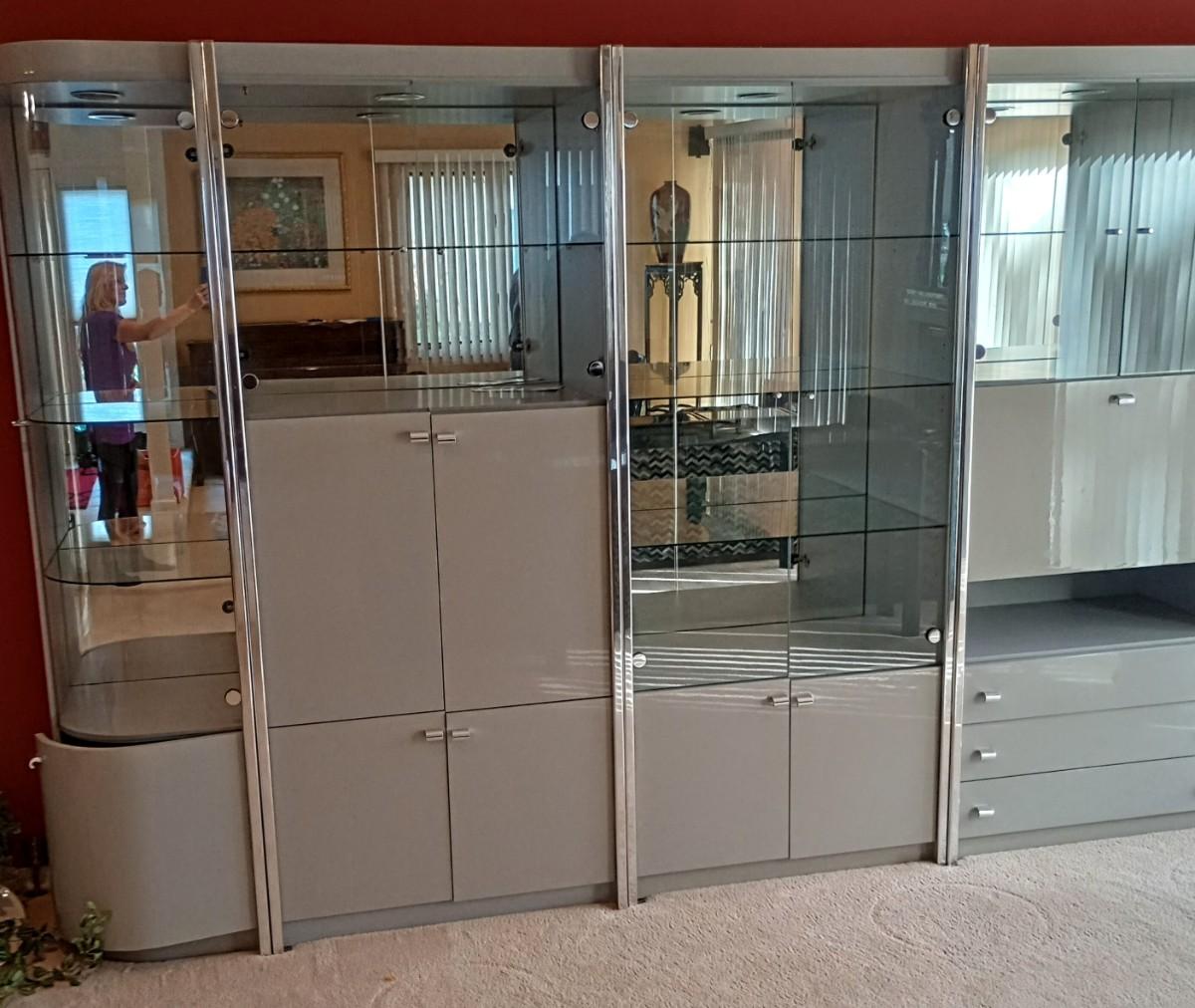 Dimensions are 11'-5'' W x 6'-7'' H . One of the bottom cabinets does not stay closed. Please see all pictures as they are the best representation of the items. The pictures show condition, measurements if taken, and what is included in the lot. Due to the large amount that we photograph and the time frame, we are not always able to take measurements. All items unless noted, are pre-owned and have been used. If you purchased furniture, you must bring help. We do not allow one person to carry large furniture out on their own. Bring help, tools and a truck for the safety of our client’s homes, and your personal safety. Any damages that result to the property including walls, and floors due to moving of the furniture will be charged to the buyer. Company policy. Thank you.