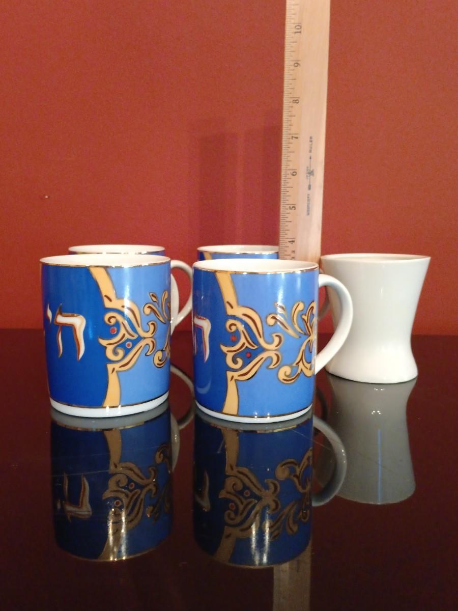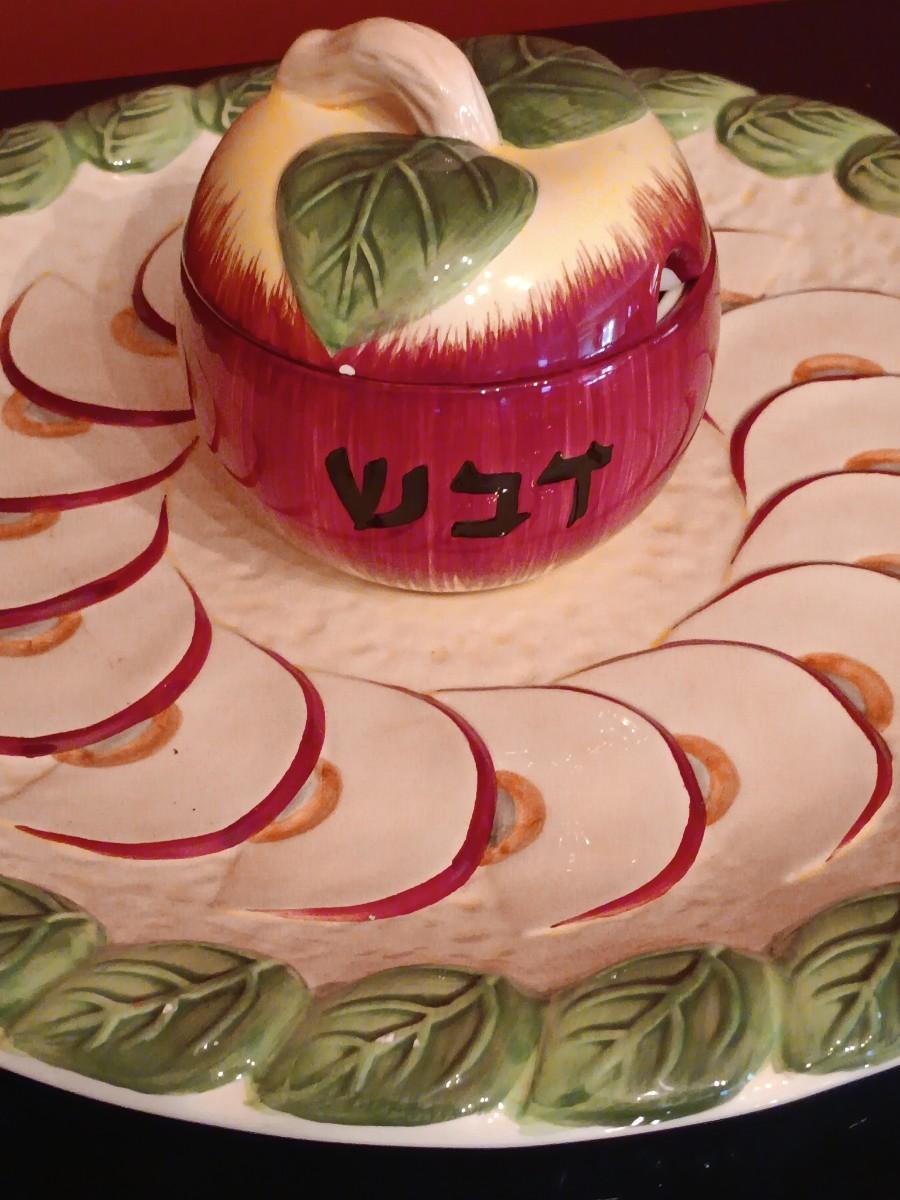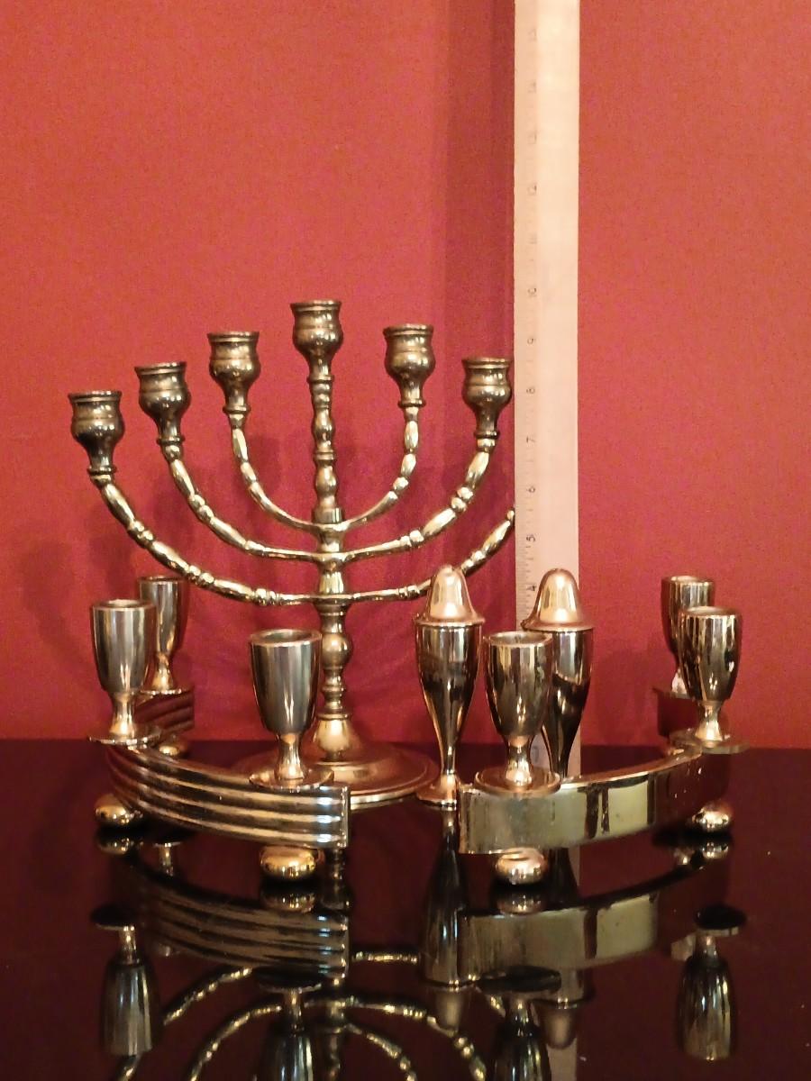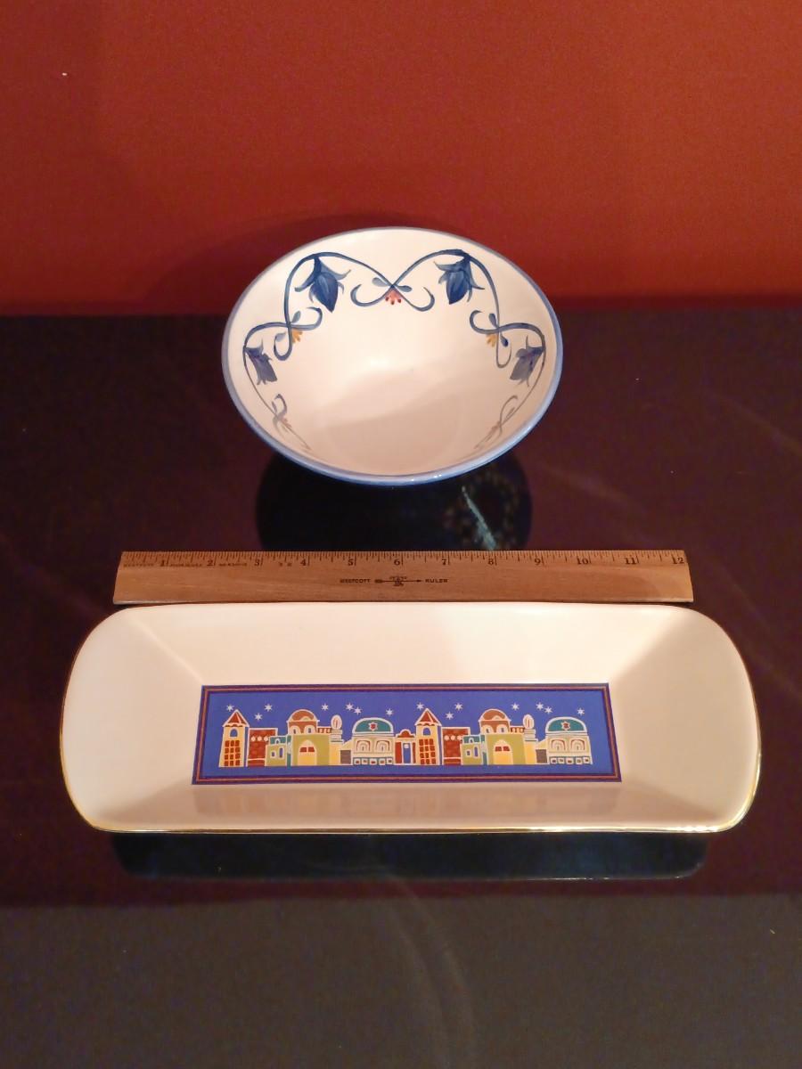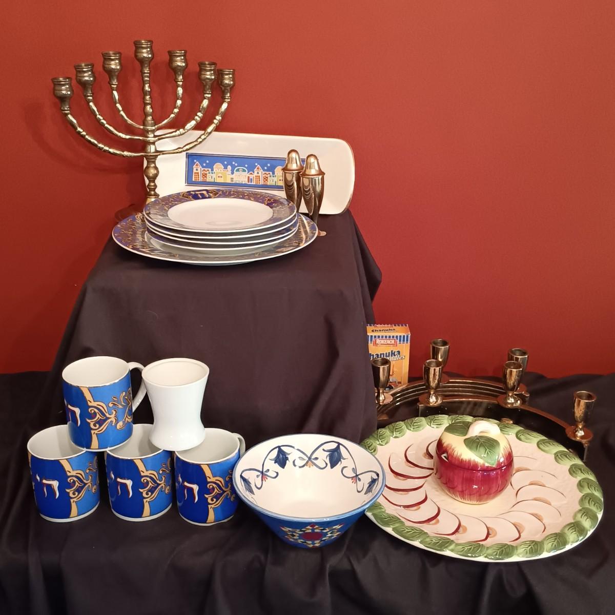 LOT 45D: Vintage Brass Menorah, American Atelier Celebrations Dishware, Aviv Judaica Honey Dish & More