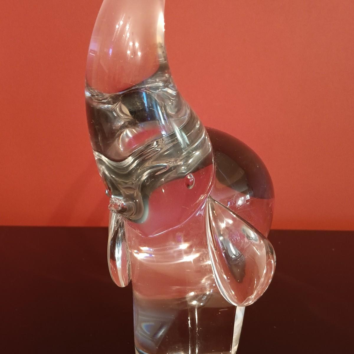 LOT 46D: Vintage Orrefors Crystal Heart, Cofrac Art Glass Verrier Dish & Crystal Elephant w/ Etched Signature Lyn'77