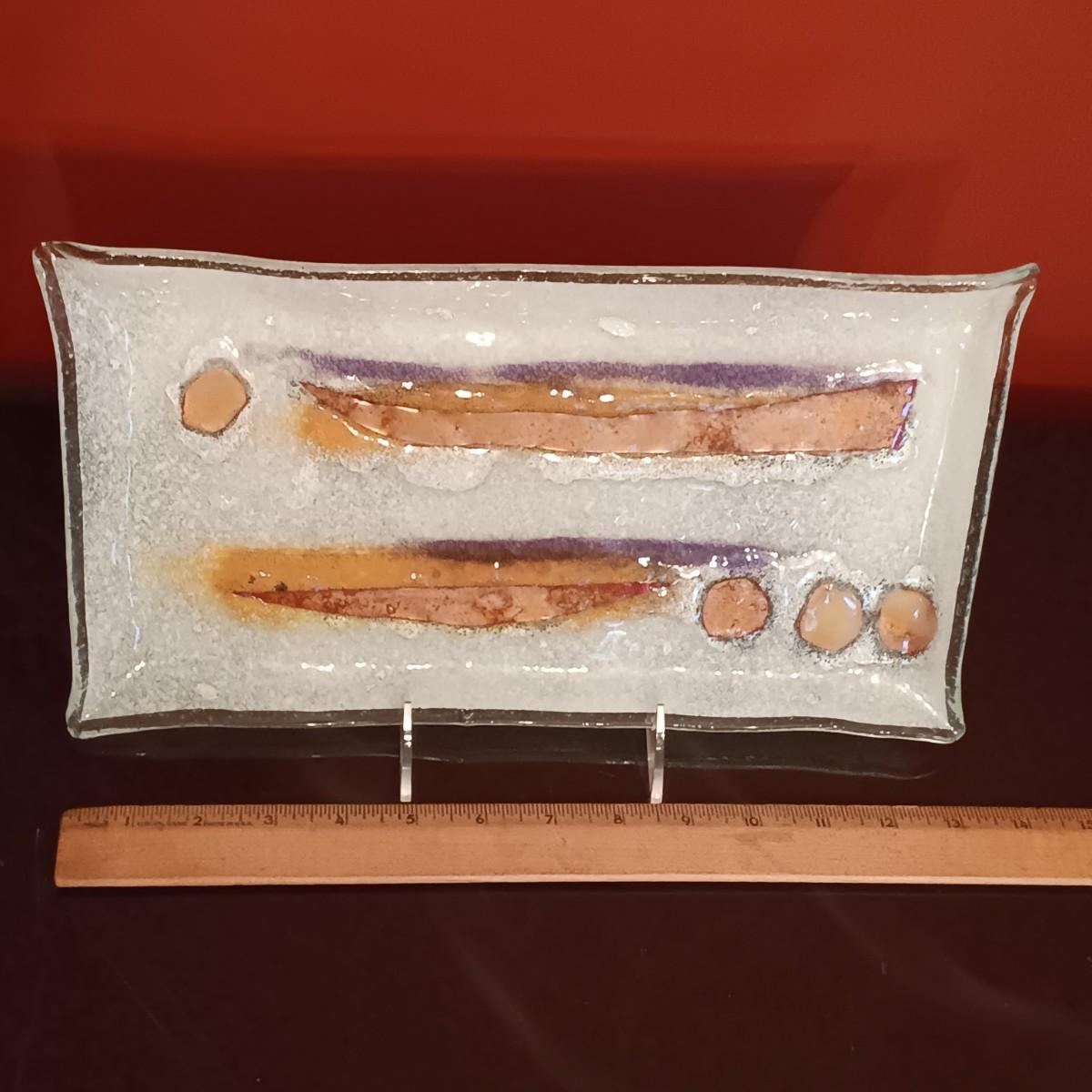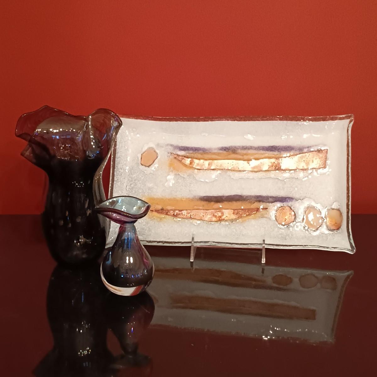 LOT 49D: Modern Art Collection- Two-Tone Vase, Glass Tray and Ruffled Glass Vase