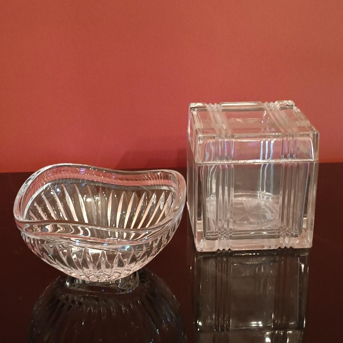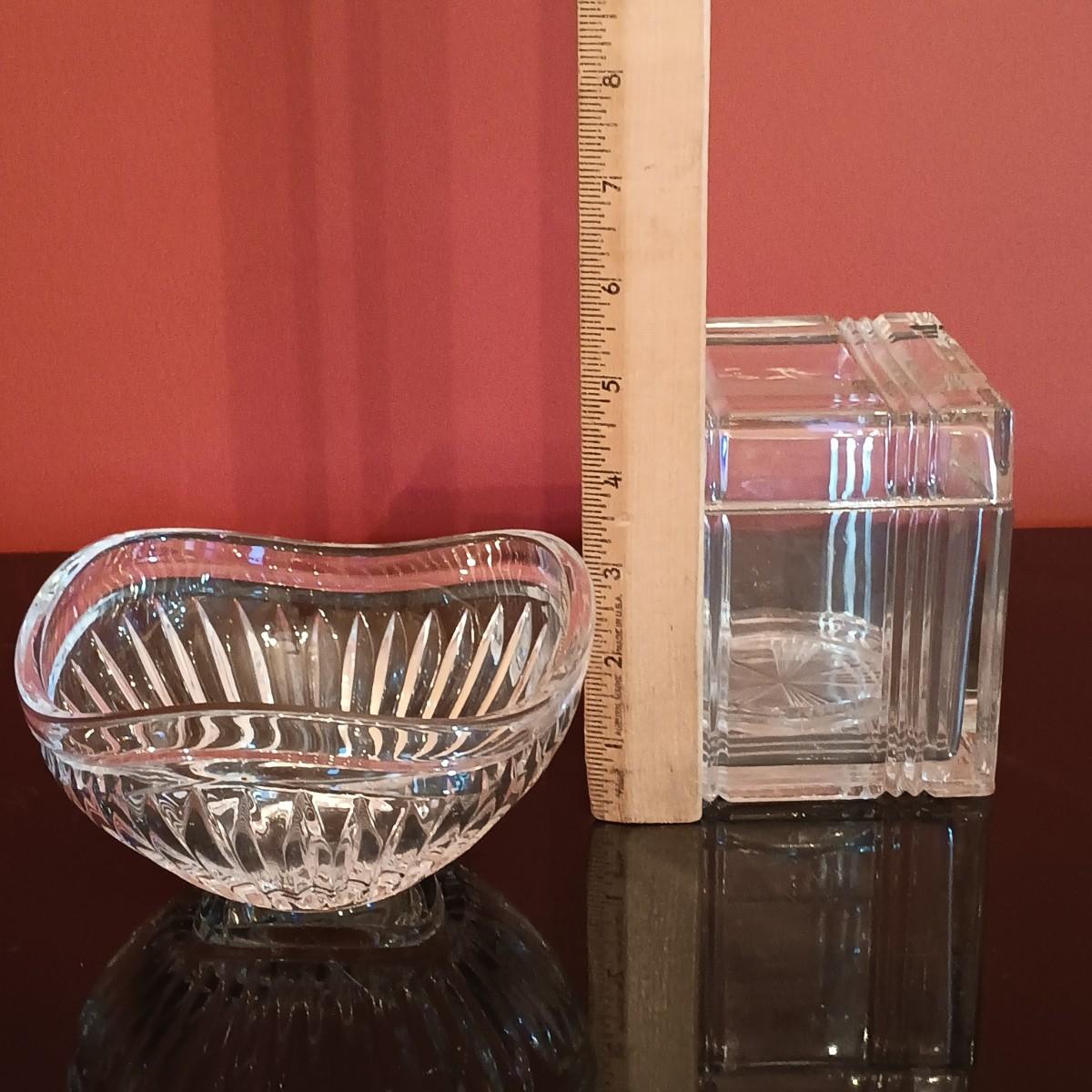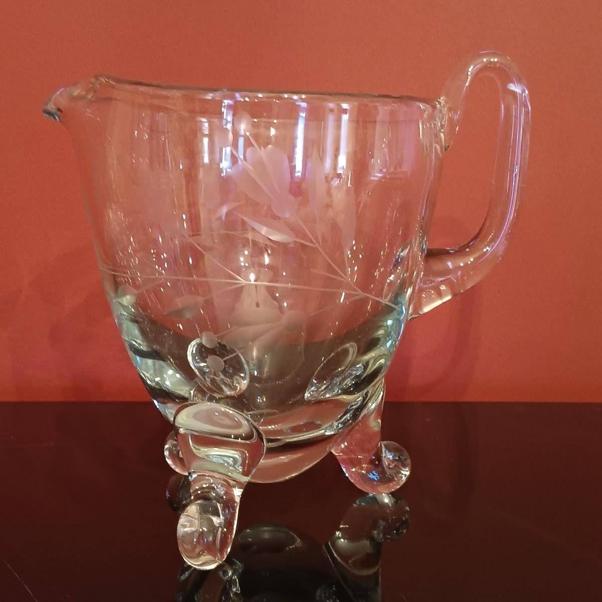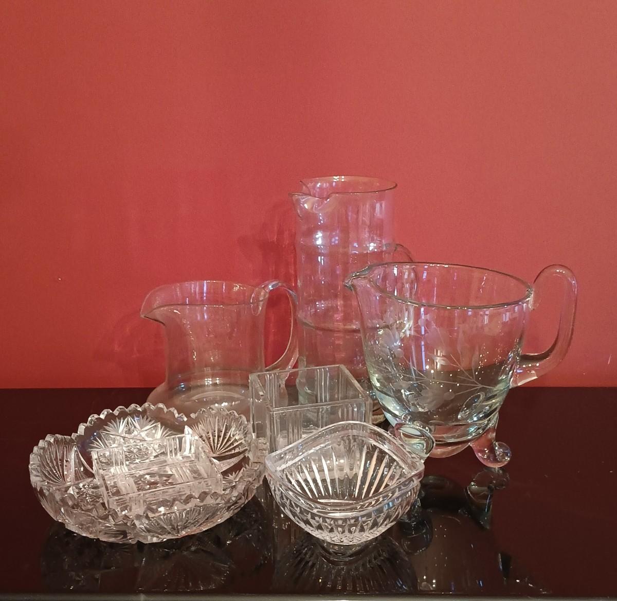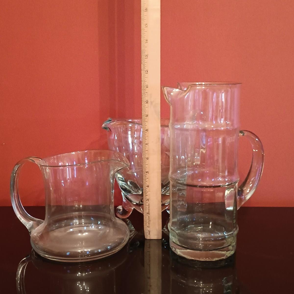 LOT 51D: Vintage Glassware- 2 Hand-Blown Water Pitchers, Cut Glass Box & More