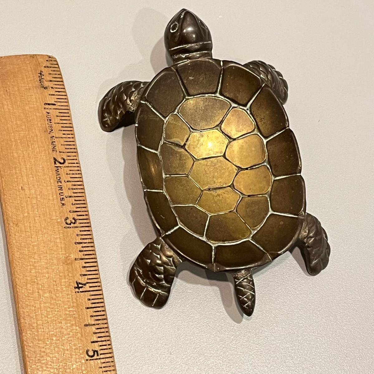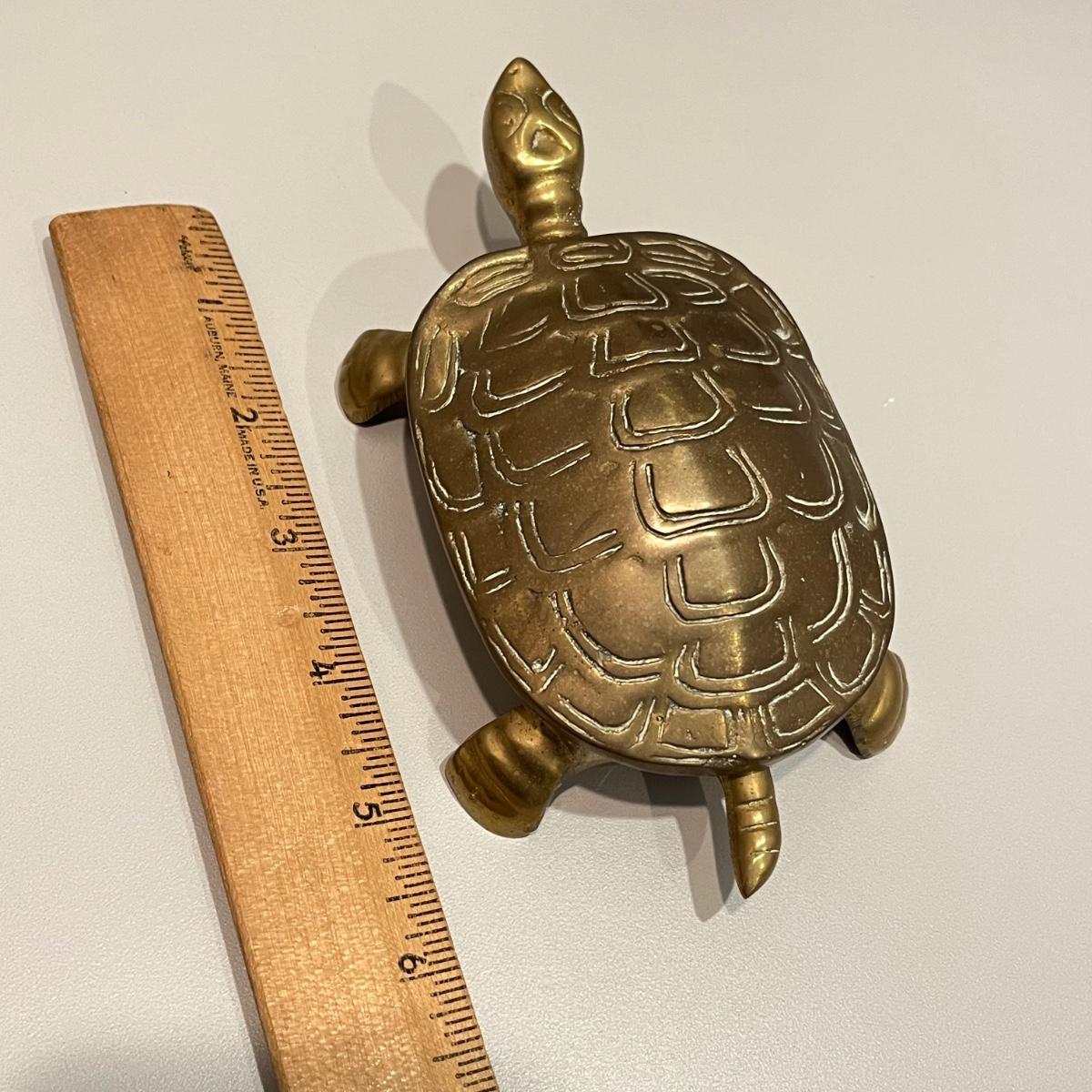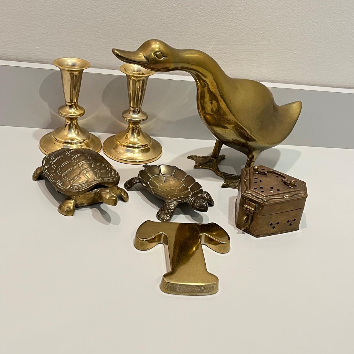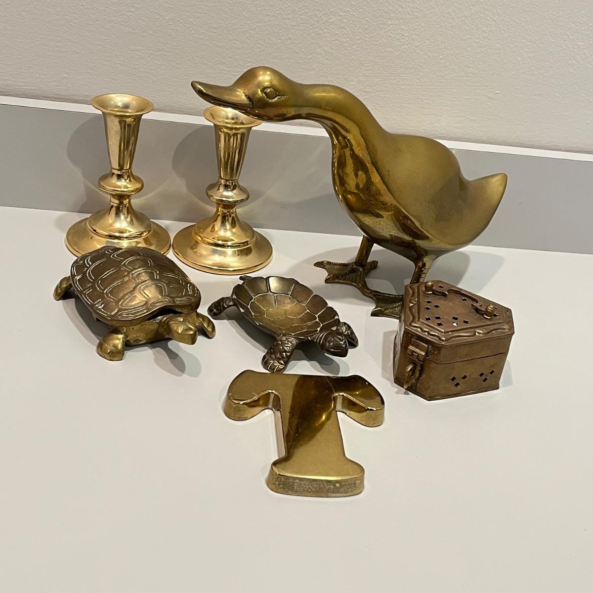LOT 82B: Vintage Brass Home Decor - Duck, Turtles, Candlestick Holders, Trinket Box, Paperweight