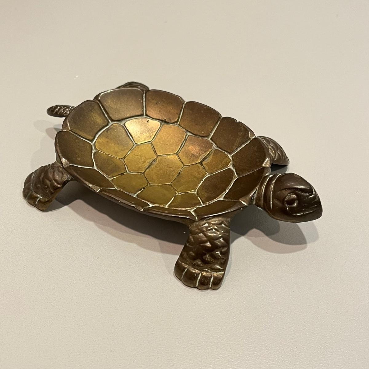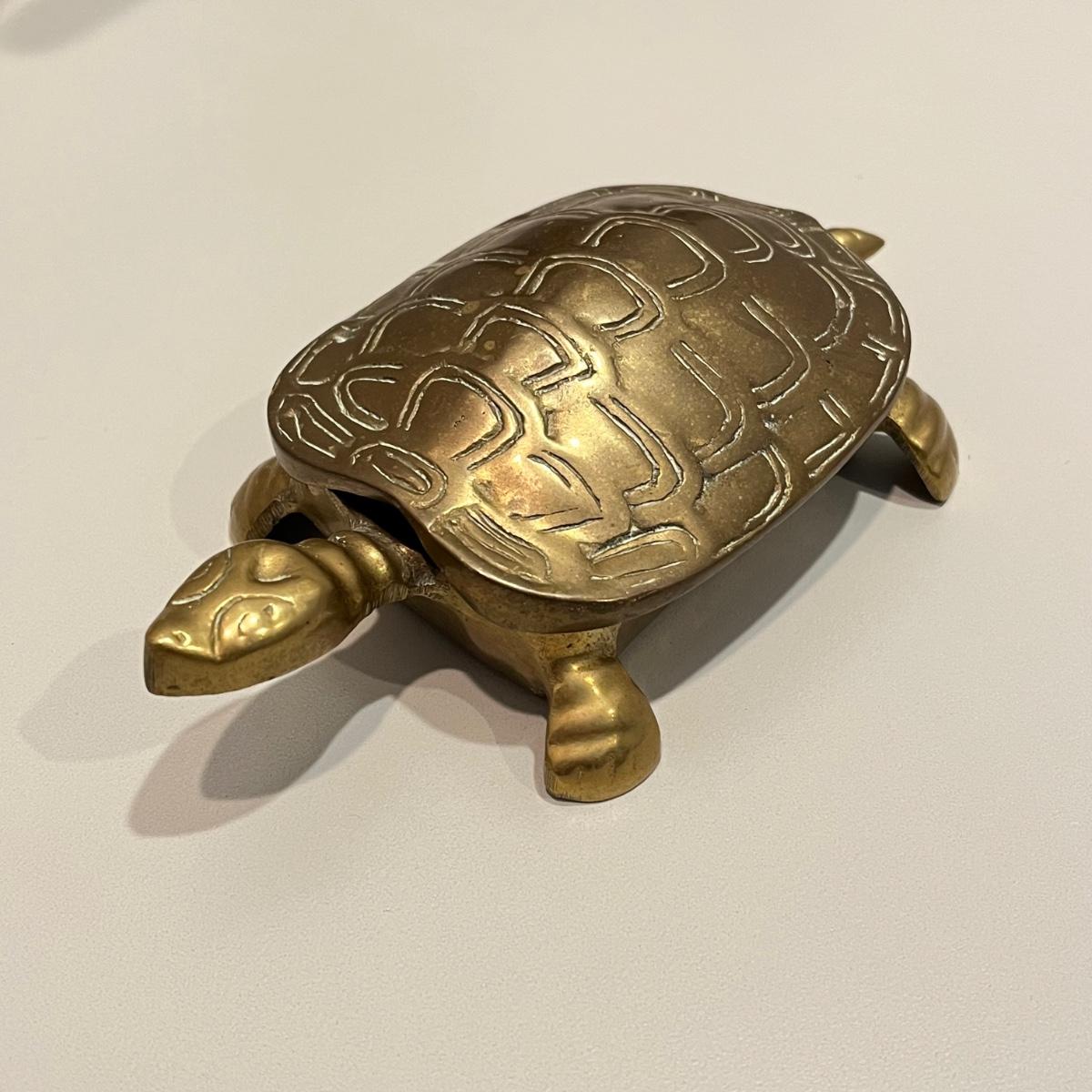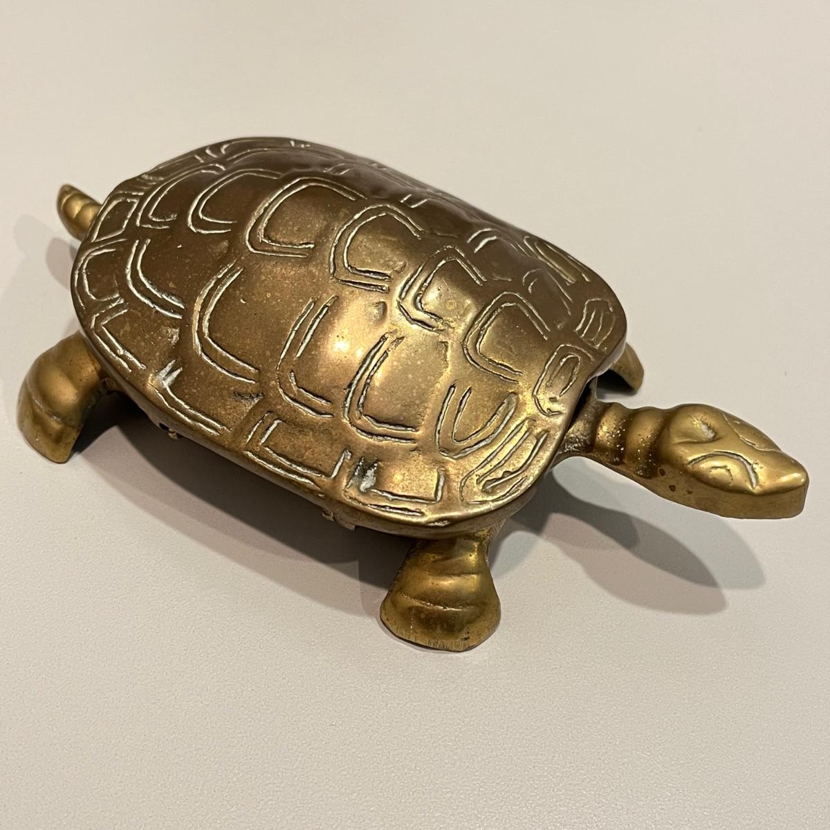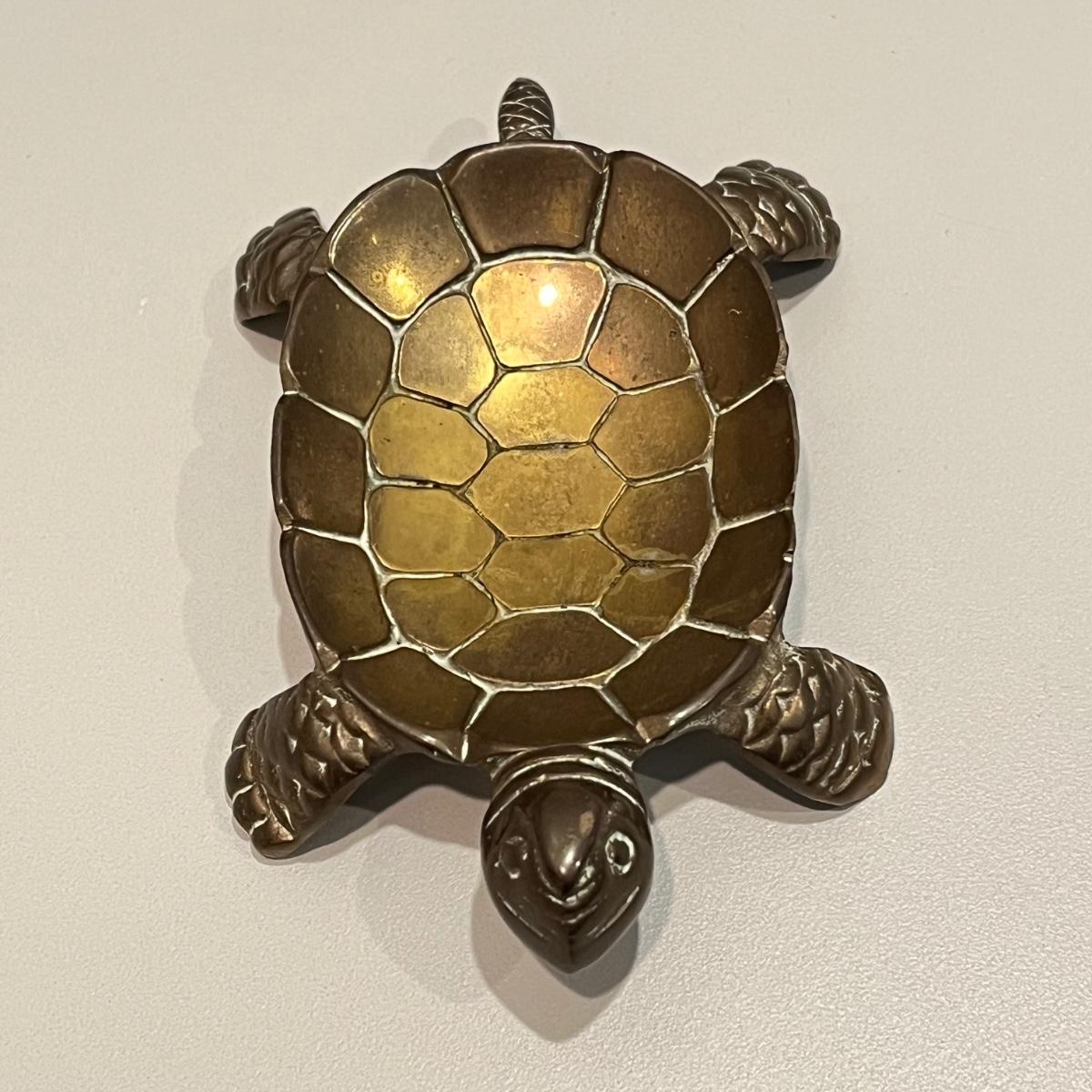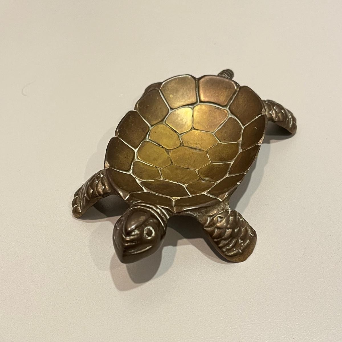 LOT 82B: Vintage Brass Home Decor - Duck, Turtles, Candlestick Holders, Trinket Box, Paperweight