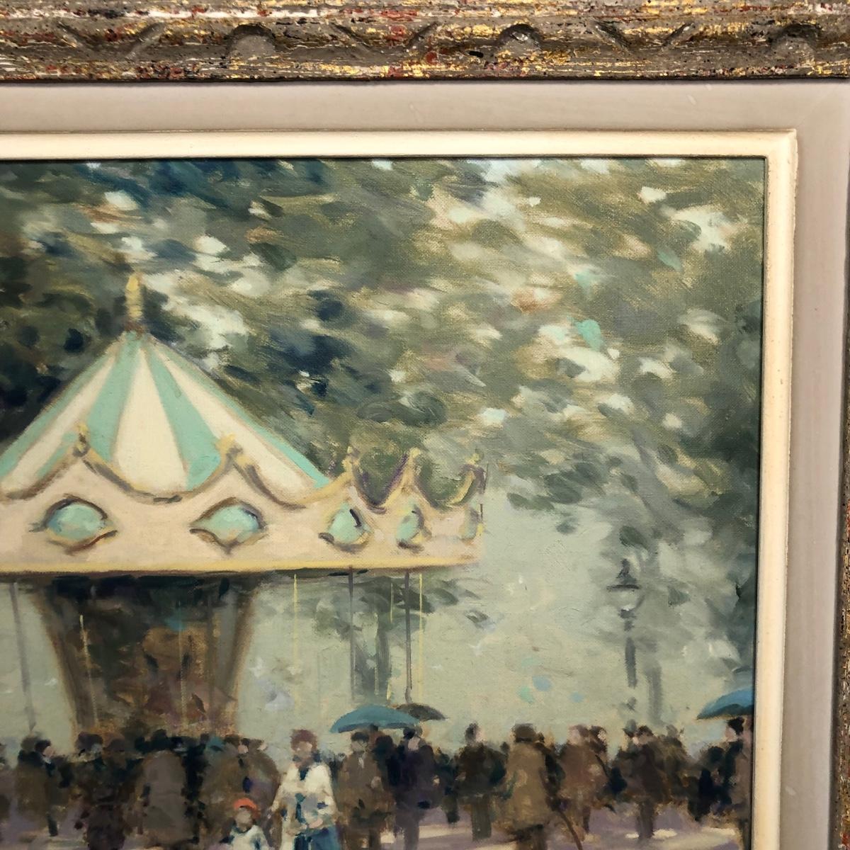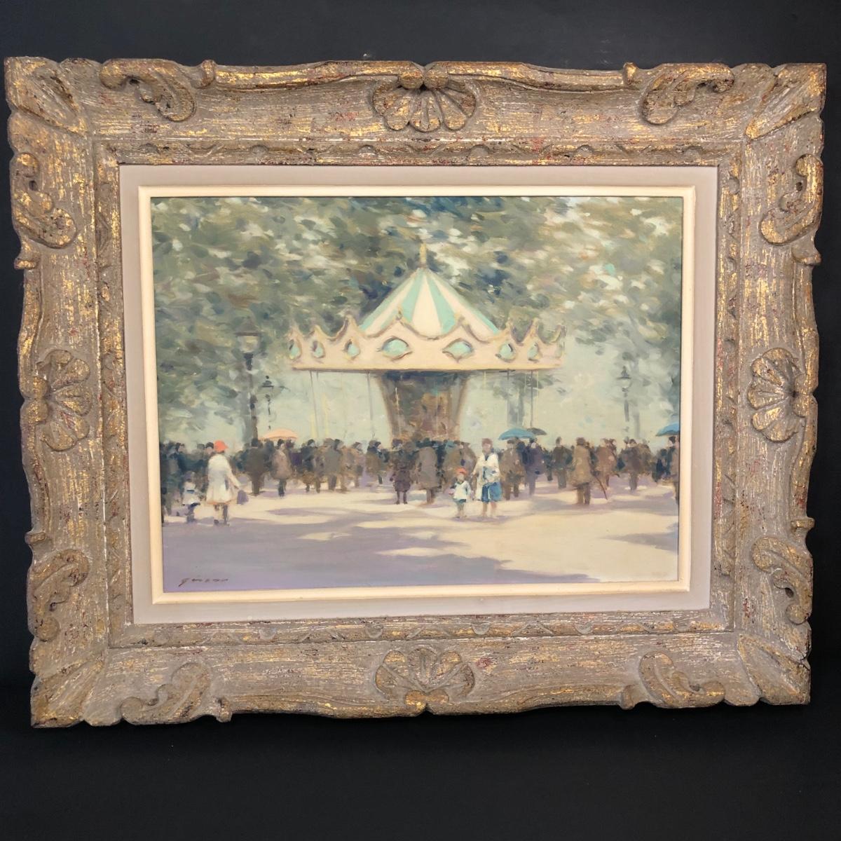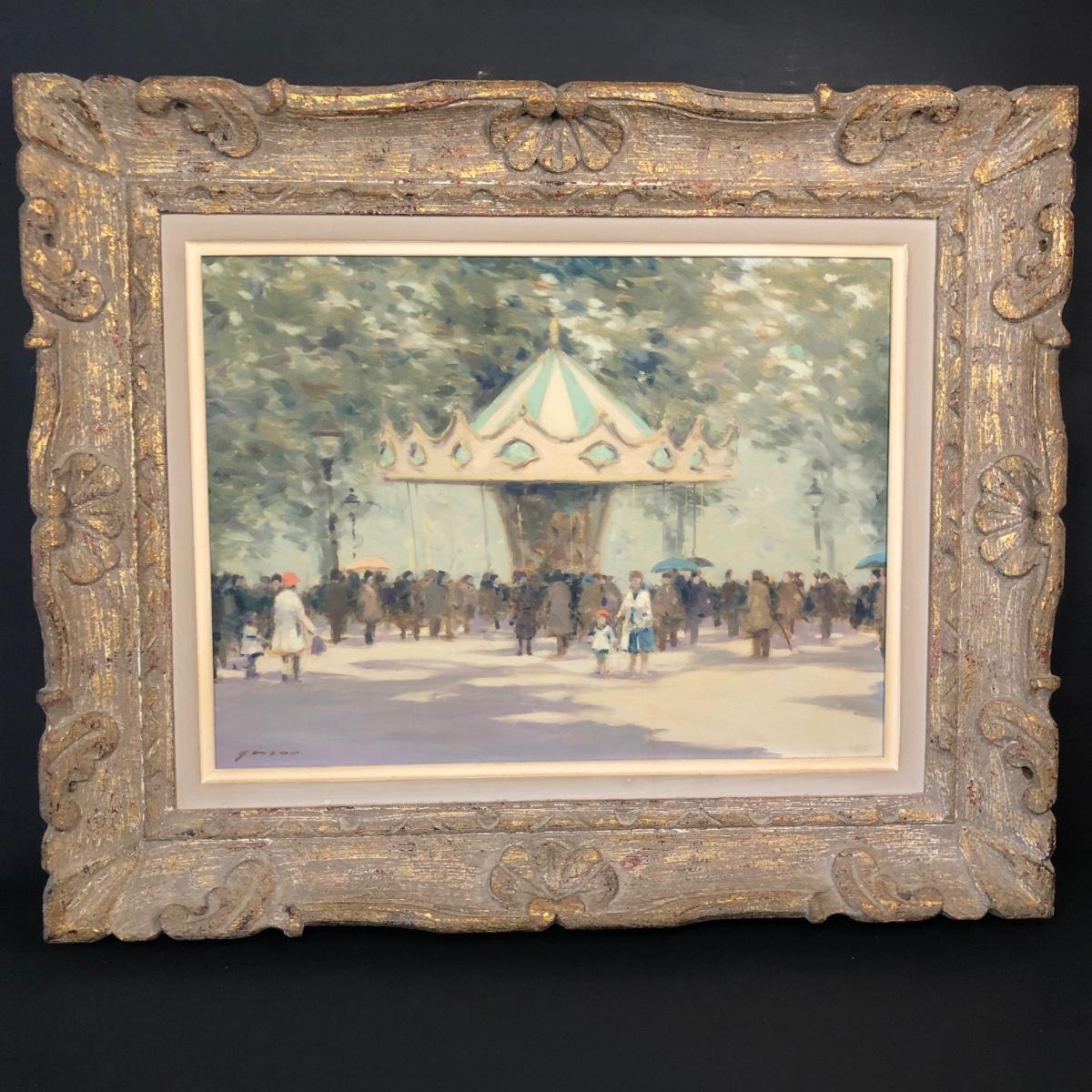 LOT 11M: Framed Andre Gisson (American, 1921-2003) "Carousel" Oil Painting