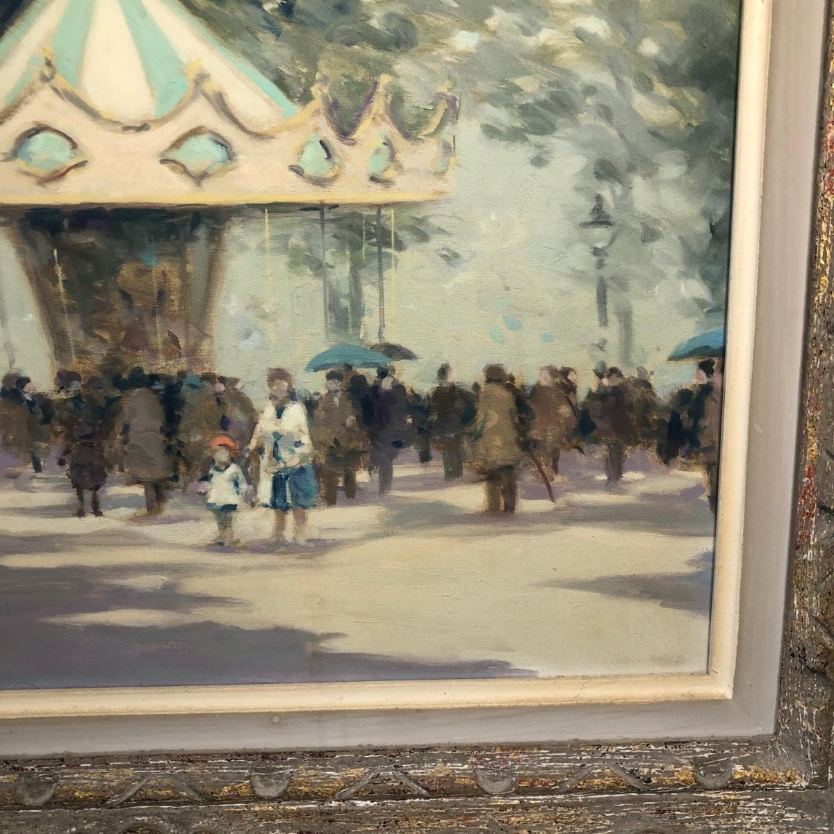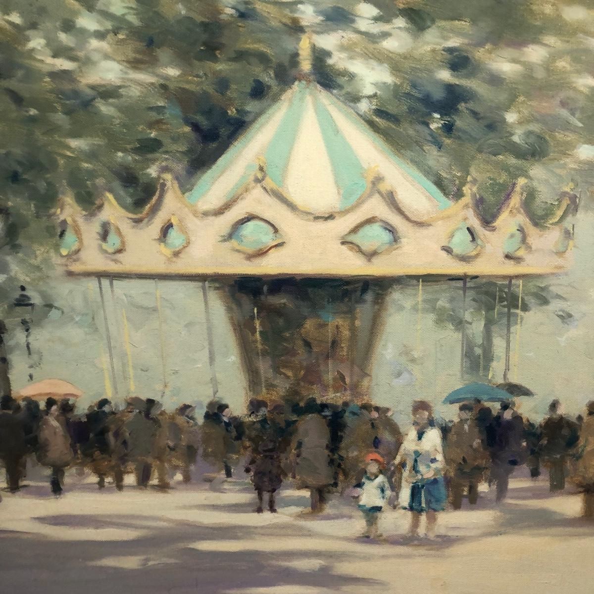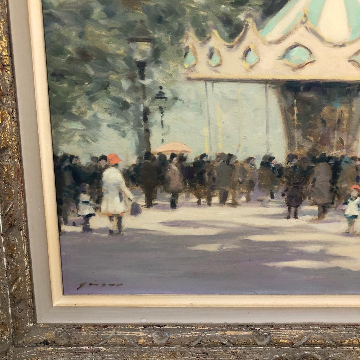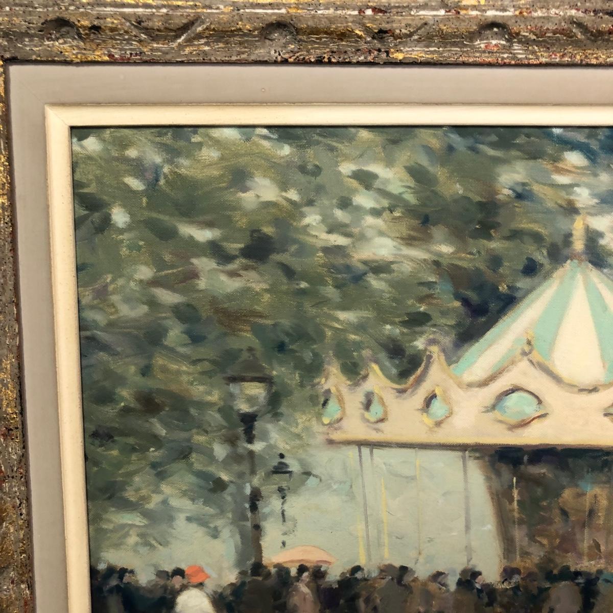 LOT 11M: Framed Andre Gisson (American, 1921-2003) "Carousel" Oil Painting