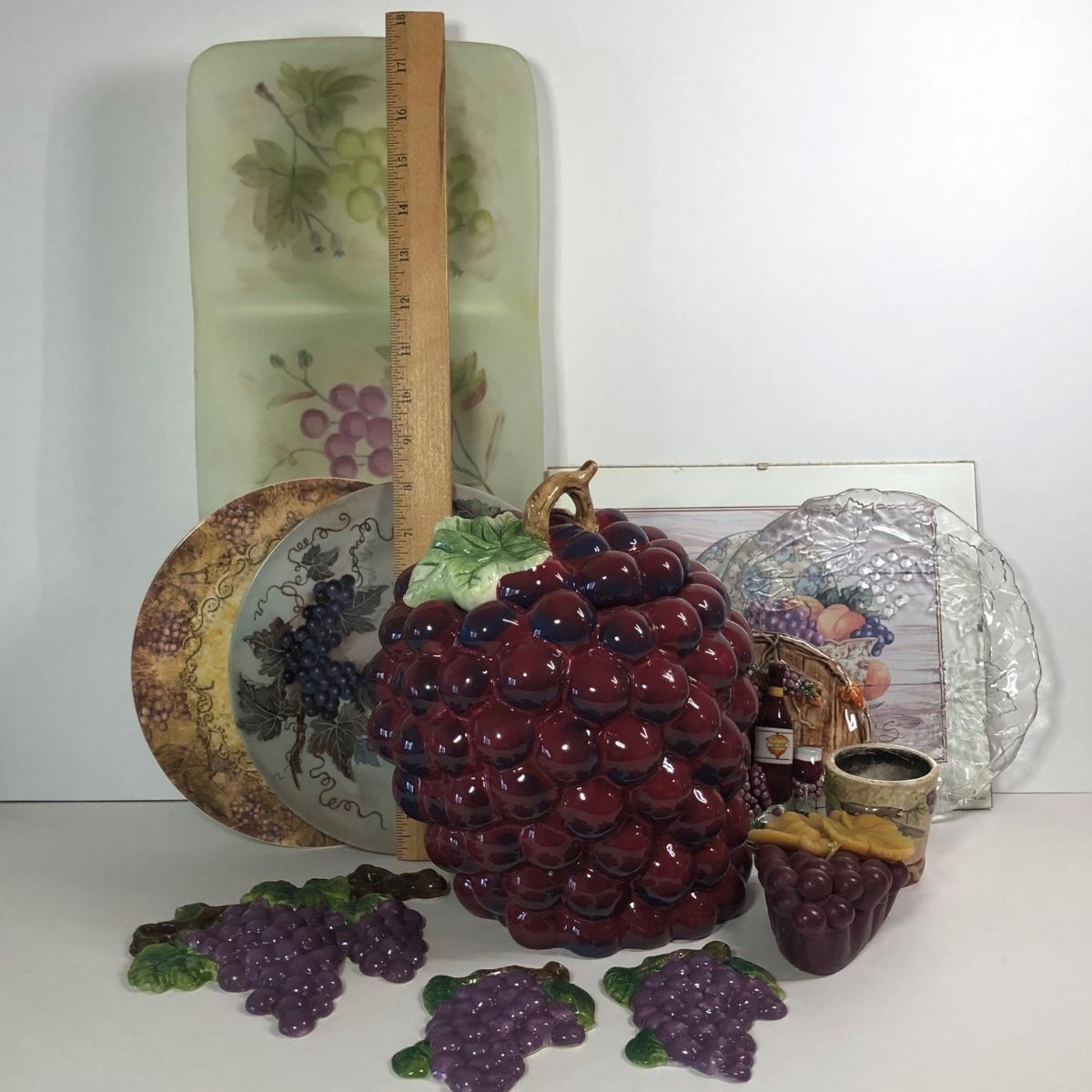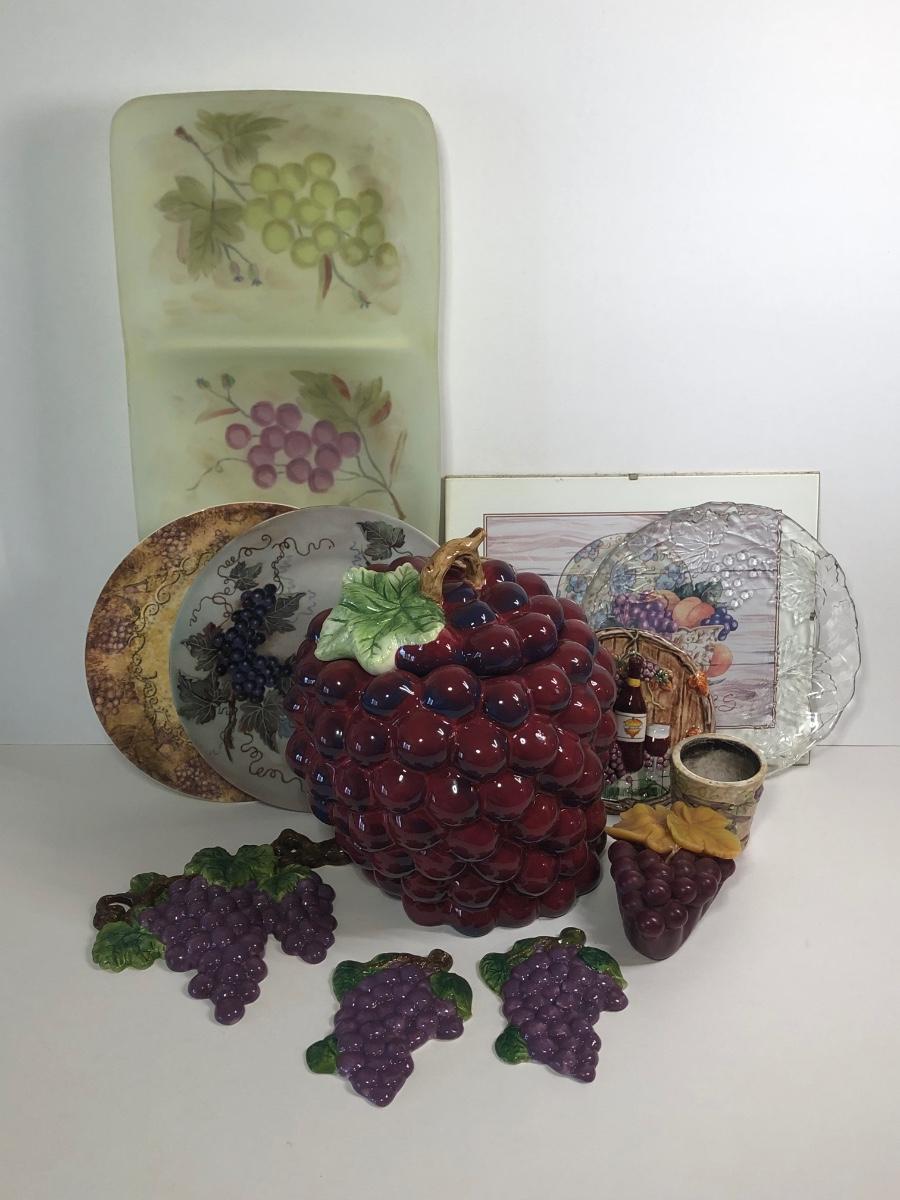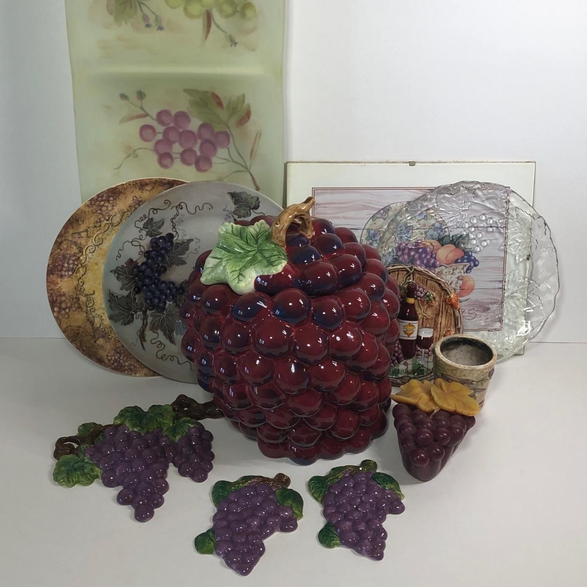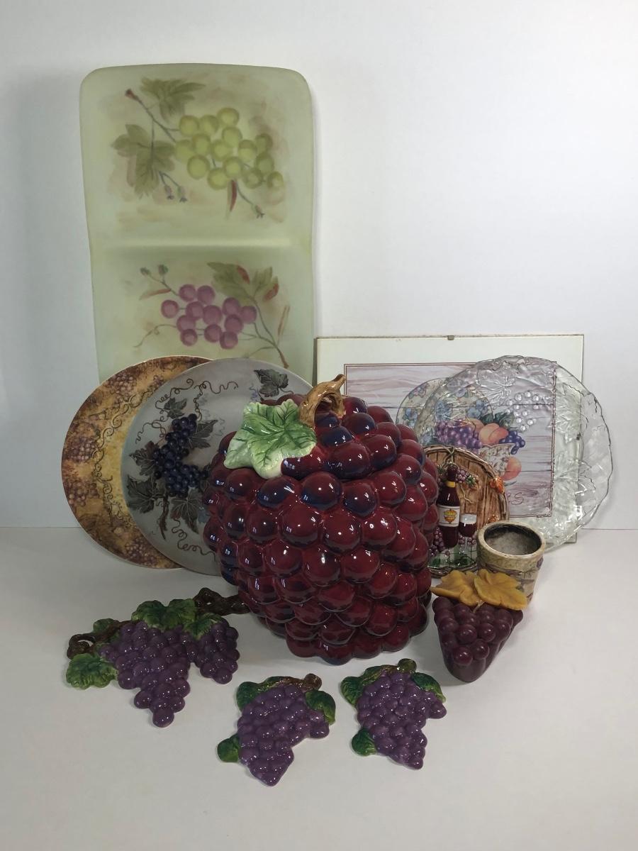 LOT 20M: Grapes Collection - Cookie Jar, Decor, Plates, Candle & More