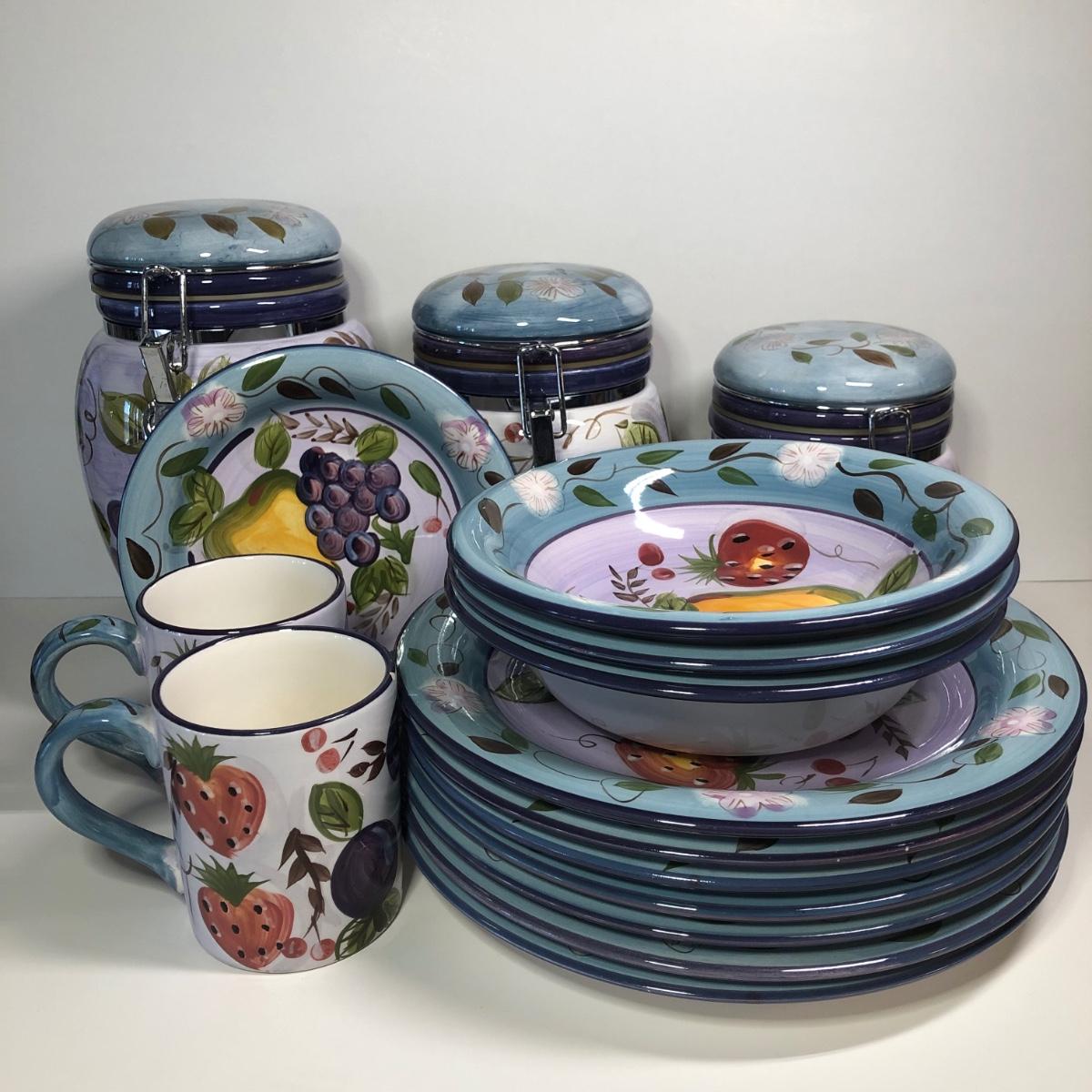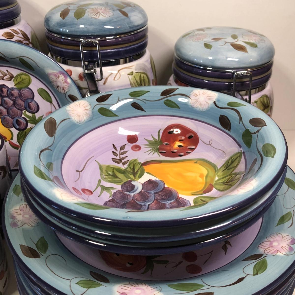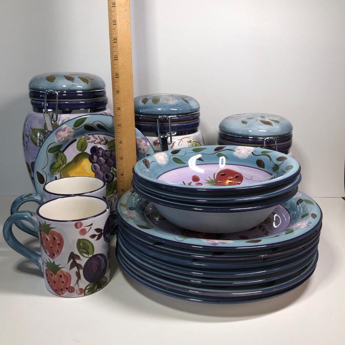 LOT 25M: Gibson Elite "Bella Fruita" Kitchen Set - Plates, Bowls, Canisters & Mugs