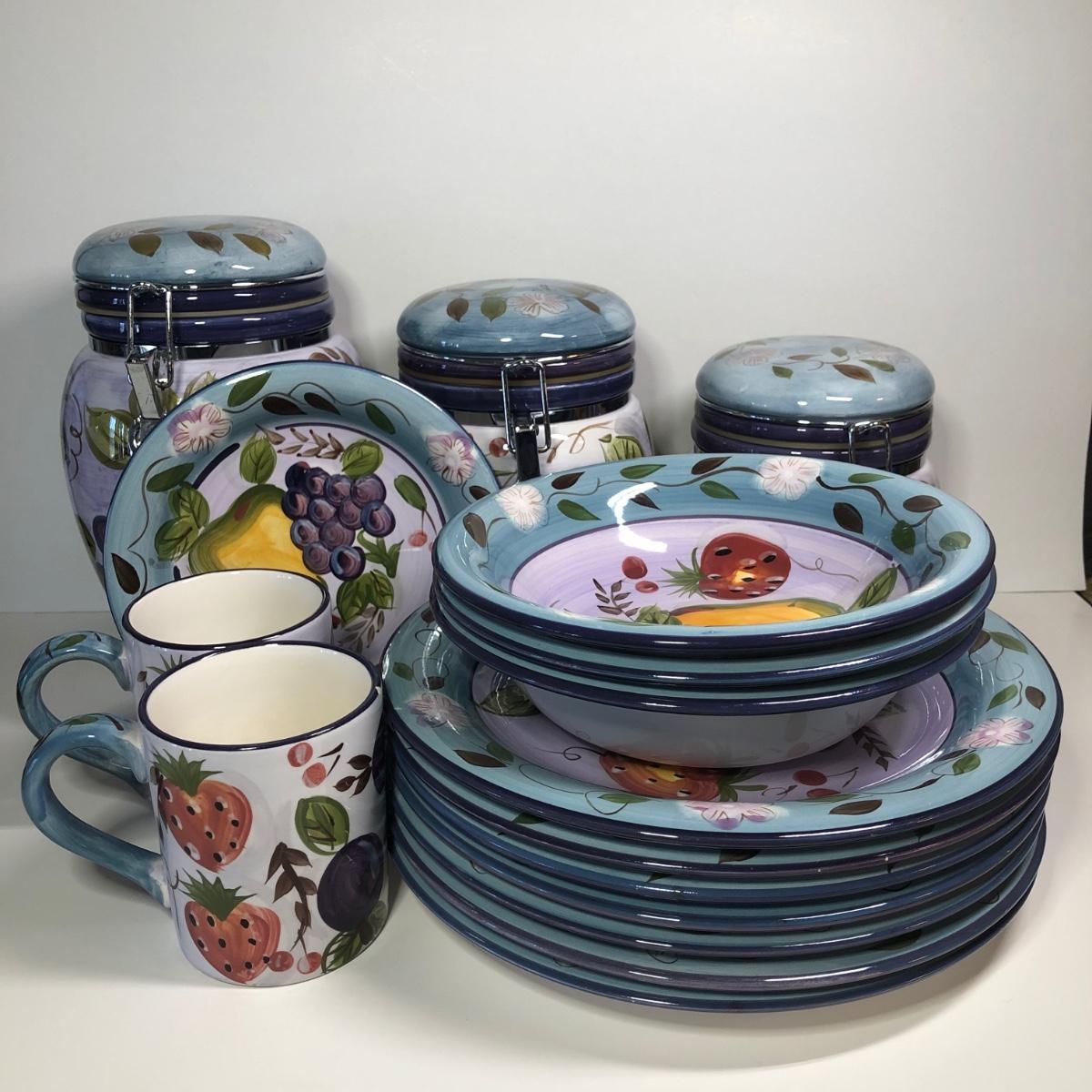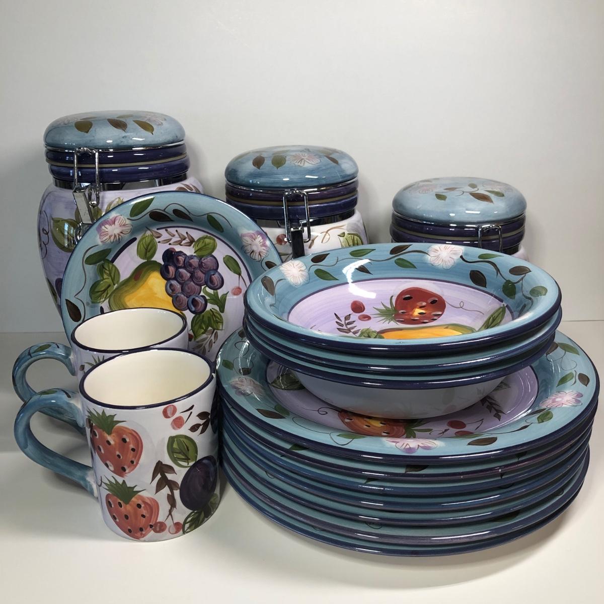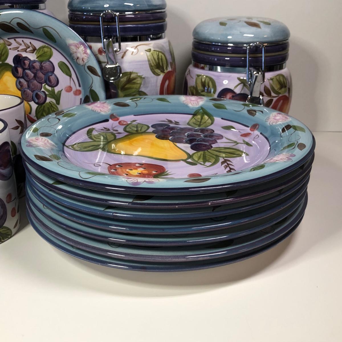 LOT 25M: Gibson Elite "Bella Fruita" Kitchen Set - Plates, Bowls, Canisters & Mugs